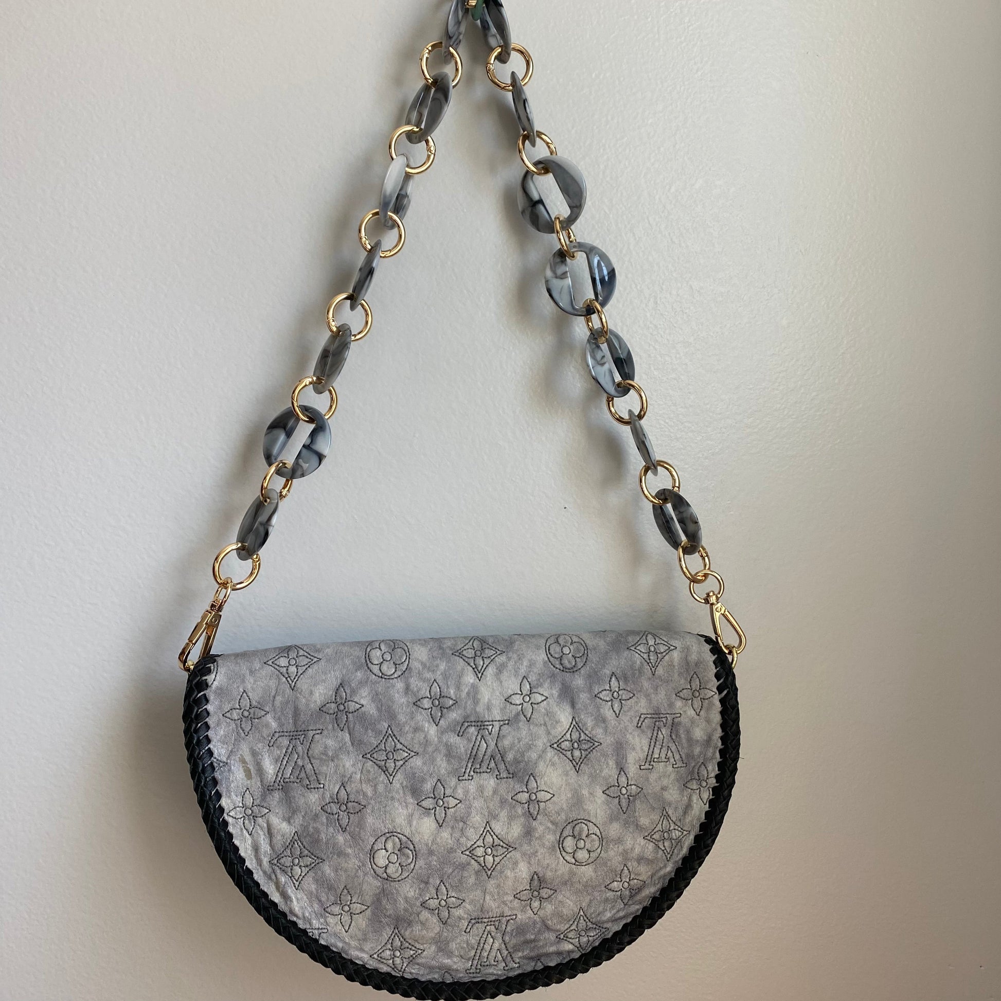 This bag comes with TWO straps!!! The adorable chunky grey plastic strap works great as a shoulder strap (drop is 12" but this can be shortened by removing links super easily). I've also included a black canvas crossbody strap that is adjustable from 30-52". This strap allows you to carry this bag across your chest, or even wear it as a belt bag.