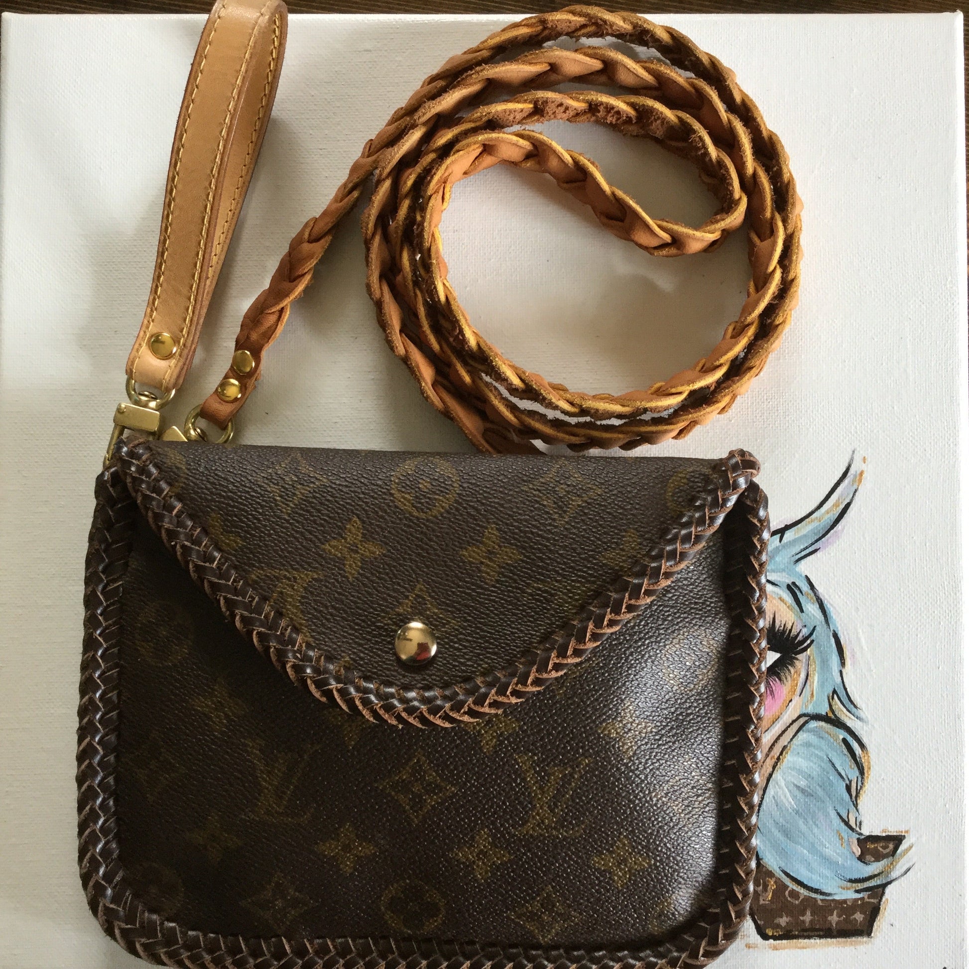 This is a full-on Monogram Falcon! The back/front flap are from an Louis Vuitton Speedy! Isn't she cute? This gorgeous little wristlet/crossbody/clutch bag is all you are out and about! It’ll fit your cell phone, keys, credit cards, and even a lipstick!