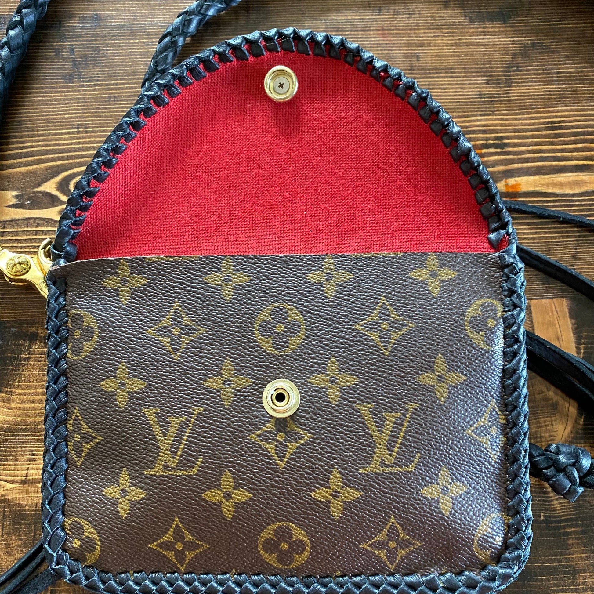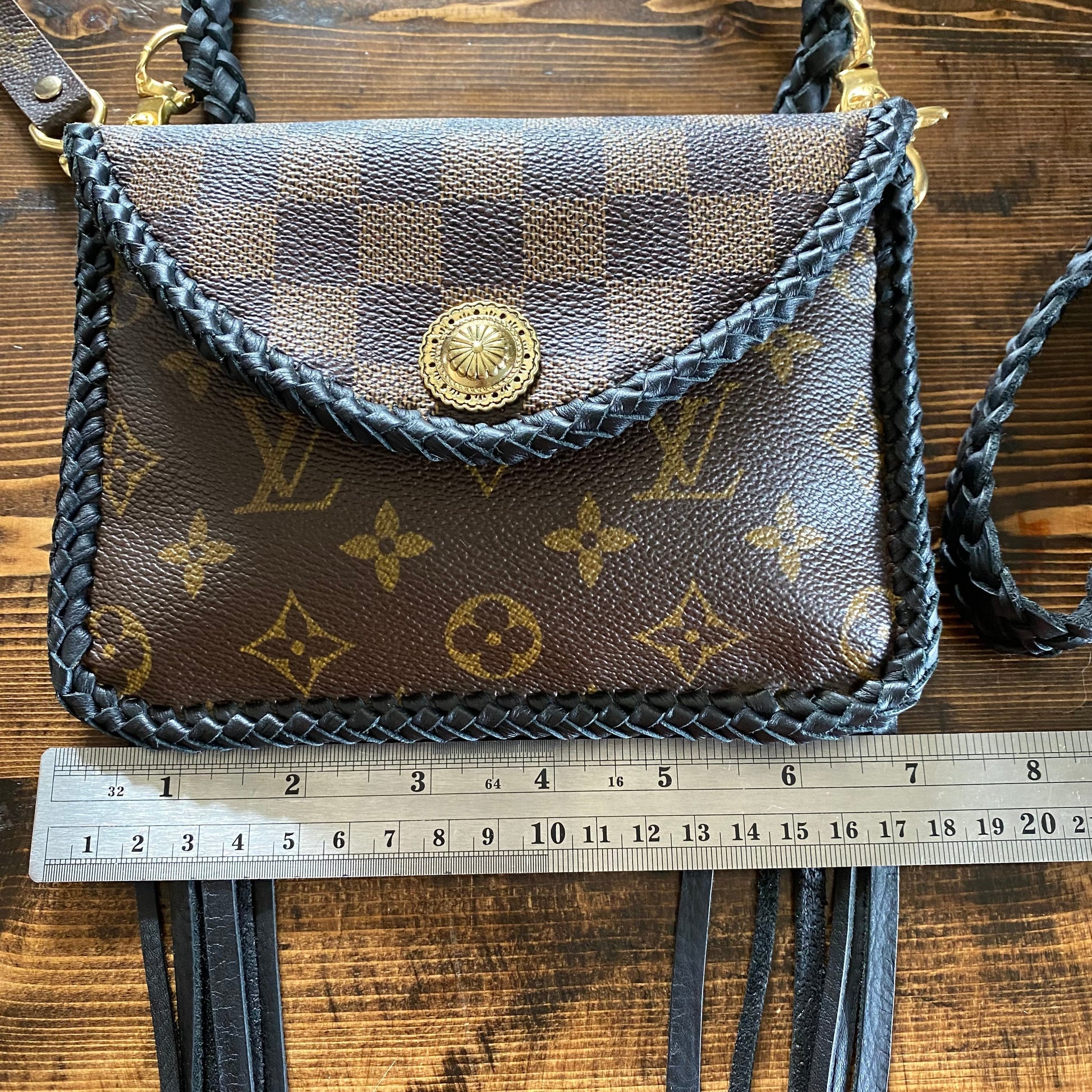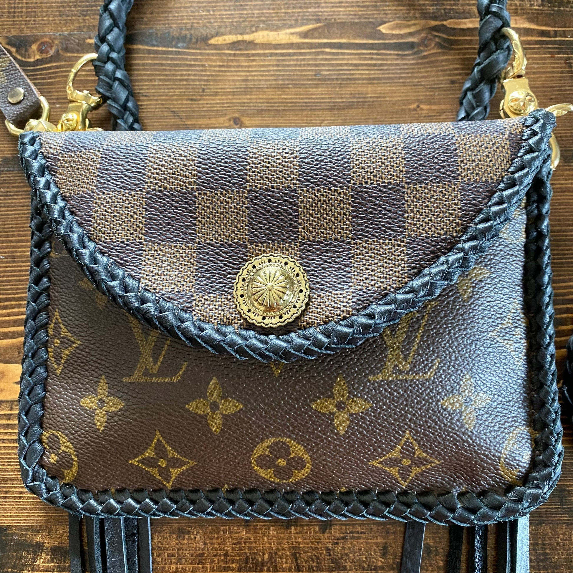 As always, Louis Vuitton Speedy 25 bags were used to make this one-of-a-kind piece. I just love how the Damier Ebene looks with the Monogram print!!! The outside edges are black leather lace which have been stitched by hand. I've also put in a small back pocket, perfect for tucking your phone in!!
