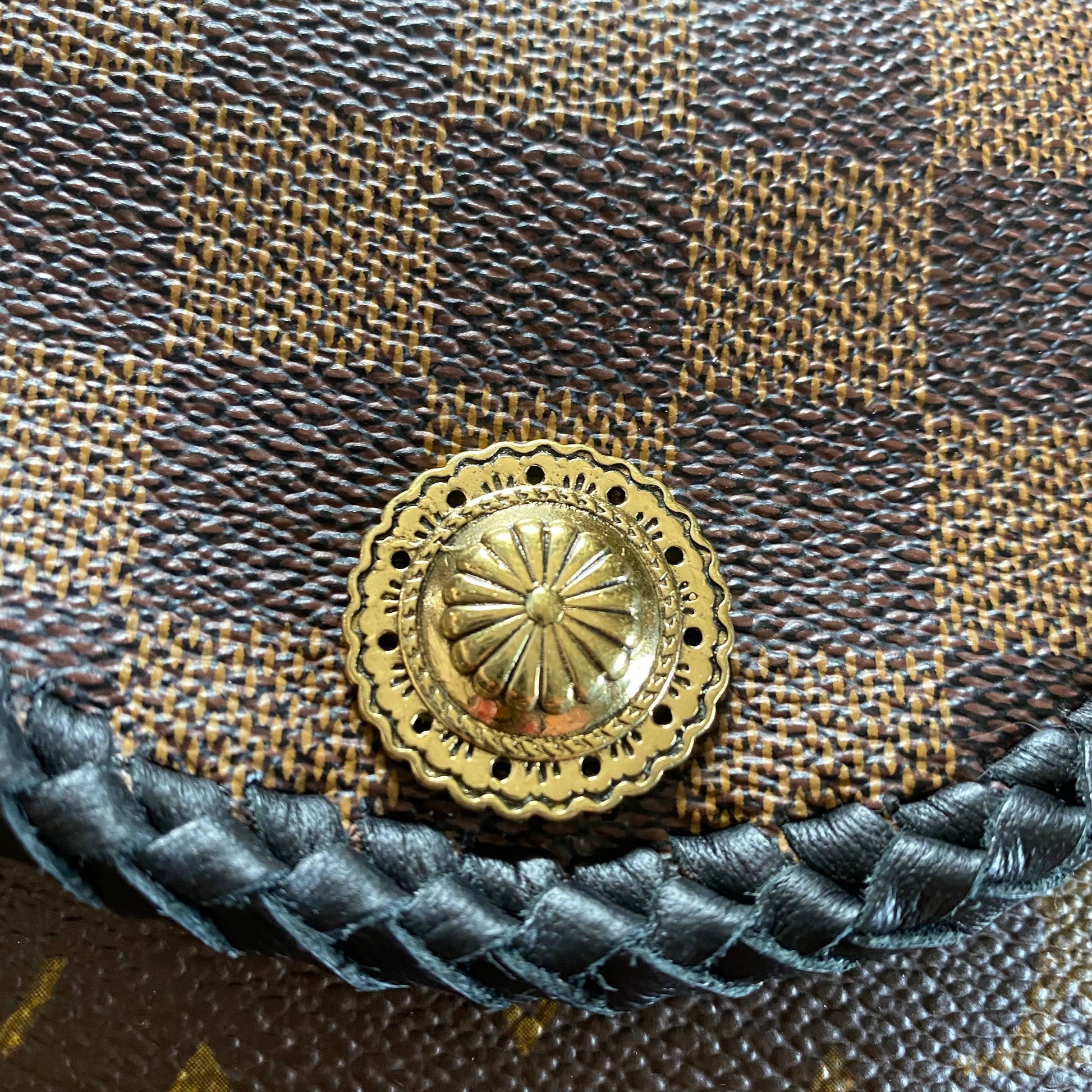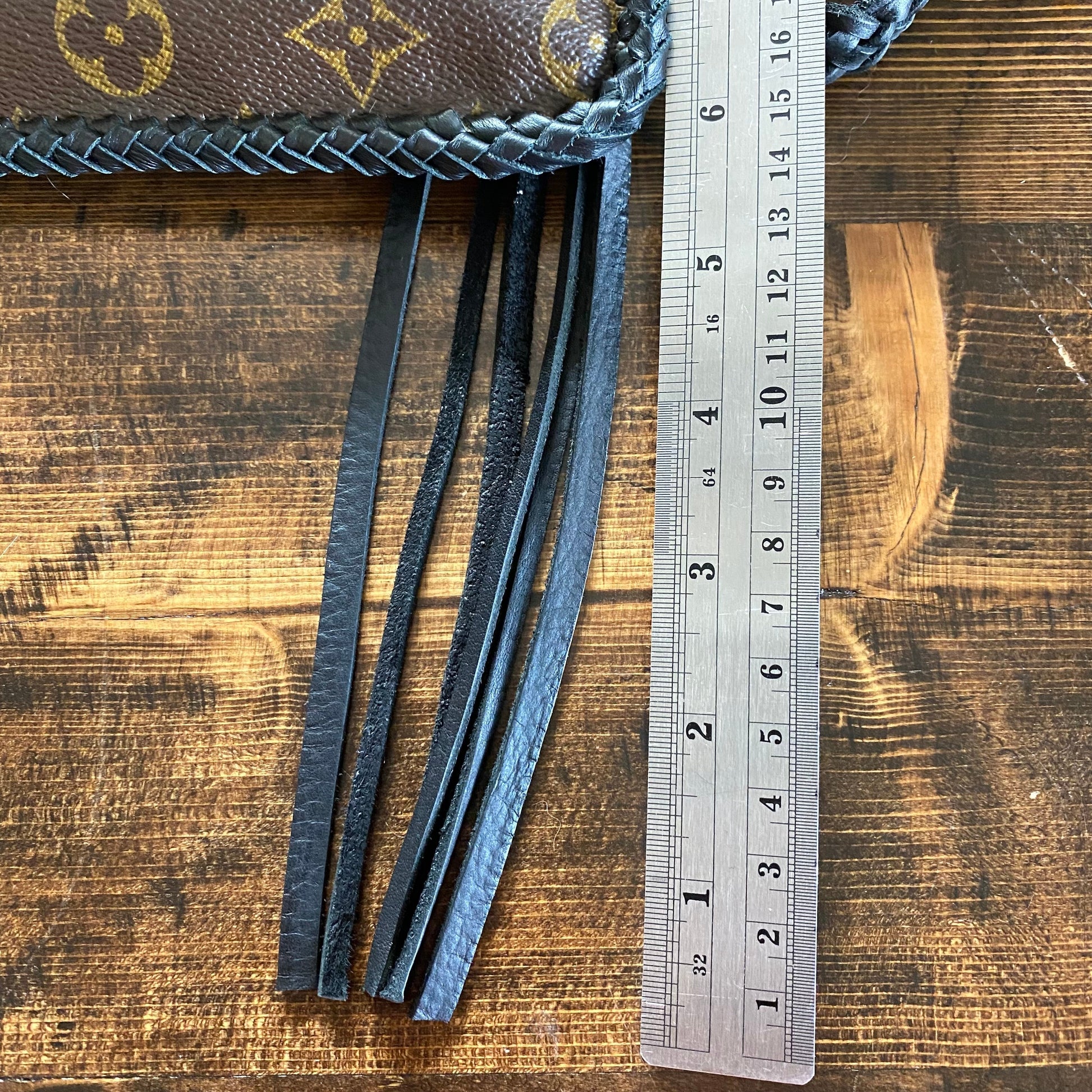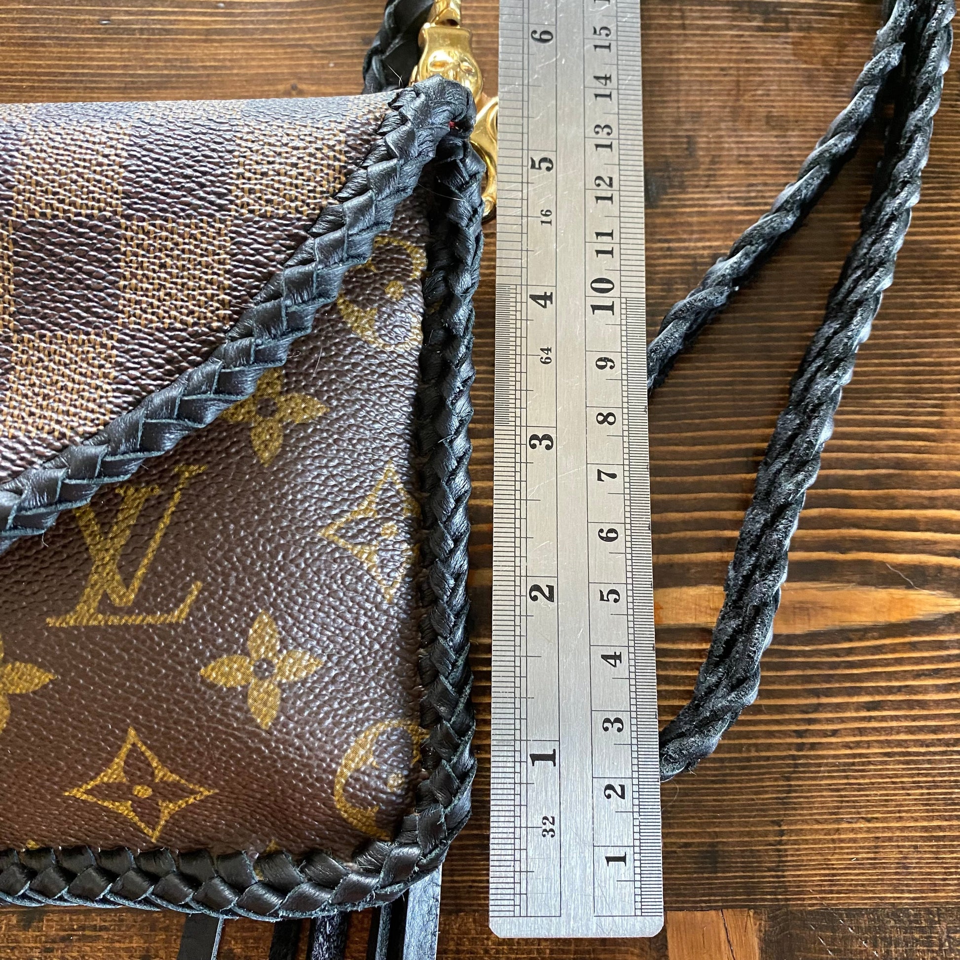 As always, Louis Vuitton Speedy 25 bags were used to make this one-of-a-kind piece. I just love how the Damier Ebene looks with the Monogram print!!! The outside edges are black leather lace which have been stitched by hand. I've also put in a small back pocket, perfect for tucking your phone in!!