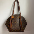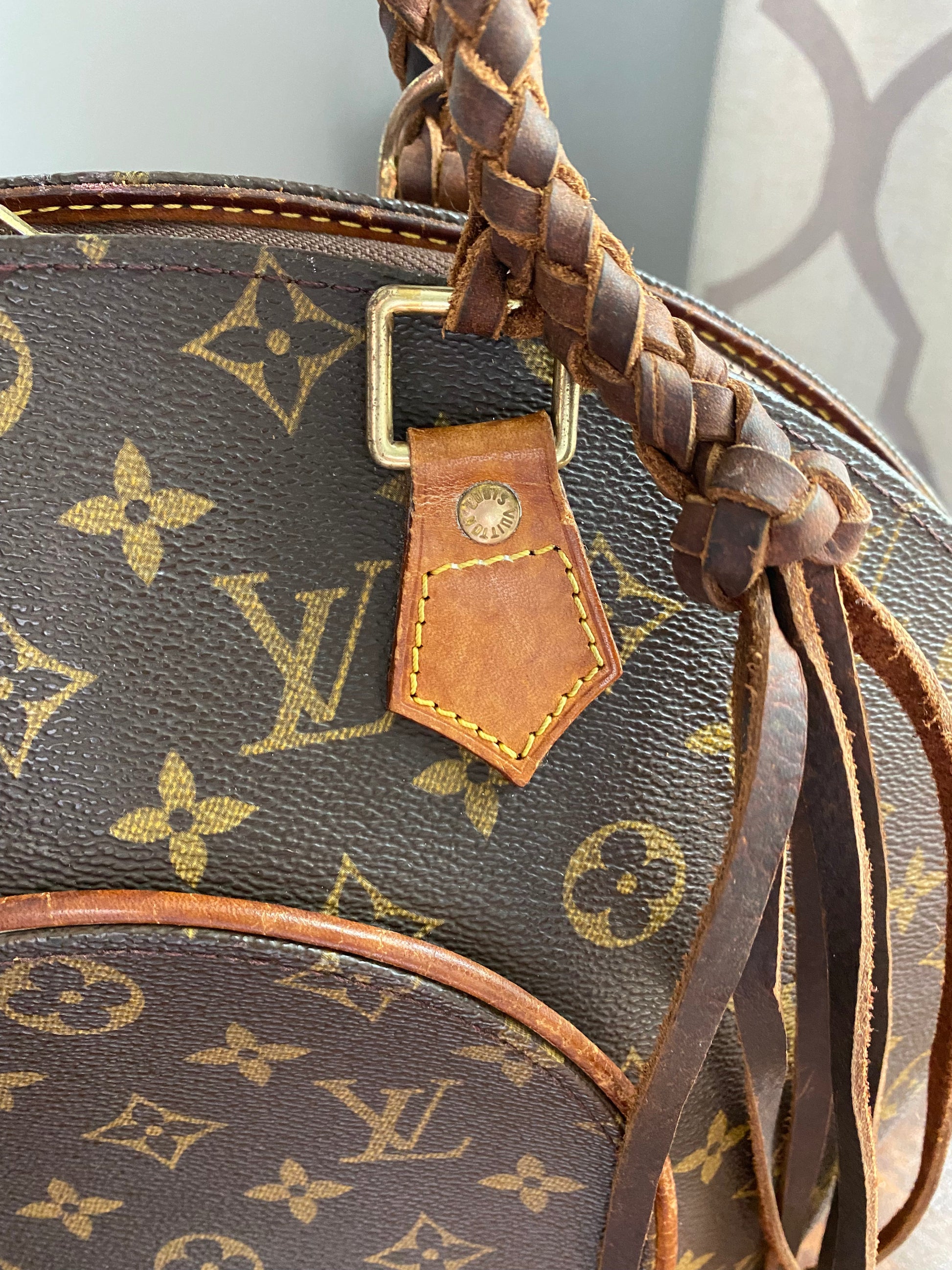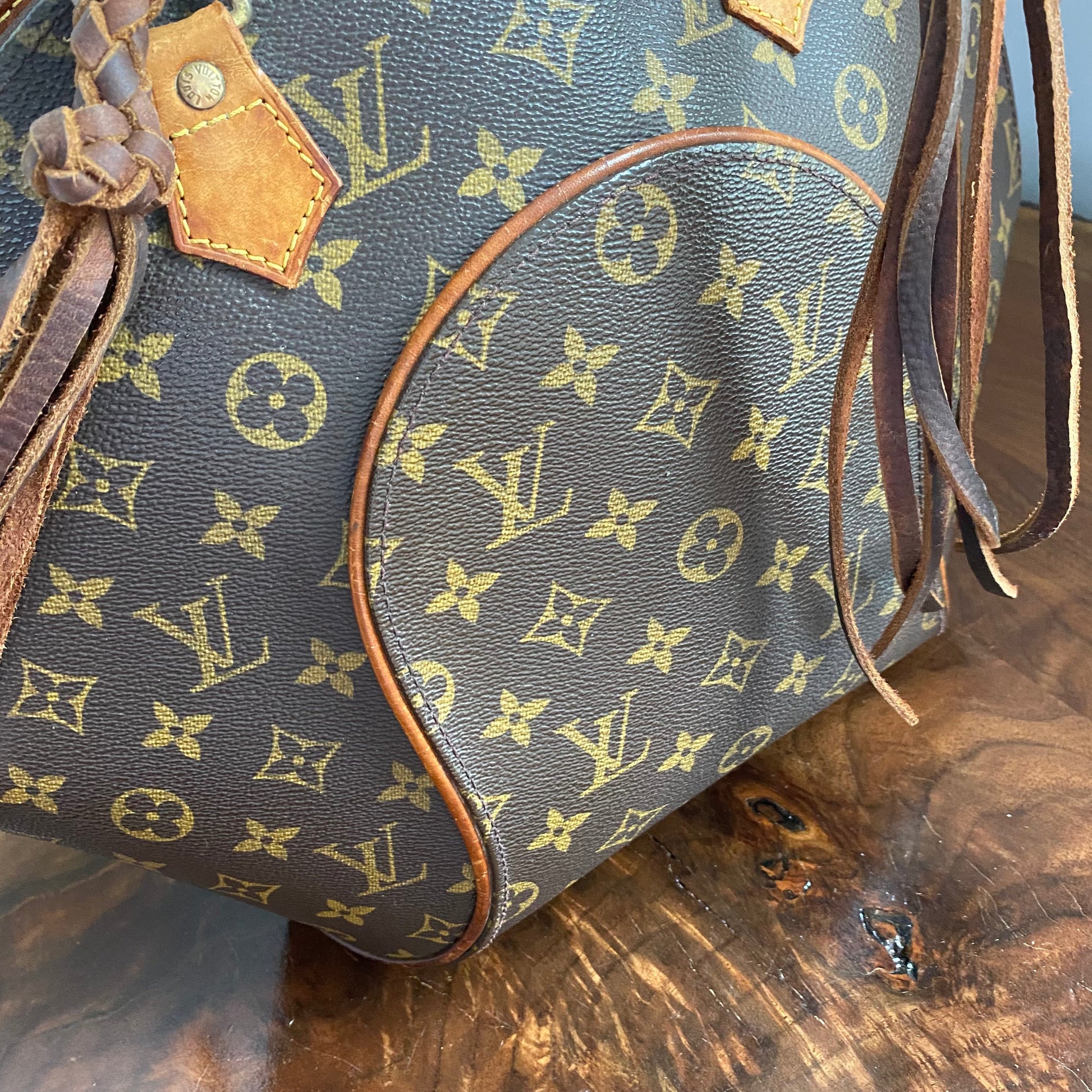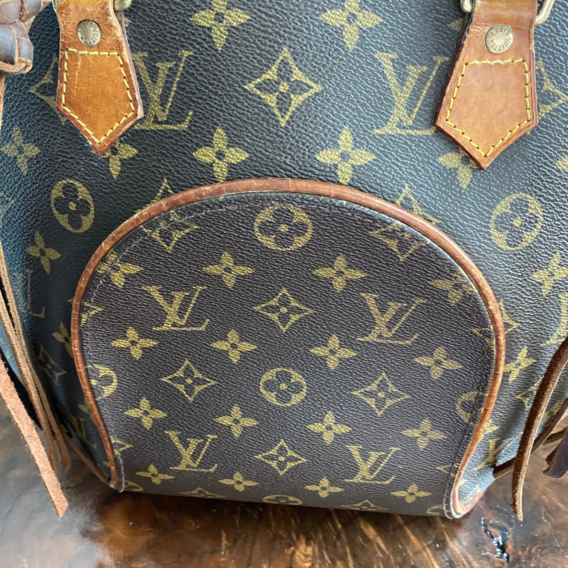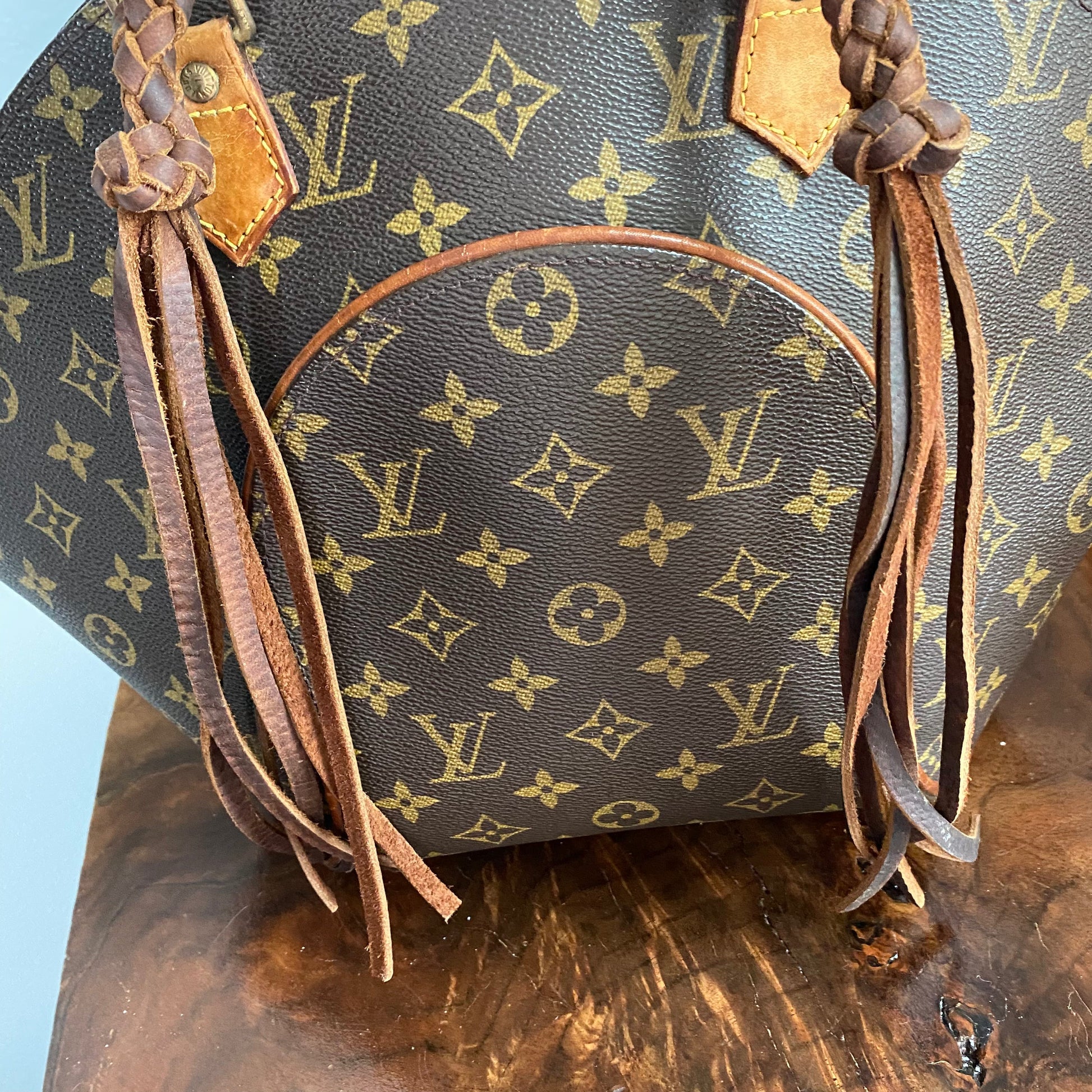 This beautiful bag was created from an Louis Vuitton Monogram Ellipse MM ... and she's ready for a new owner!!! Besides the straps, she was in stunning condition. This is a medium/large style bag that had little bitty handles ... who wants that?? I've removed them and added some gorgeous, fully functional, round braided shoulder straps. (The fringe at the end of the straps can be trimmed to your liking.)