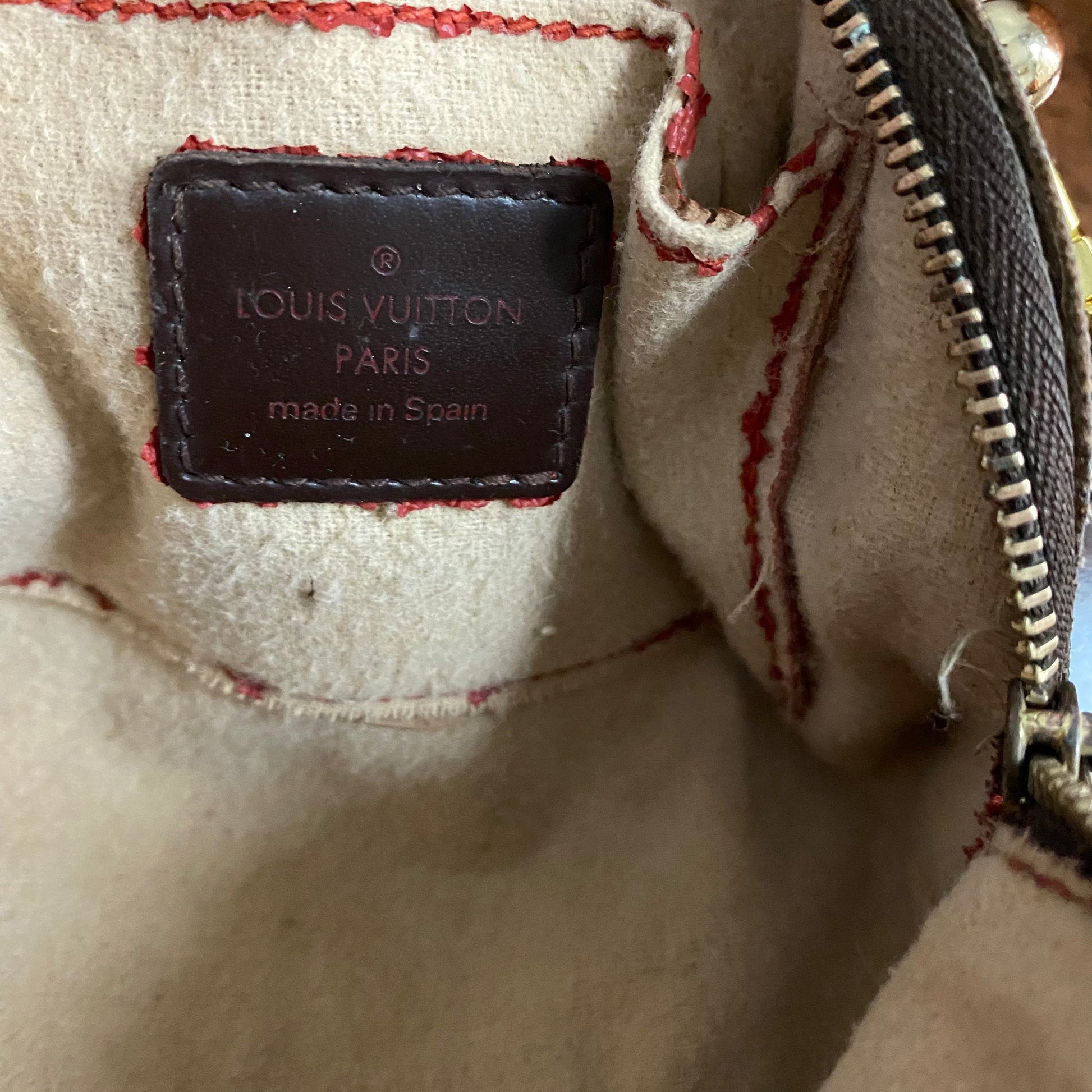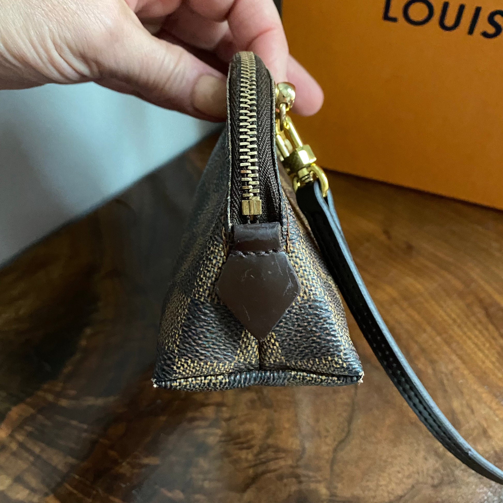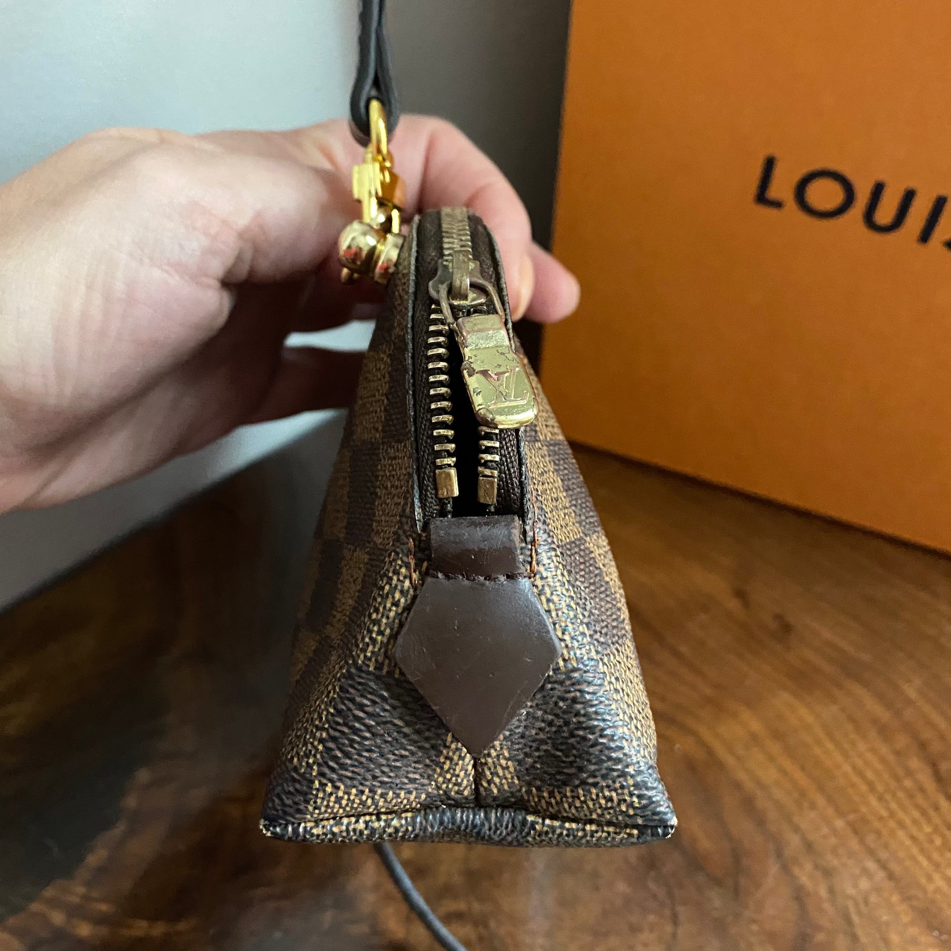 Here is another Junco, this one is made from an Louis Vuitton Damier Ebene Pochette Cosmetic. It's been thoroughly cleaned and is ready for a new owner!!