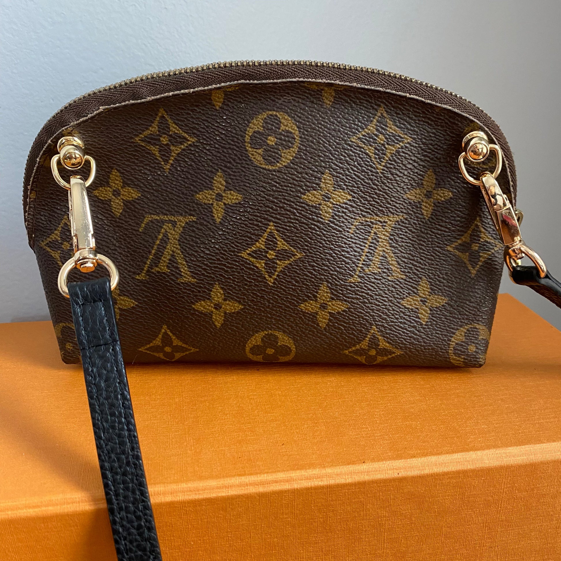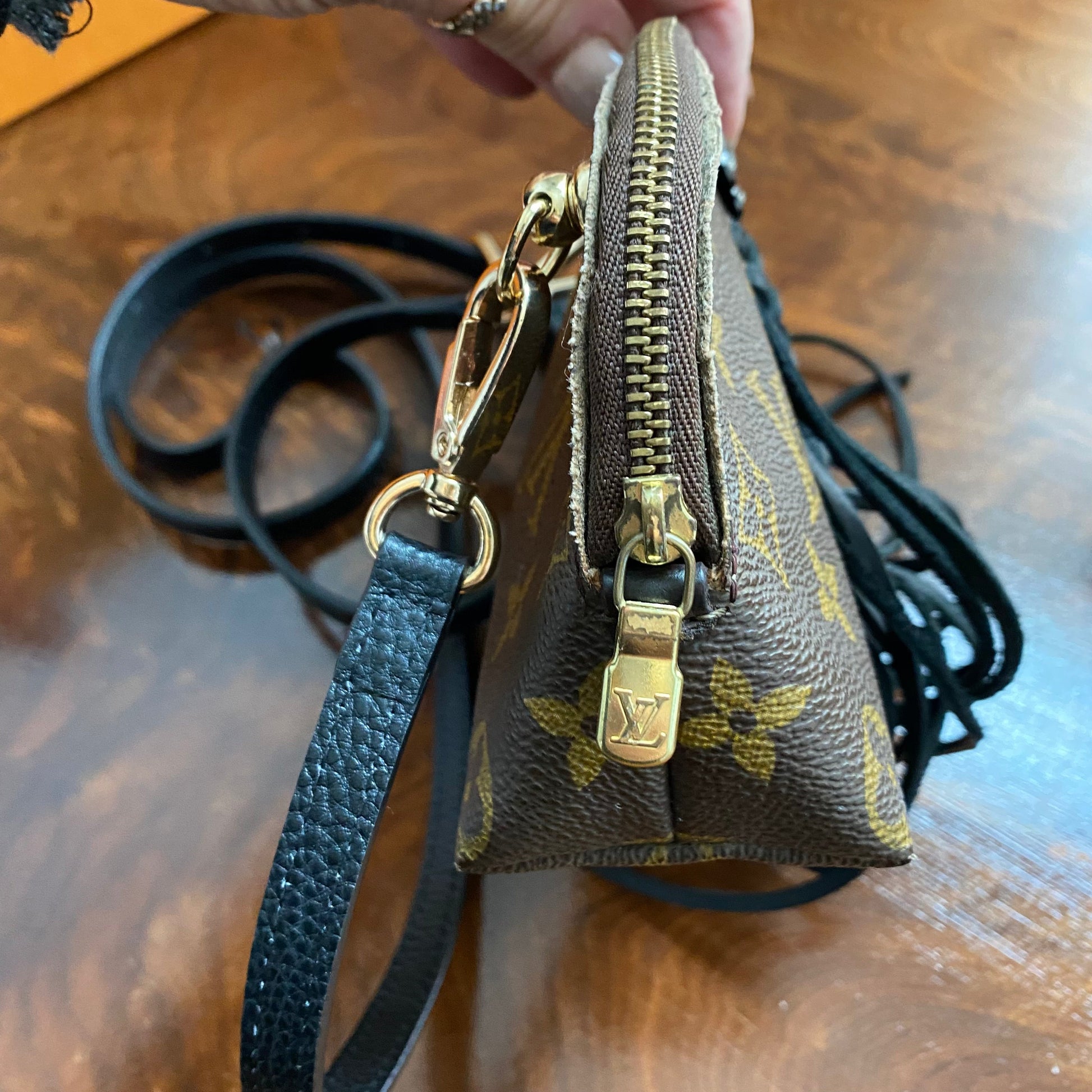 Here is another Junco, this one is made from an Louis Vuitton Monogram Pochette Cosmetic. It's been thoroughly cleaned and is ready for a new owner!!