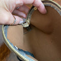About Vuittonite: Prior to 1997, Louis Vuitton lined many of its bags with a vinyl-like material known as Vuittonite. It was used (and patented) by Louis Vuitton because its resistance to water makes it easy to clean. Unfortunately, when exposed to high heat or humidity, Vuittonite begins to deteriorate and peel away from the edges of the bag. Over time, it becomes increasingly sticky, forming a residue (which, in extreme cases, is black in color) that transfers to anything placed inside the bag.