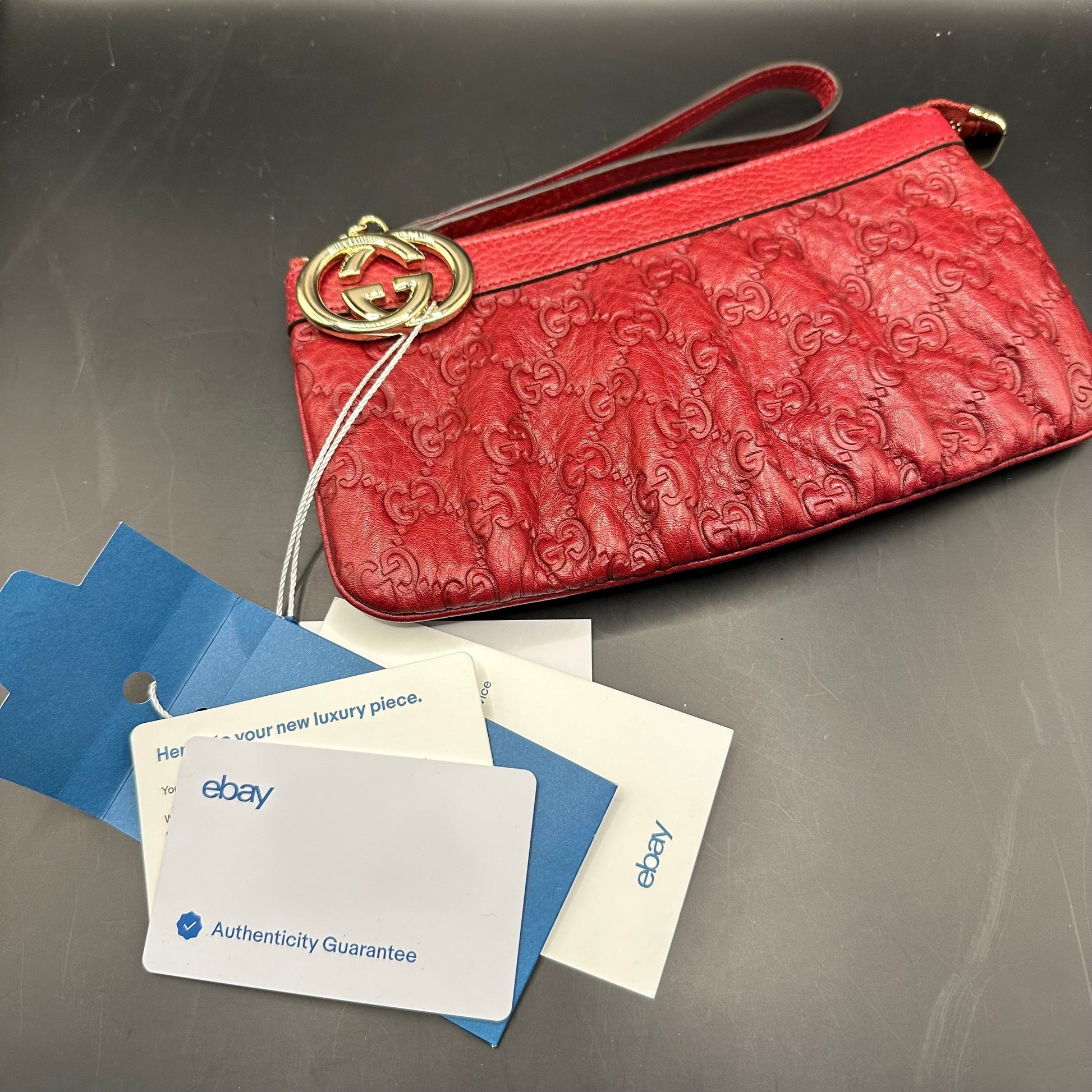 This Junco is a beautiful Gucci leather Guccissima wristlet bag that has been converted into a crossbody bag. She's brand new and was officially ated by eBay!!