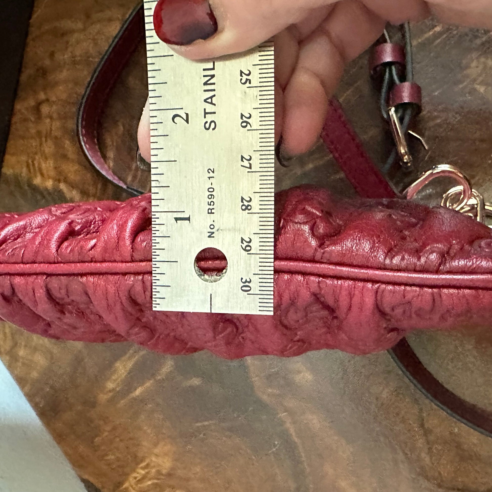 I don't normally buy brand new bags, but this one was stunning!!! The leather is perfect. The hardware is not scratched. The interior is pristine! I've added gold D-rings to the back of the bag to hold the matching leather strap. The strap is adjustable from 39-48" making this the perfect crossbody bag!