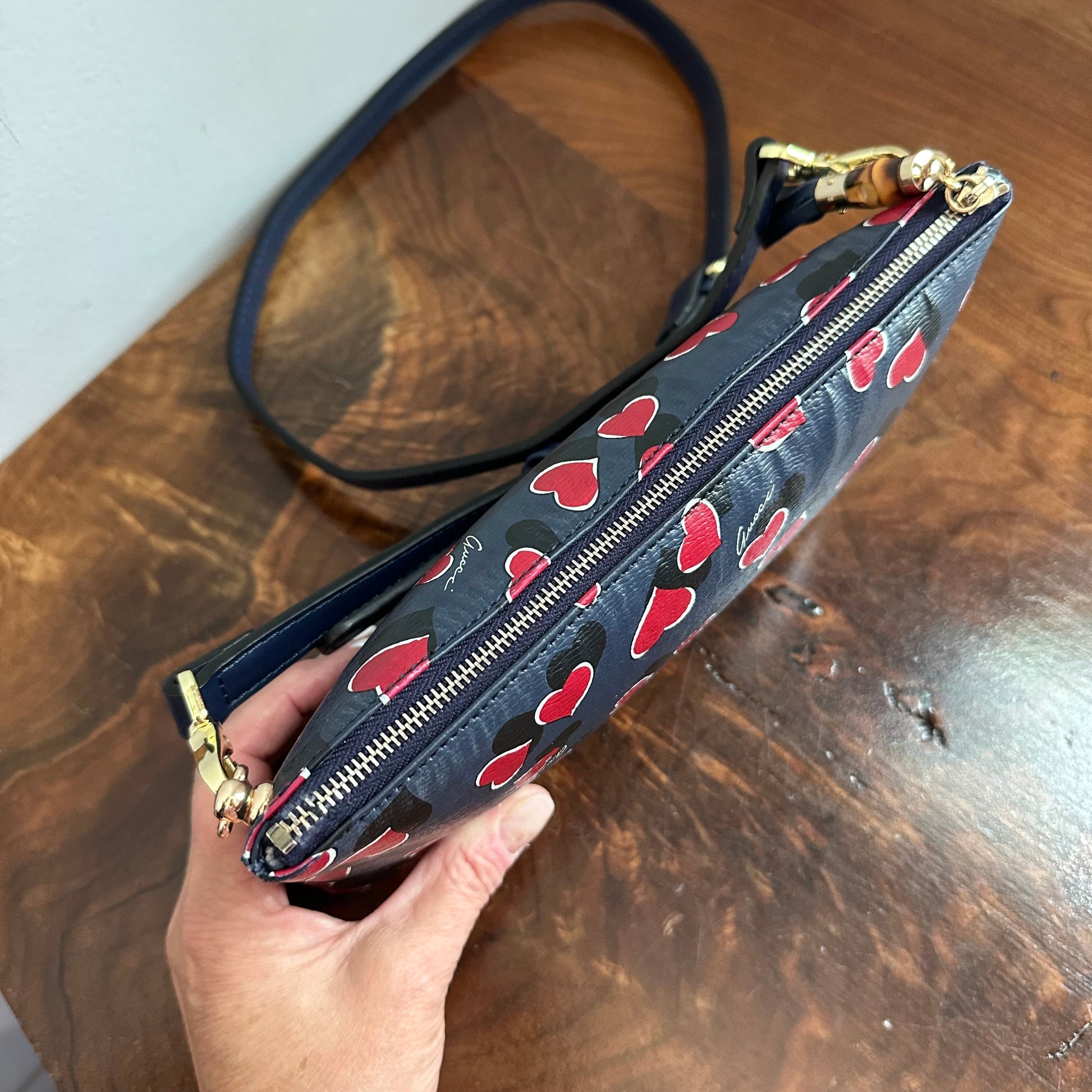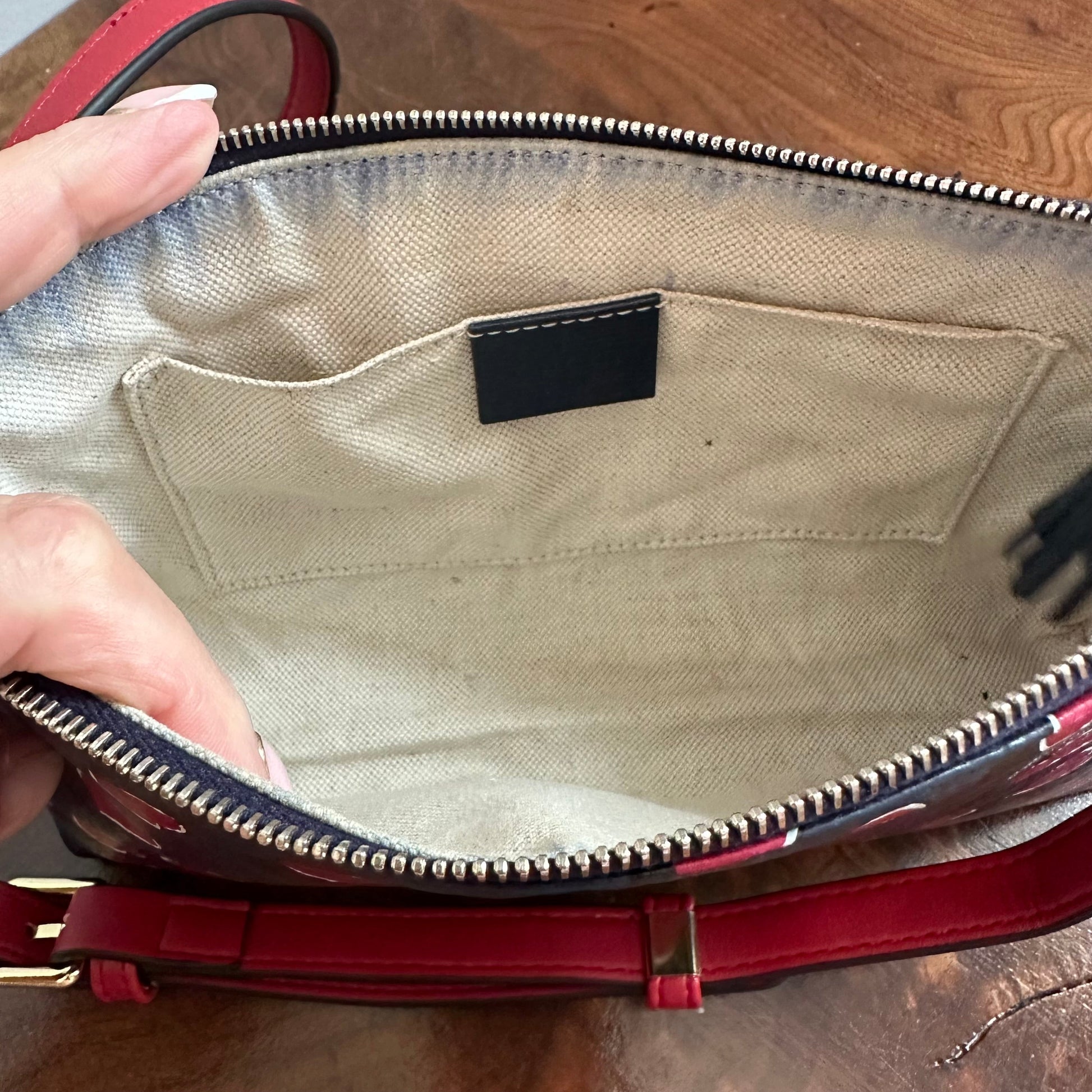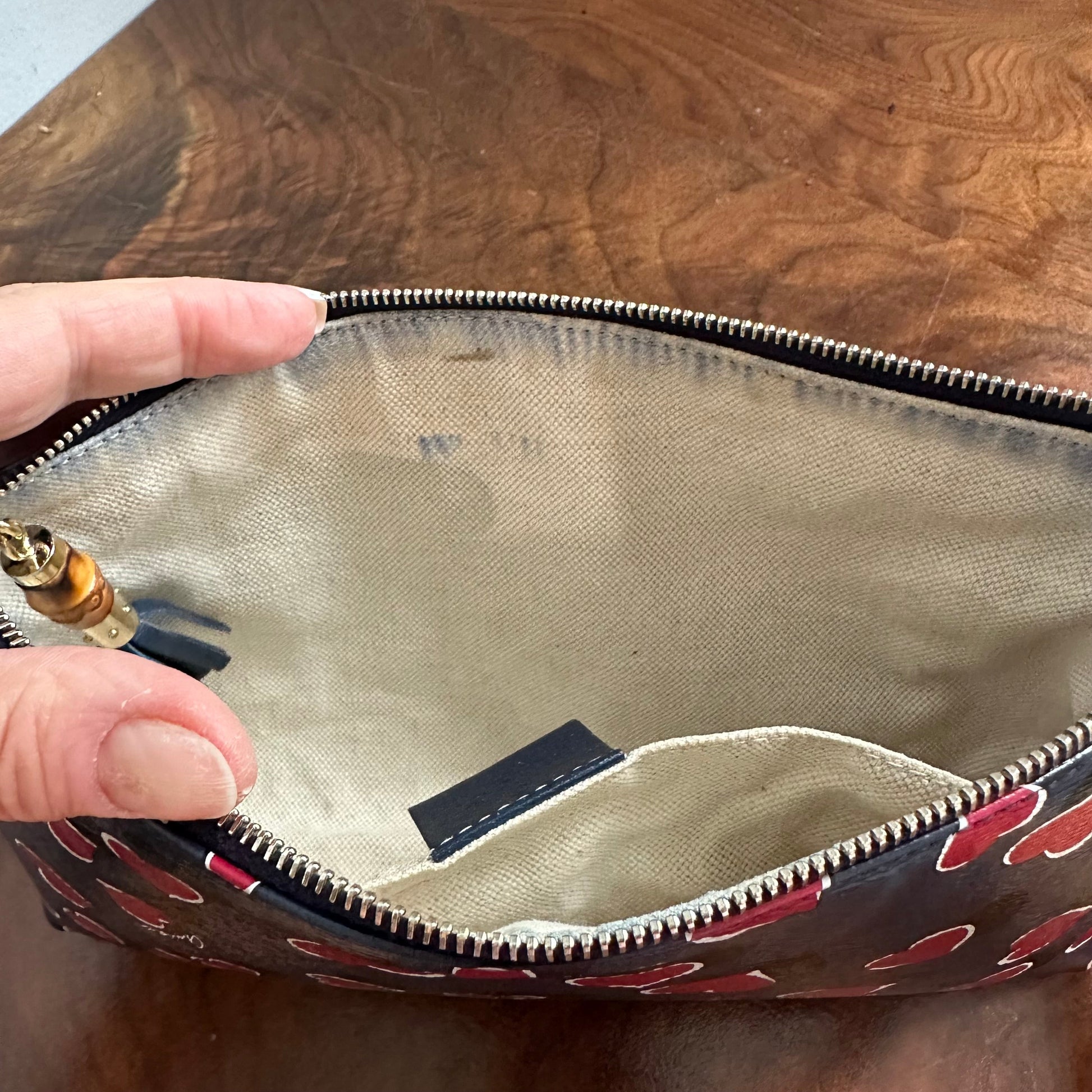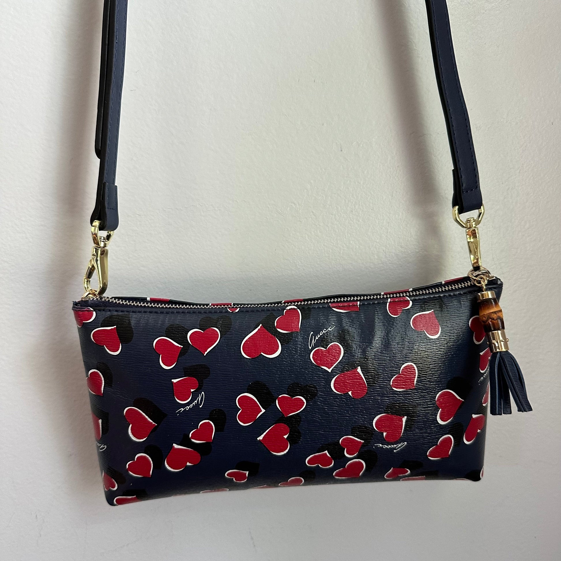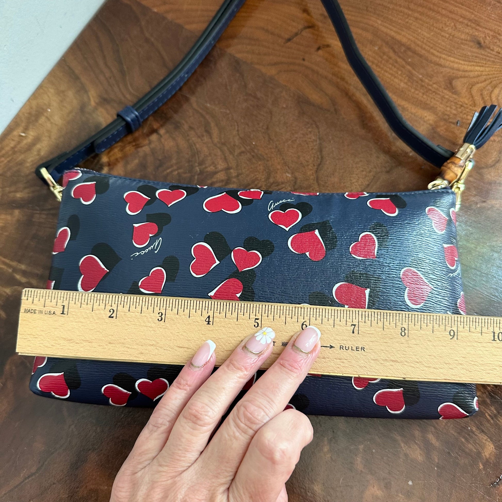 This beautiful Gucci calfskin Heartbeat Bag is the epitome of red, white, and blue. She's even got some black in her. The exterior leather is in GREAT condition, with only slight wear on the corners.