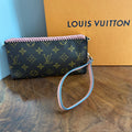 Here's another cute Junco wristlet that's been made from an Louis Vuitton Monogram Bucket Pouch 27. It's been thoroughly cleaned and is ready for a new owner!!