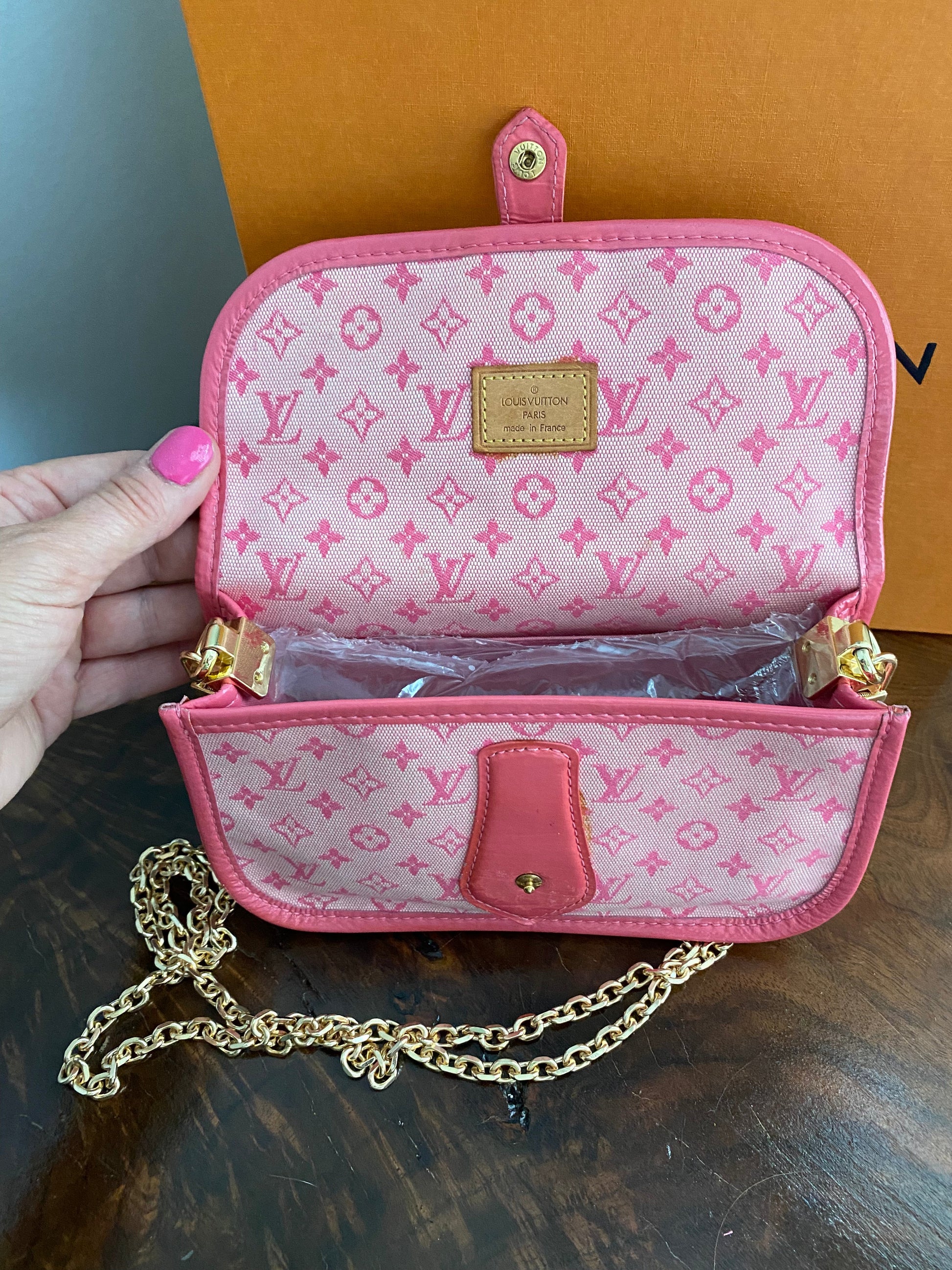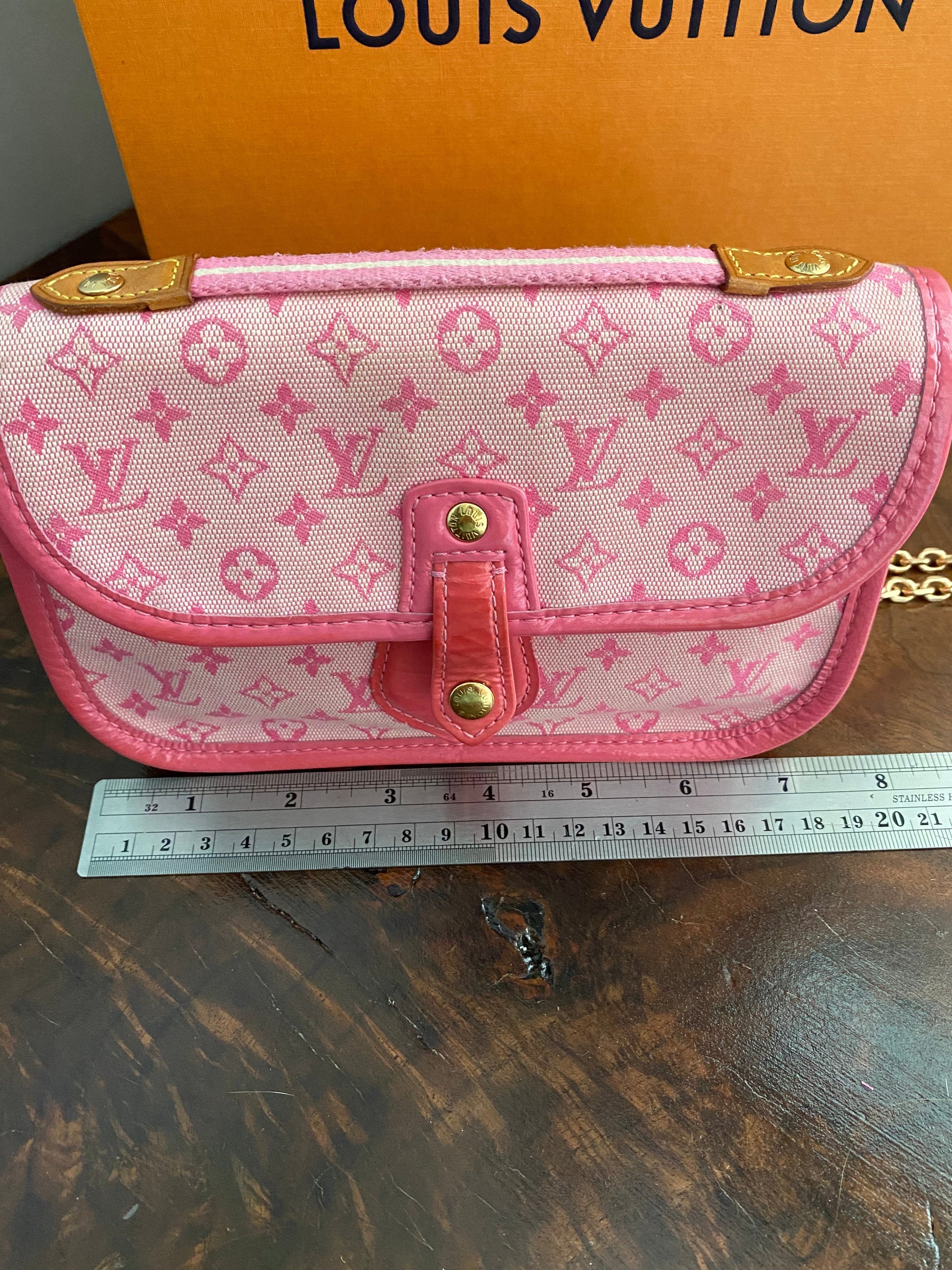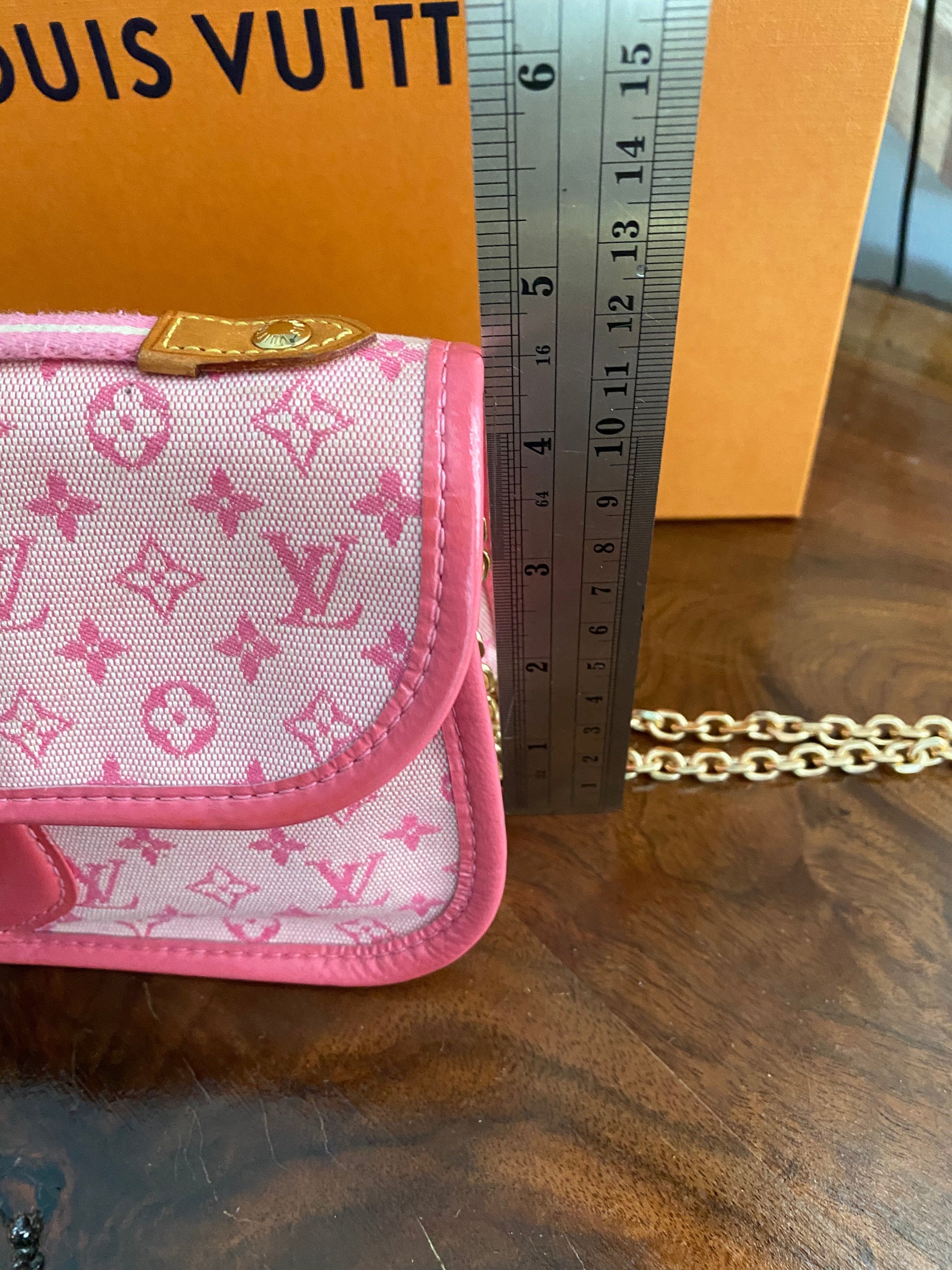 The measurements of this cute little bag are: L7.5 x W3 x H5 " high and has a 1" handle. The date code, MI1003, indicates it was produced in France in October of 2003. Please do your research on this cute little bag, it's a collectible! It will come with its original dustbag.