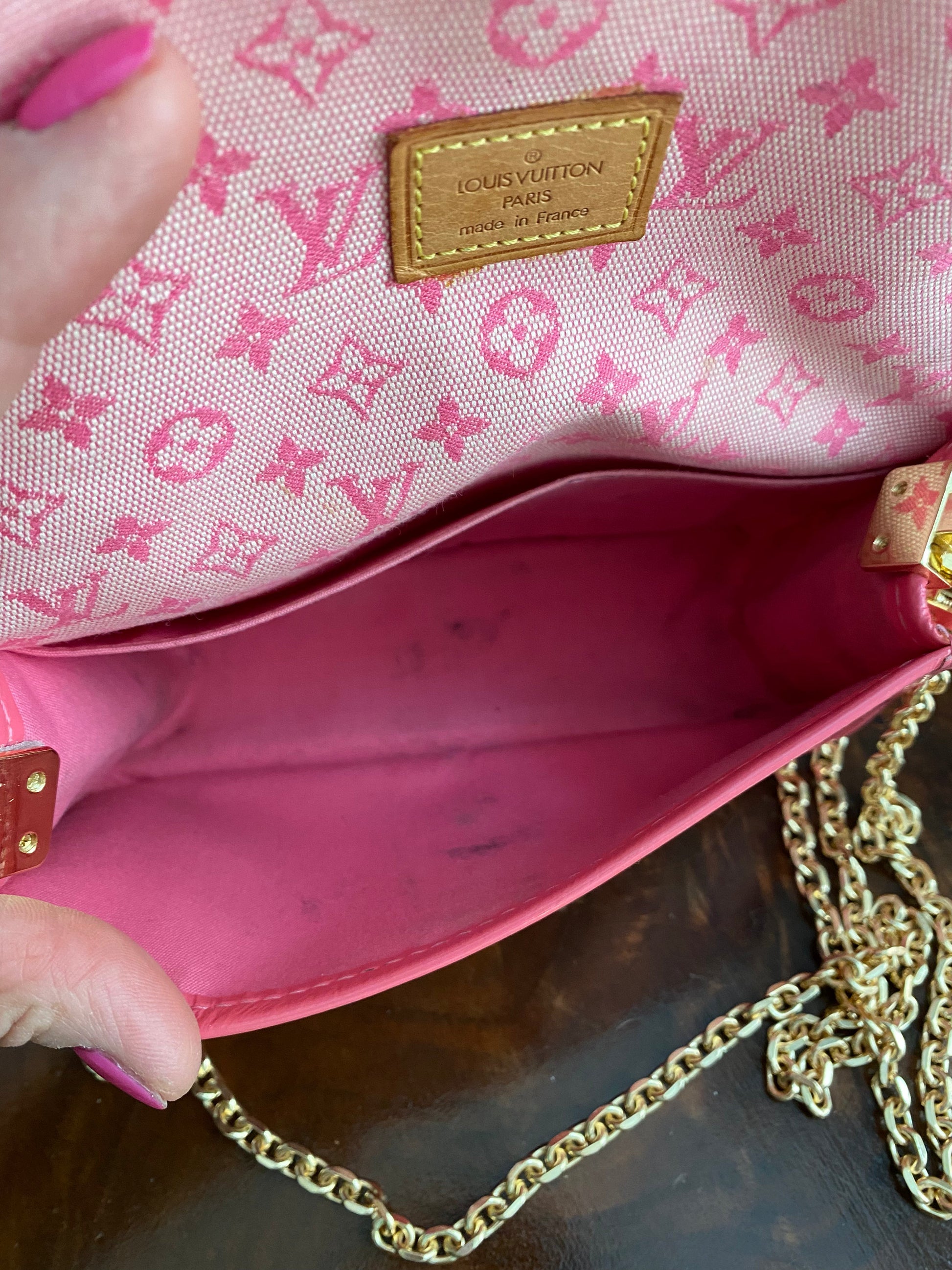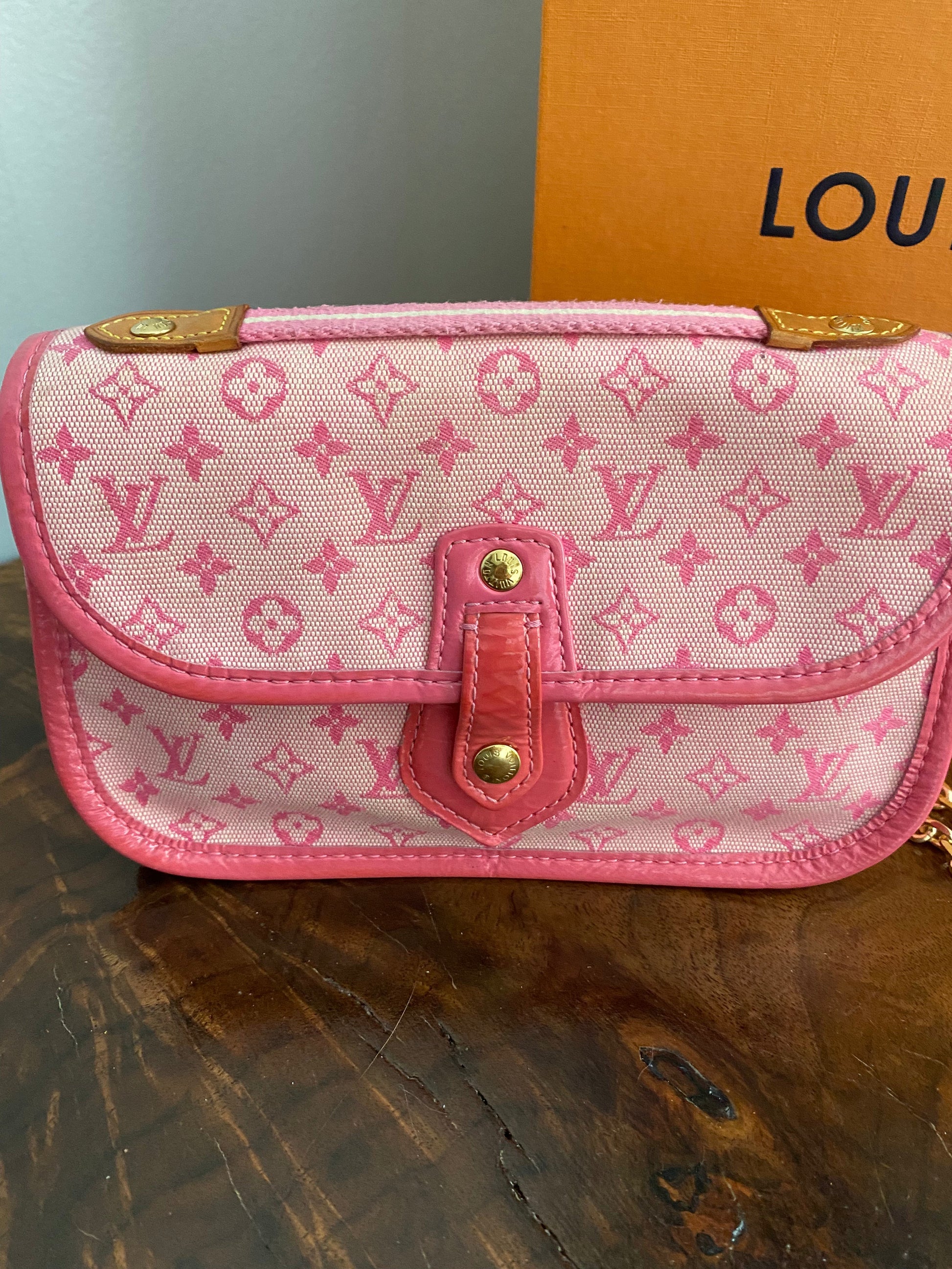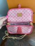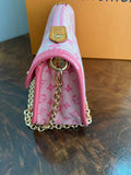 This one is so special and is such a collector's item!! This bag is an Louis Vuitton Pink Monogram Mini Lin Canvas Mary Kate Pochette that is just adorable!! She's been cleaned up, and is ready for a new owner!!