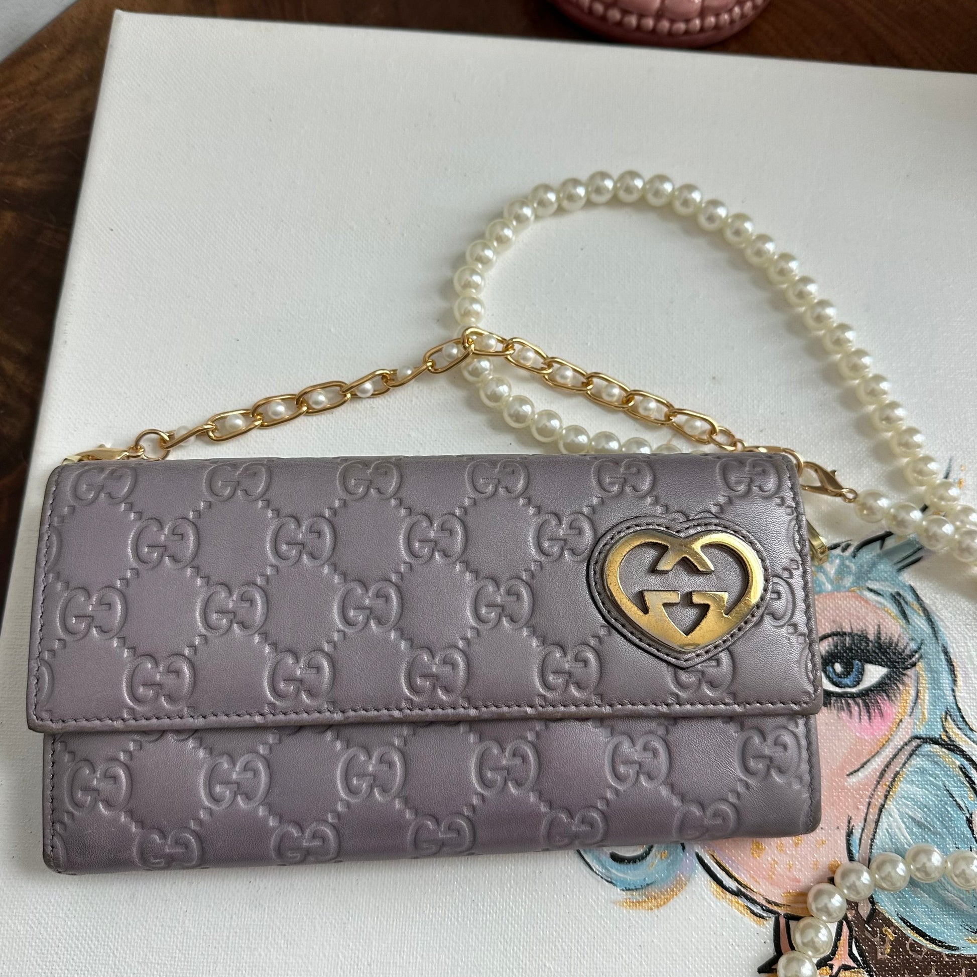 Here is another Junco that's been made from an Gucci Long Wallet with Pale Purple Guccissima ?? and a beautiful GG heart on the front. This beauty is in great condition and is ready for a new owner!!