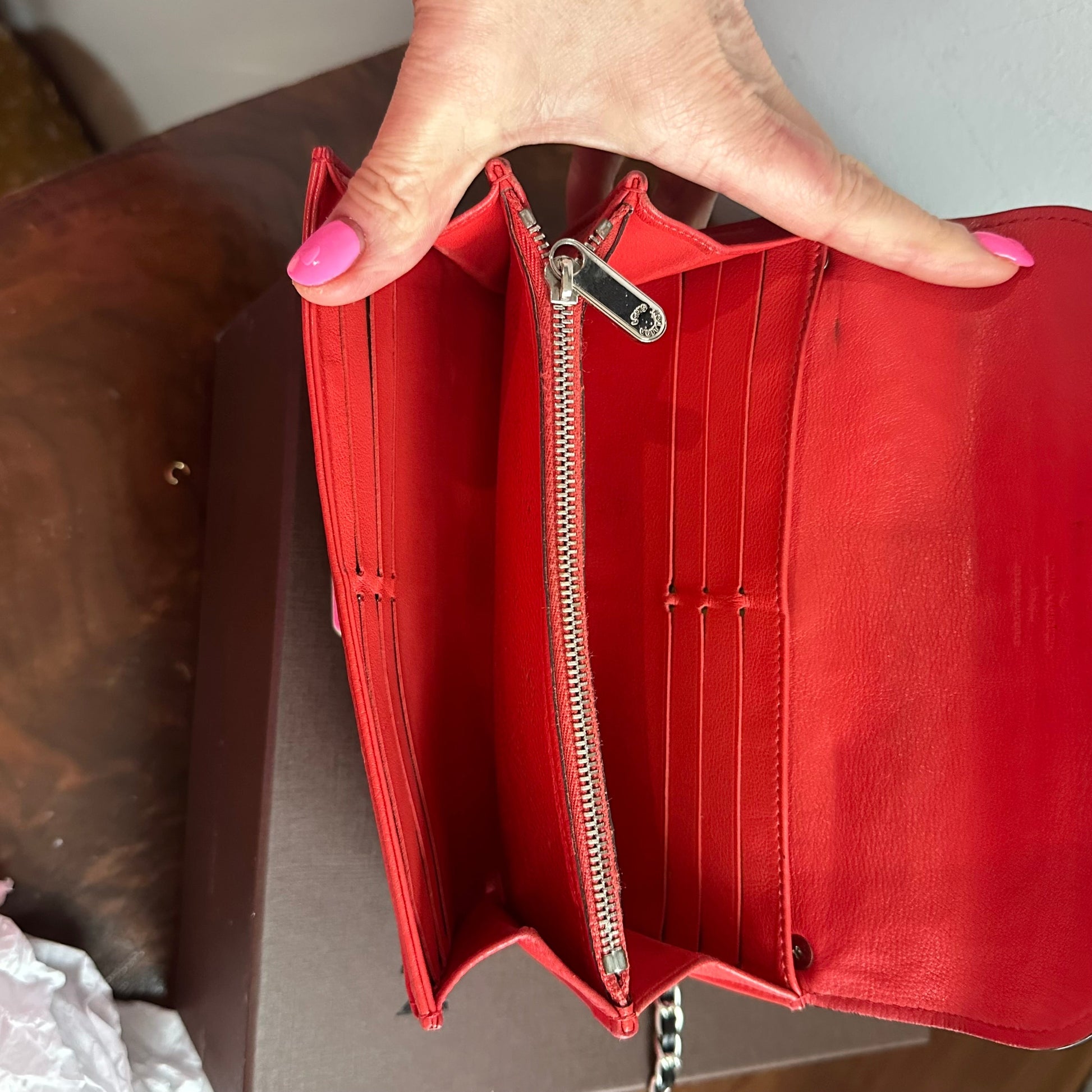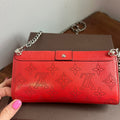 The Junco Wallet on Chain -Prestige Totes Bags LV Mahina in Red Leather