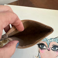 The exterior coated canvas is in good shape, but has a couple of small stains on the back (see pics). I've thoroughly cleaned it inside and out. The original chain is included, I’ve just added a brass eyelet to the tab in order to make it more secure. The zipper works great!