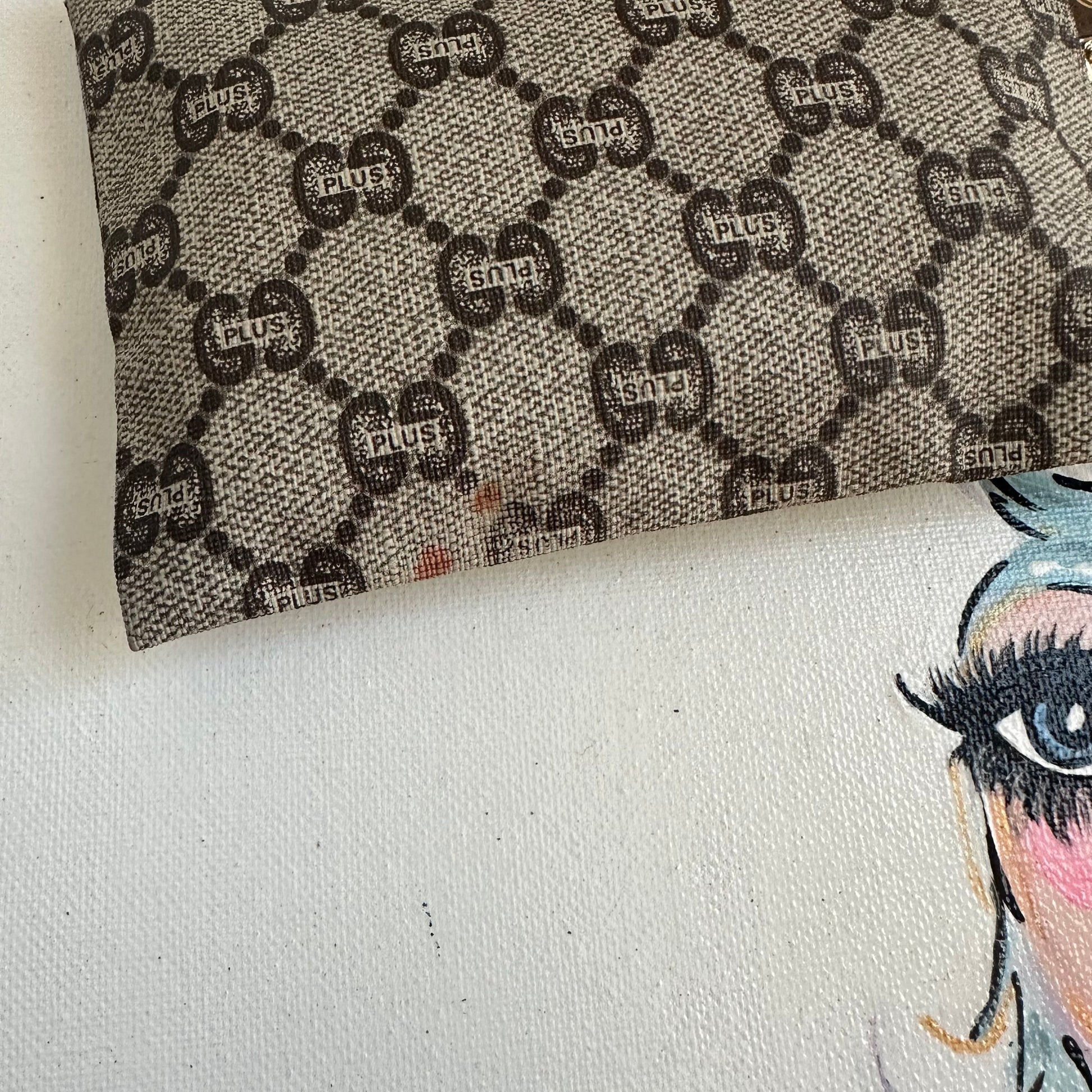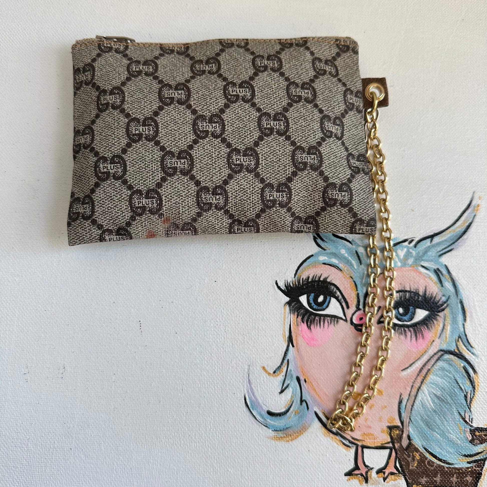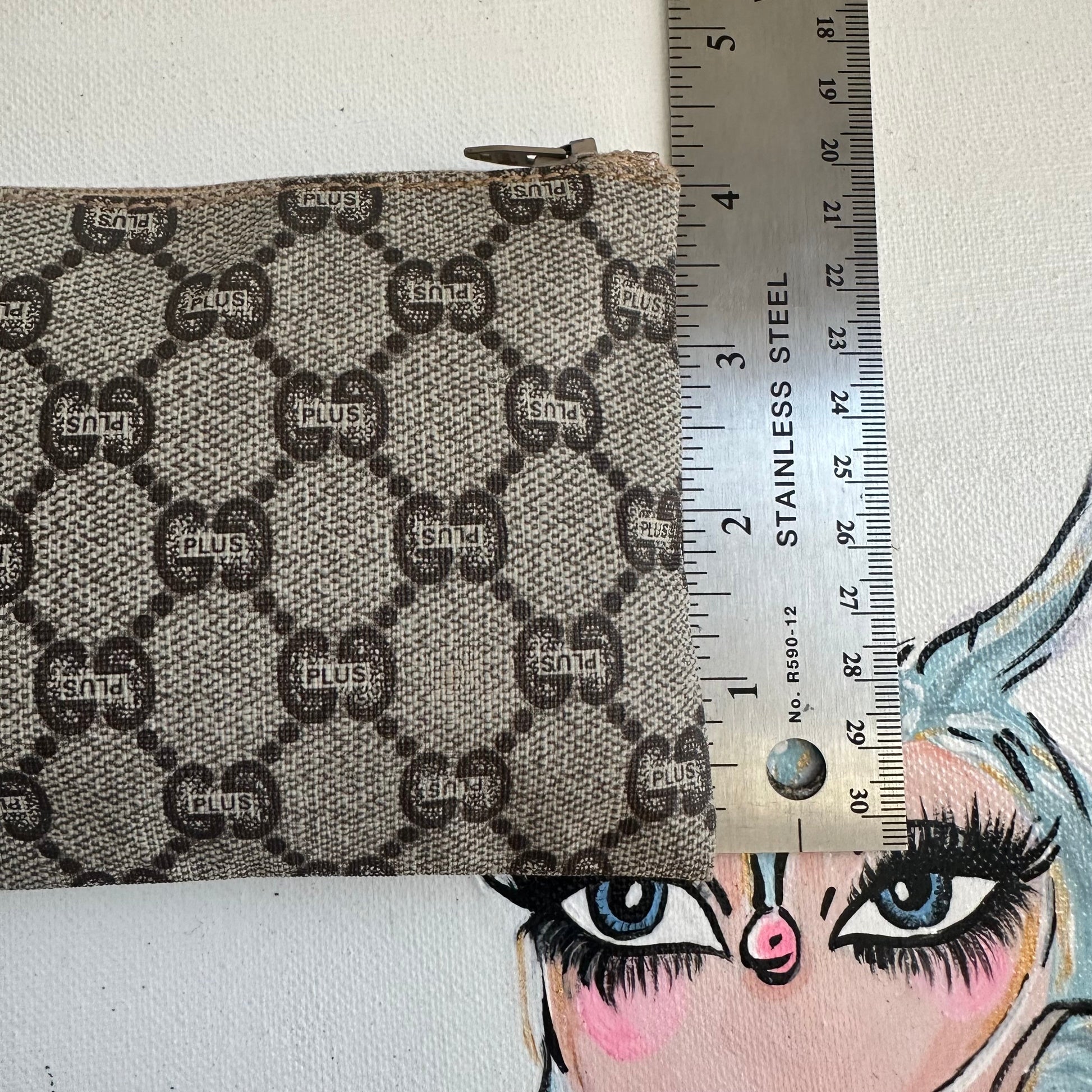 This baby Junco isPrestige Totes coated canvas Gucci Plus wristlet thats great for putting some cards and cash into. This little Junco measures is W5.25 x H4 x D0.5"