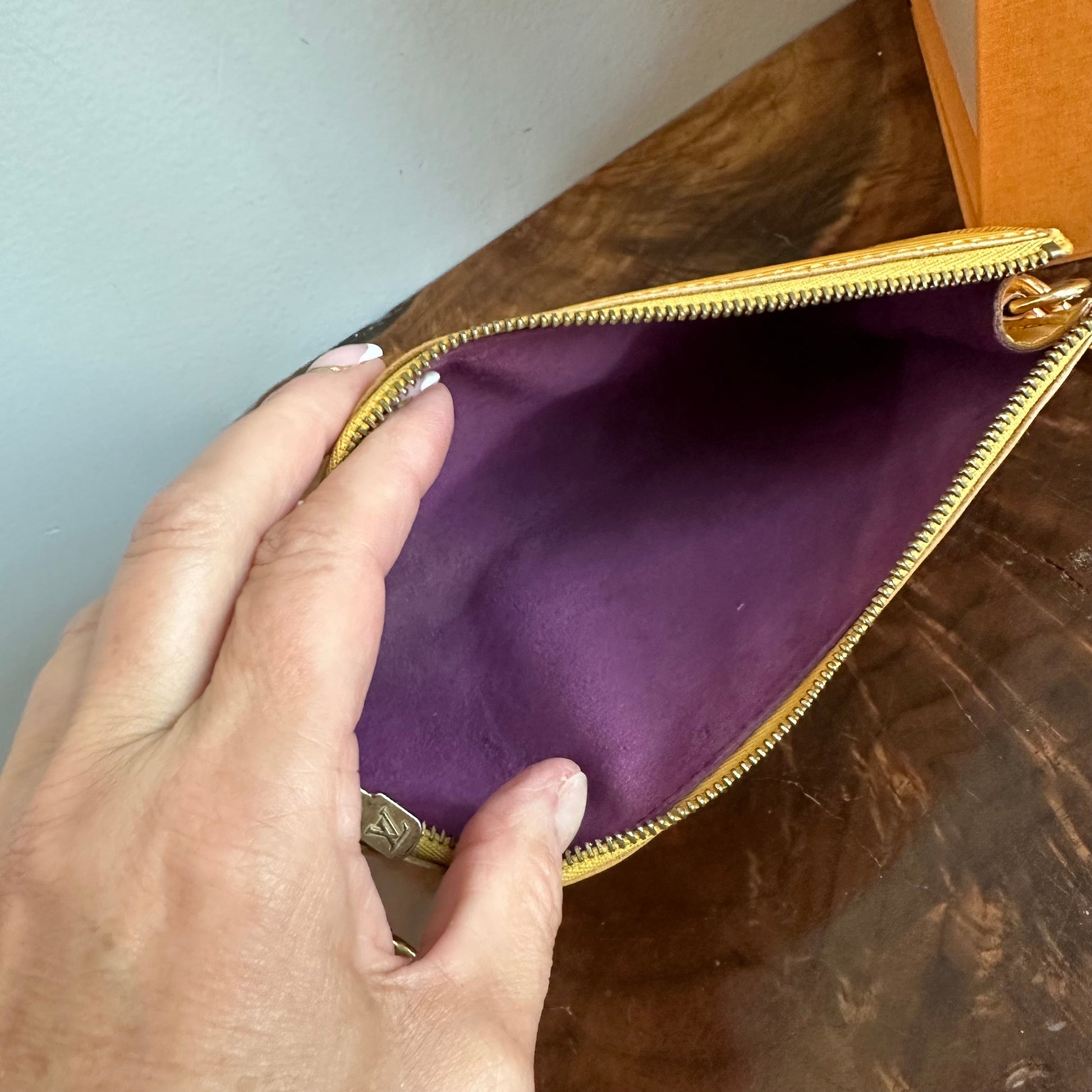 Here's the happiest little Junco I've made yet! This beautiful yellow bag is an Louis Vuitton Epi Pochette Accessories. It's been thoroughly cleaned and is ready for a new owner!!