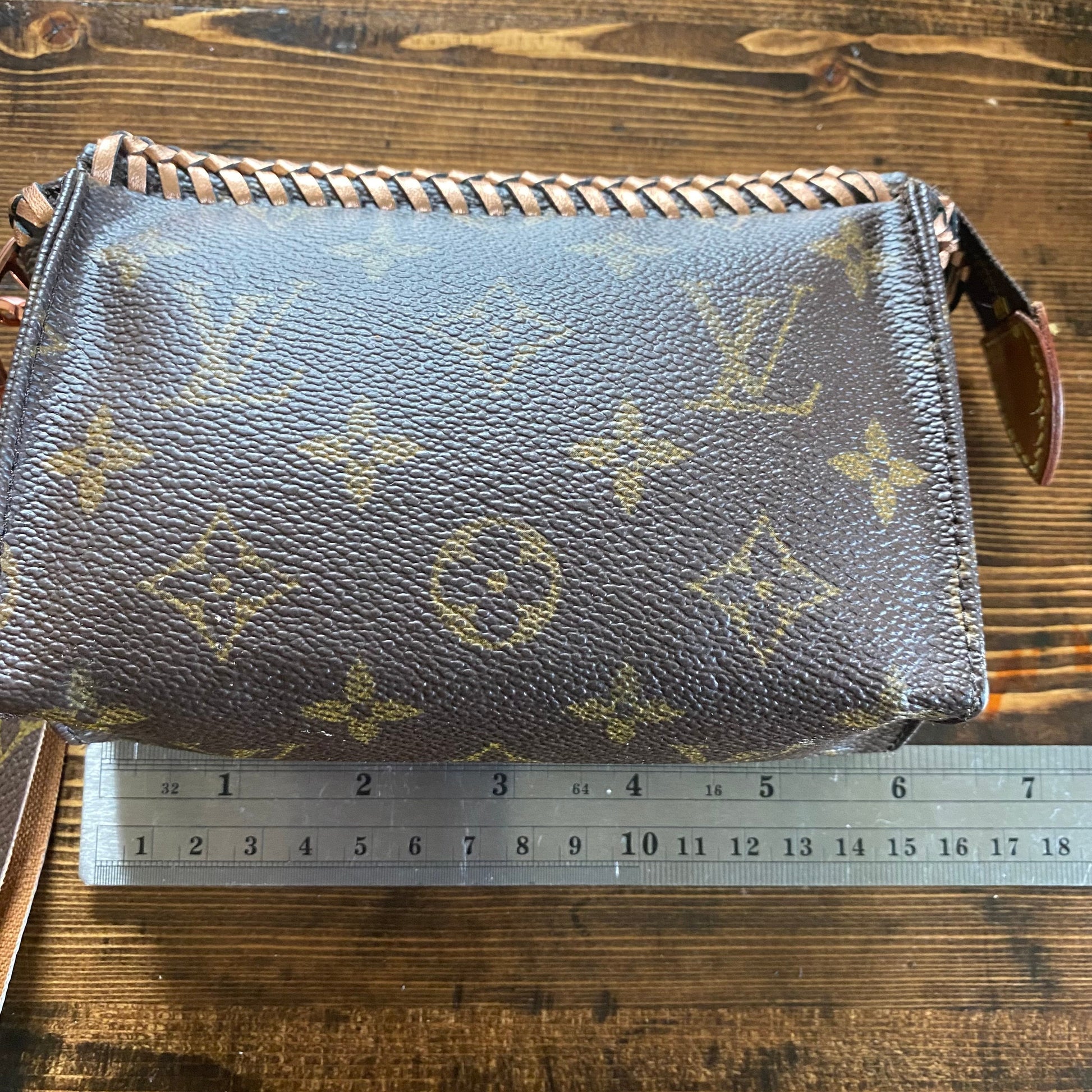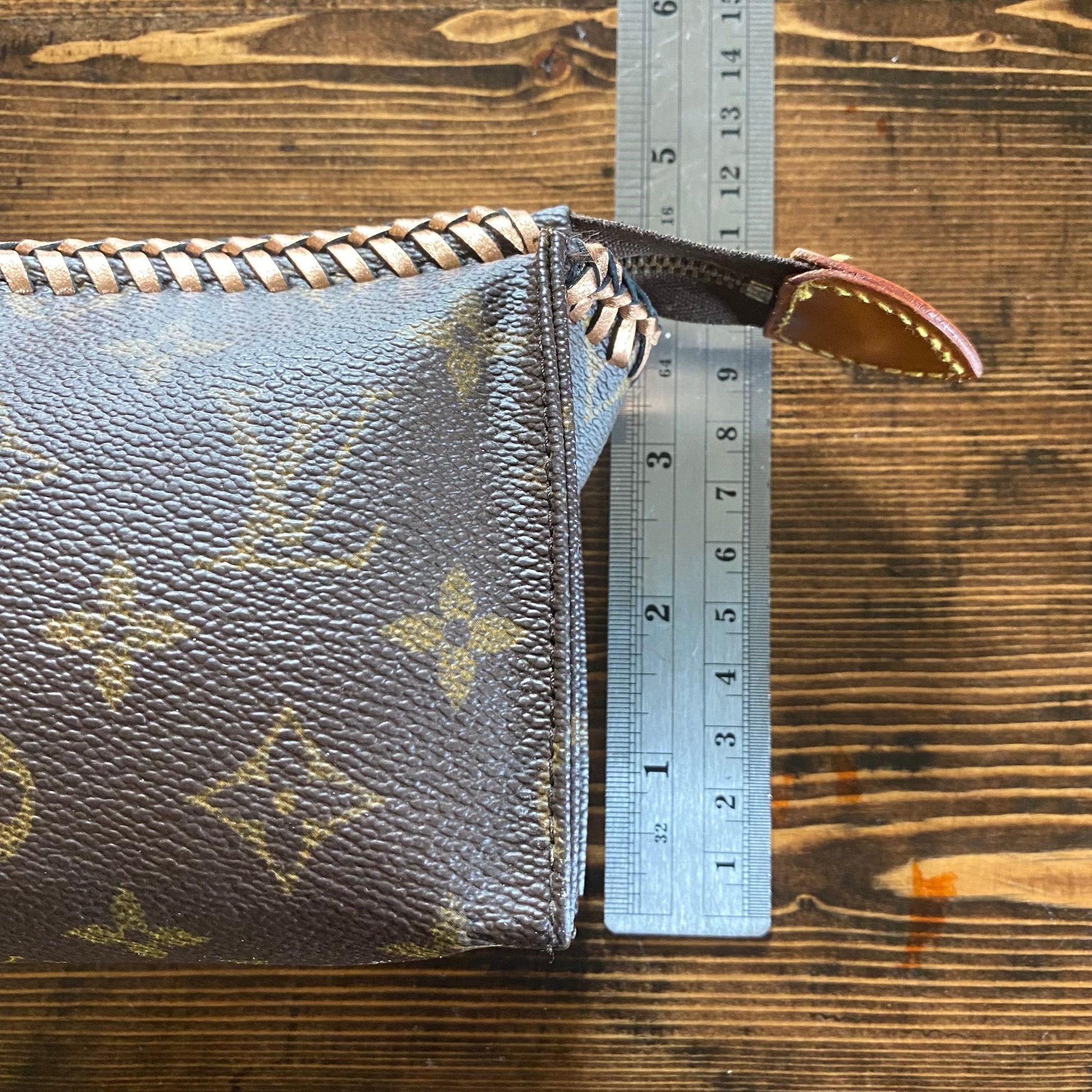 The bag shows very little wear on the outside, it's in good condition. The inside Vuittonite (see below) has been removed, and the raw clean canvas remains.
