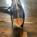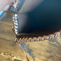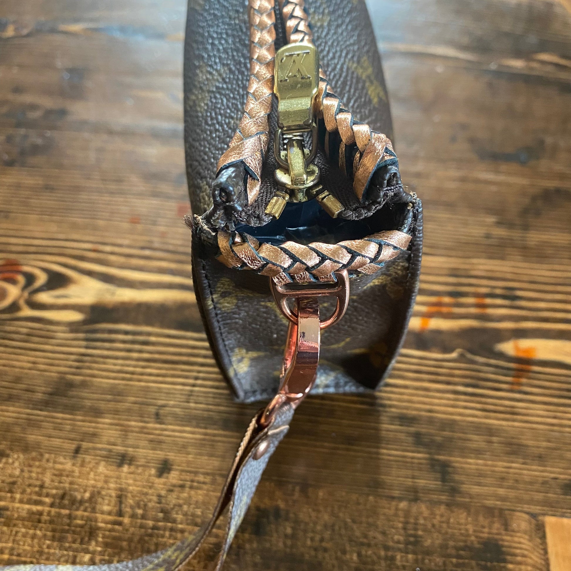This is an Prestige Totes Poche Toilette 15 Cosmetics Pouch that was hand modified with adorable rose gold leather braiding! It's the cutest little bag that easily hold cards, keys and a lipstick!!! Perfect for tucking into your bigger purse, or going out to the bar with your friends!! It measures L5.75 x H3.75 x W1.75" . I've attached a rose gold D-ring and matching wrist strap.