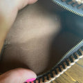 About Vuittonite: Prior to 1997, Louis Vuitton lined many of its bags with a vinyl-like material known as Vuittonite. It was used (and patented) by Louis Vuitton because its resistance to water makes it easy to clean. Unfortunately, when exposed to high heat or humidity, Vuittonite begins to deteriorate and peel away from the edges of the bag. Over time, it becomes increasingly sticky, forming a residue (which, in extreme cases, is black in color) that transfers to anything placed inside the bag.