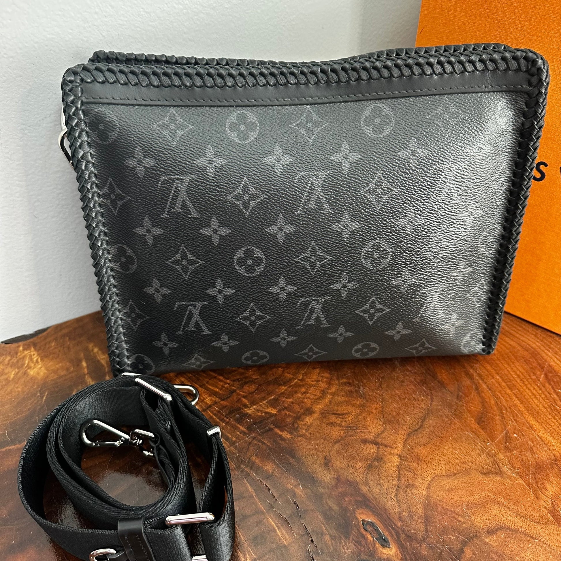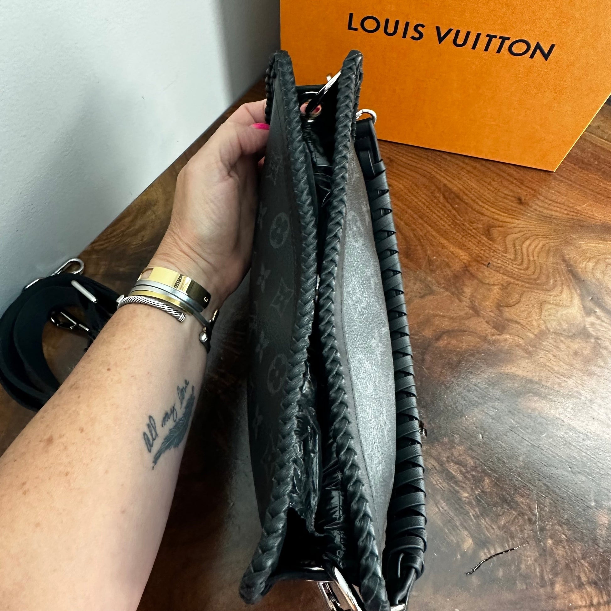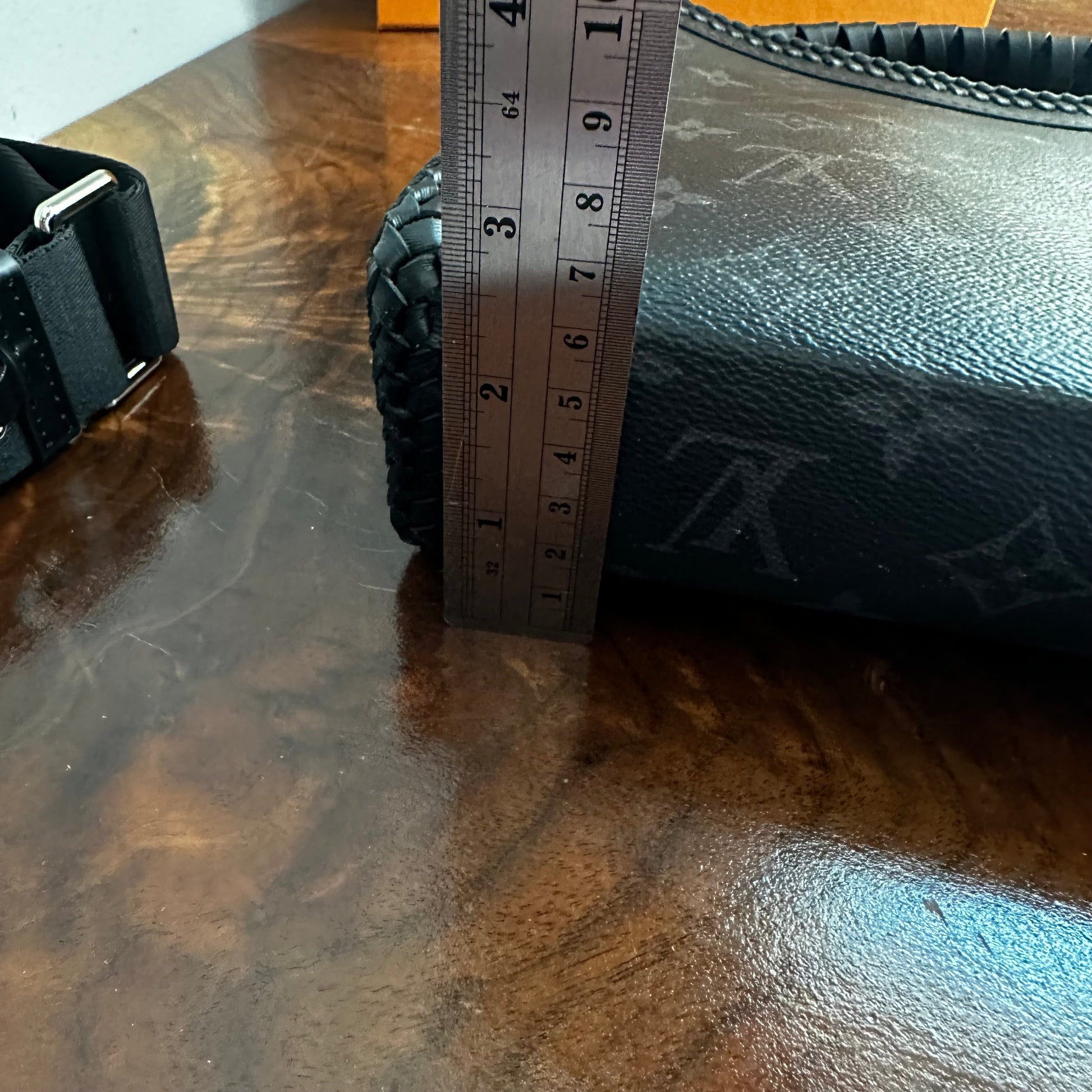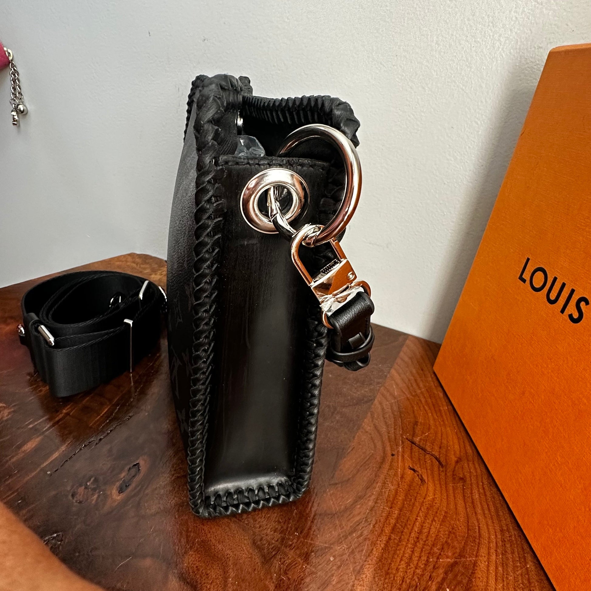 This Swan started out as an Louis Vuitton Pochette Voyage MM. In fact, this bag is still being sold in the men's line and lists for over $1K. This style is one of my FAVES!!! This one is the perfect handbag or crossbody, holding LOTS of things, and comes in at 10.2 x 7.9 x 2"