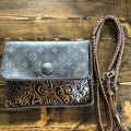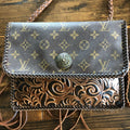 The Warbler Crossbody/Clutch in Monogram with Tooled Leather
