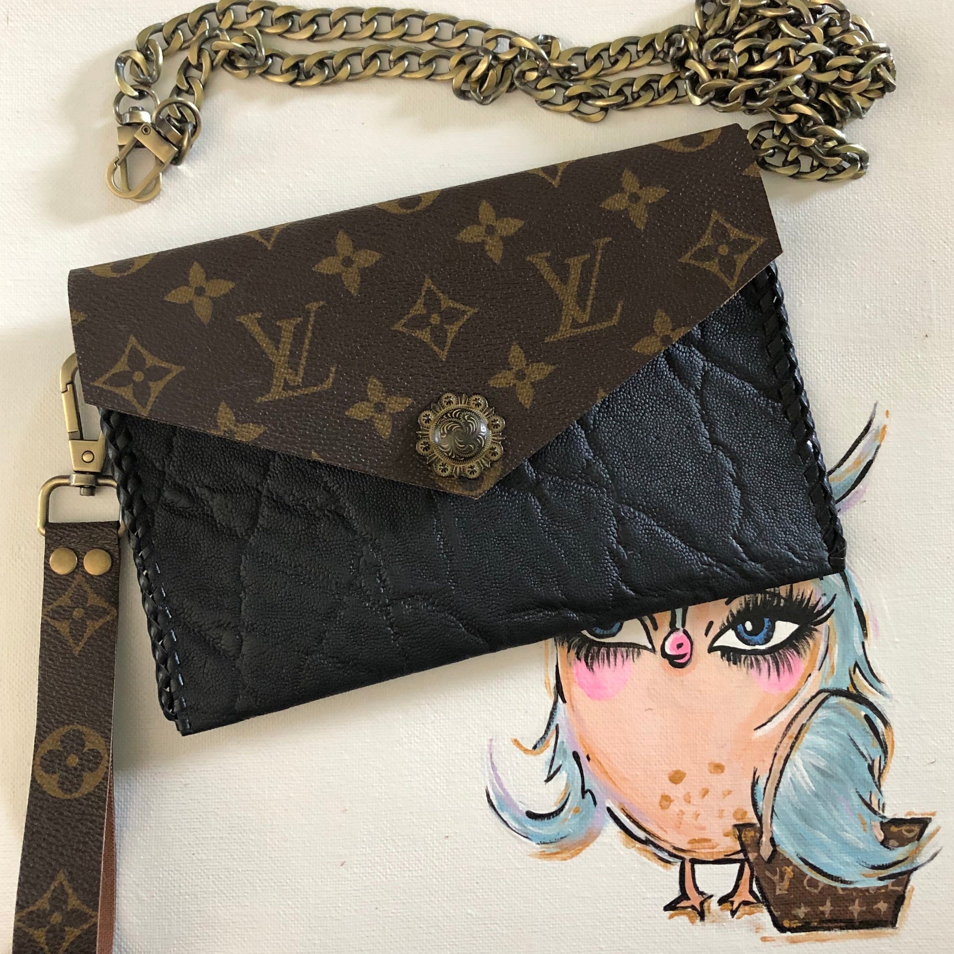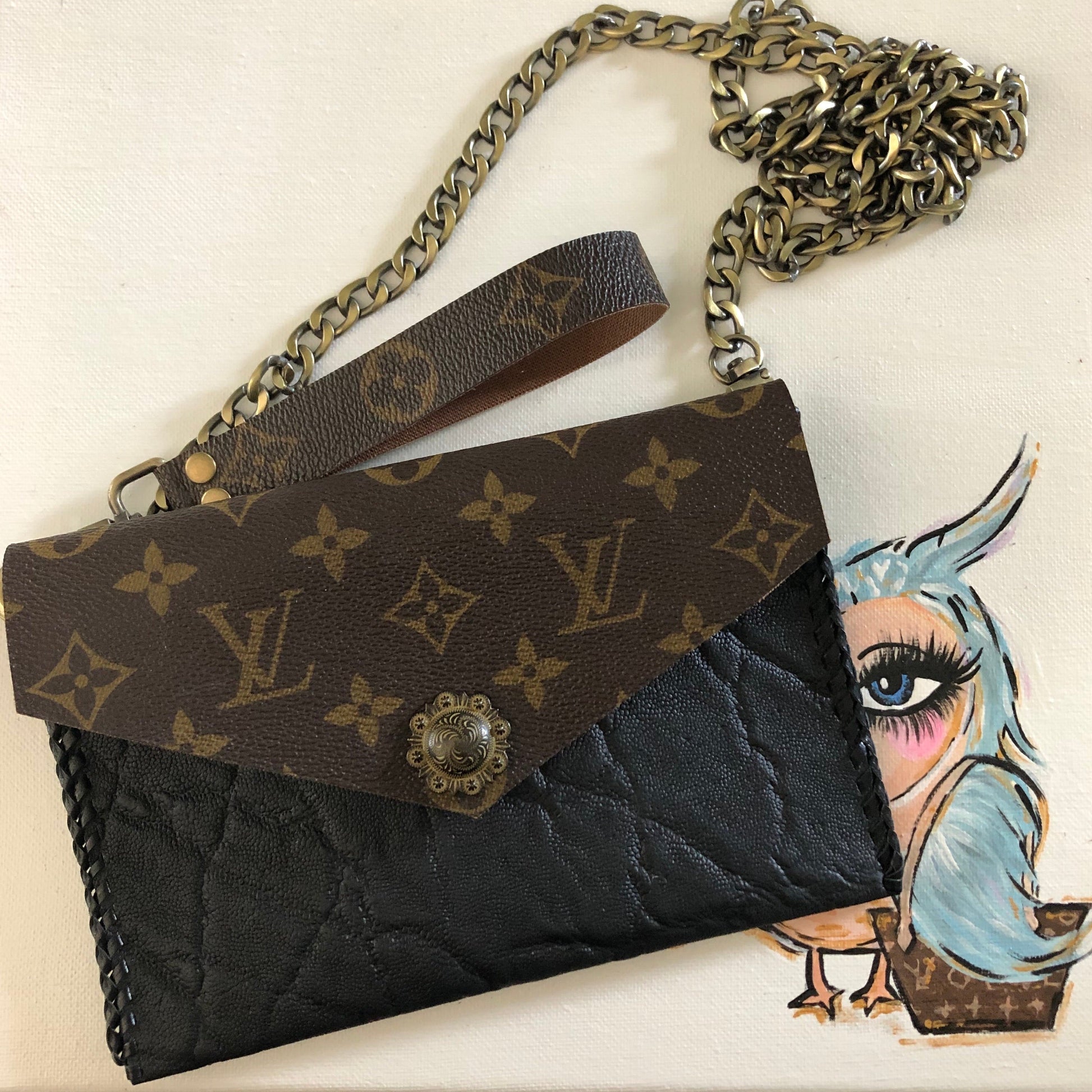 Another beautiful Wren!!! This one has the LV pattern up front with some edgy rivets on the back. It's the best little wristlet/crossbody bag for when you're on-the-go! It’ll fit your cell phone, keys, credit cards, and even a lipstick!