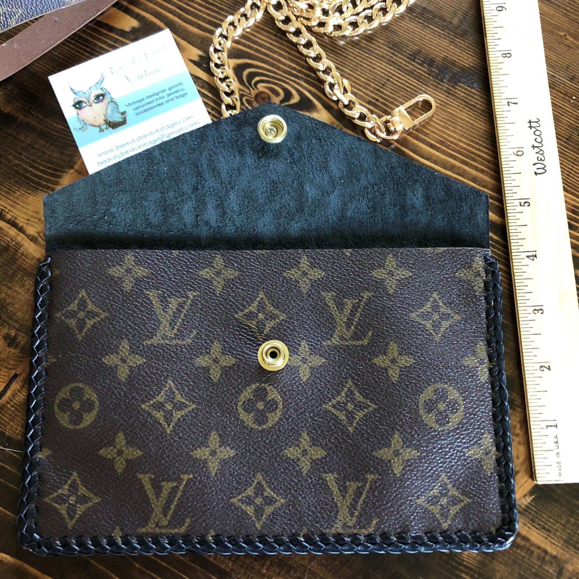 The Wren measures is 8”x 5”. The Louis Vuitton canvas is backed in foam, making this quite the substantial piece!