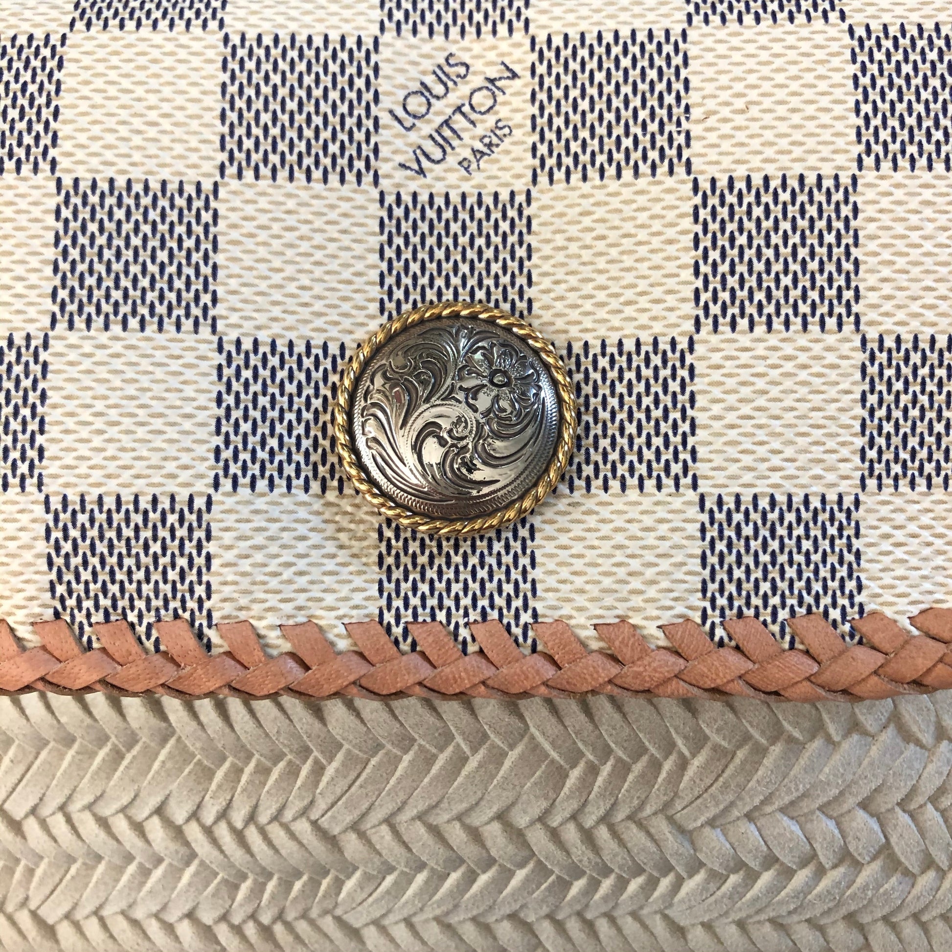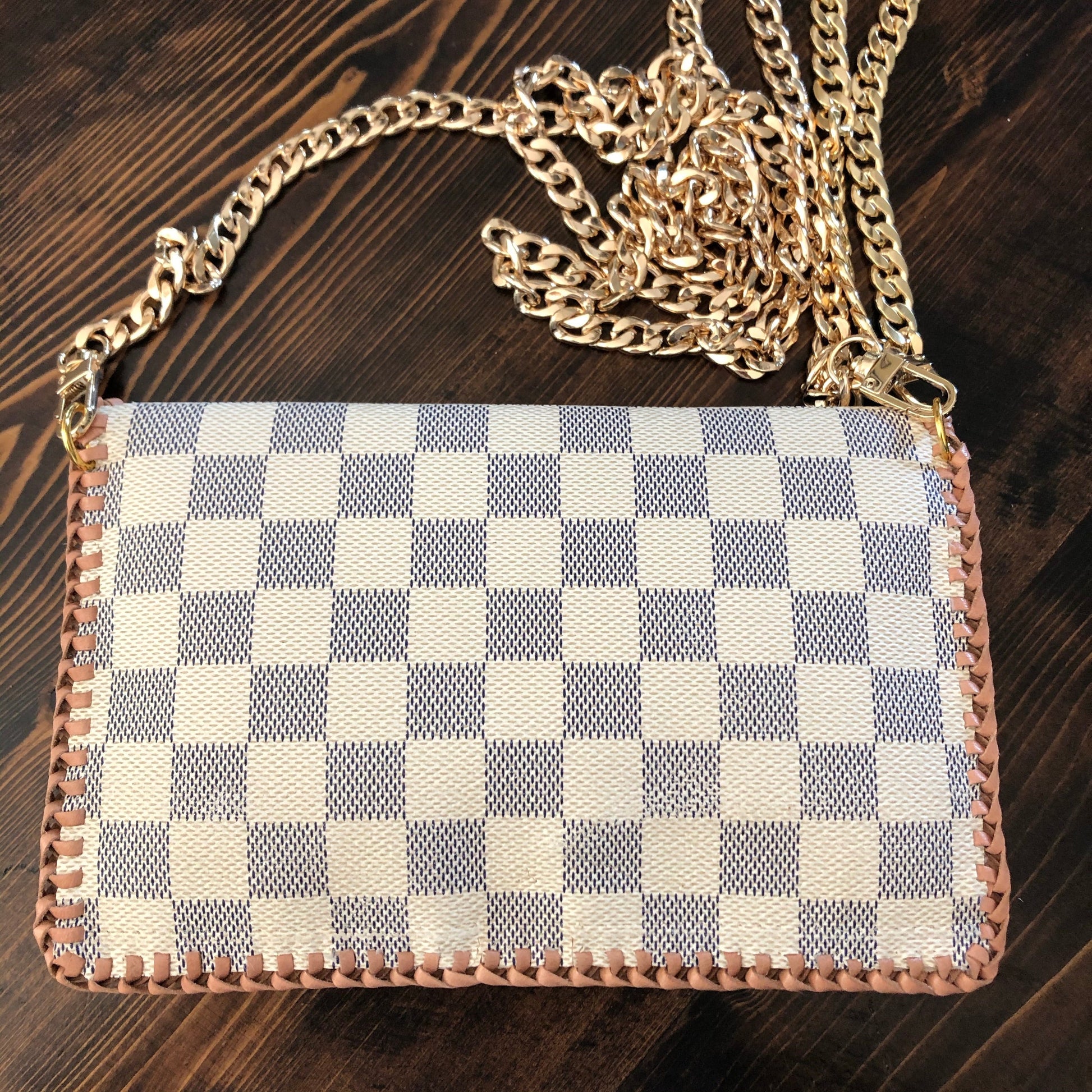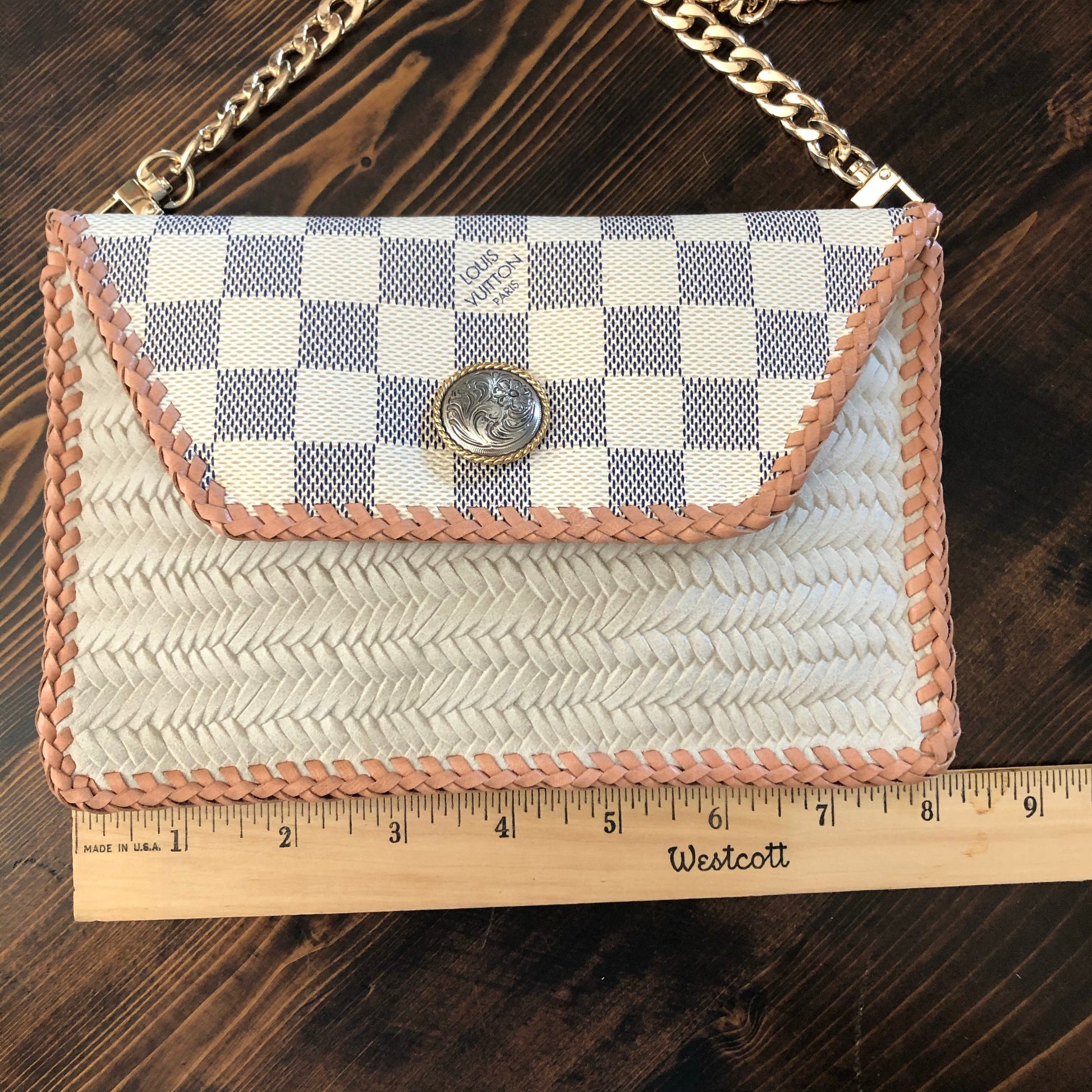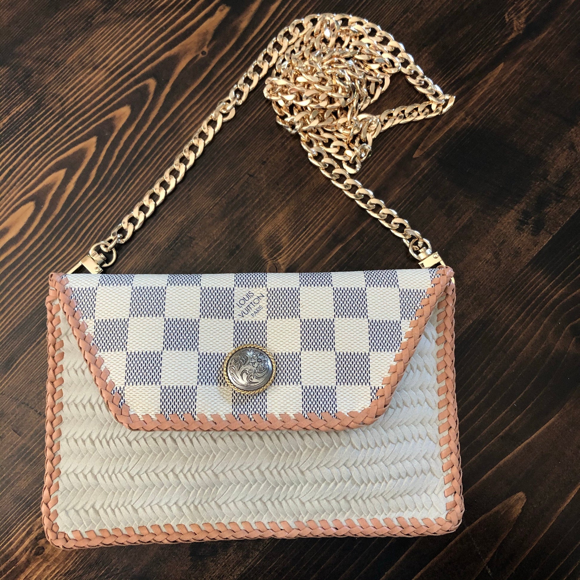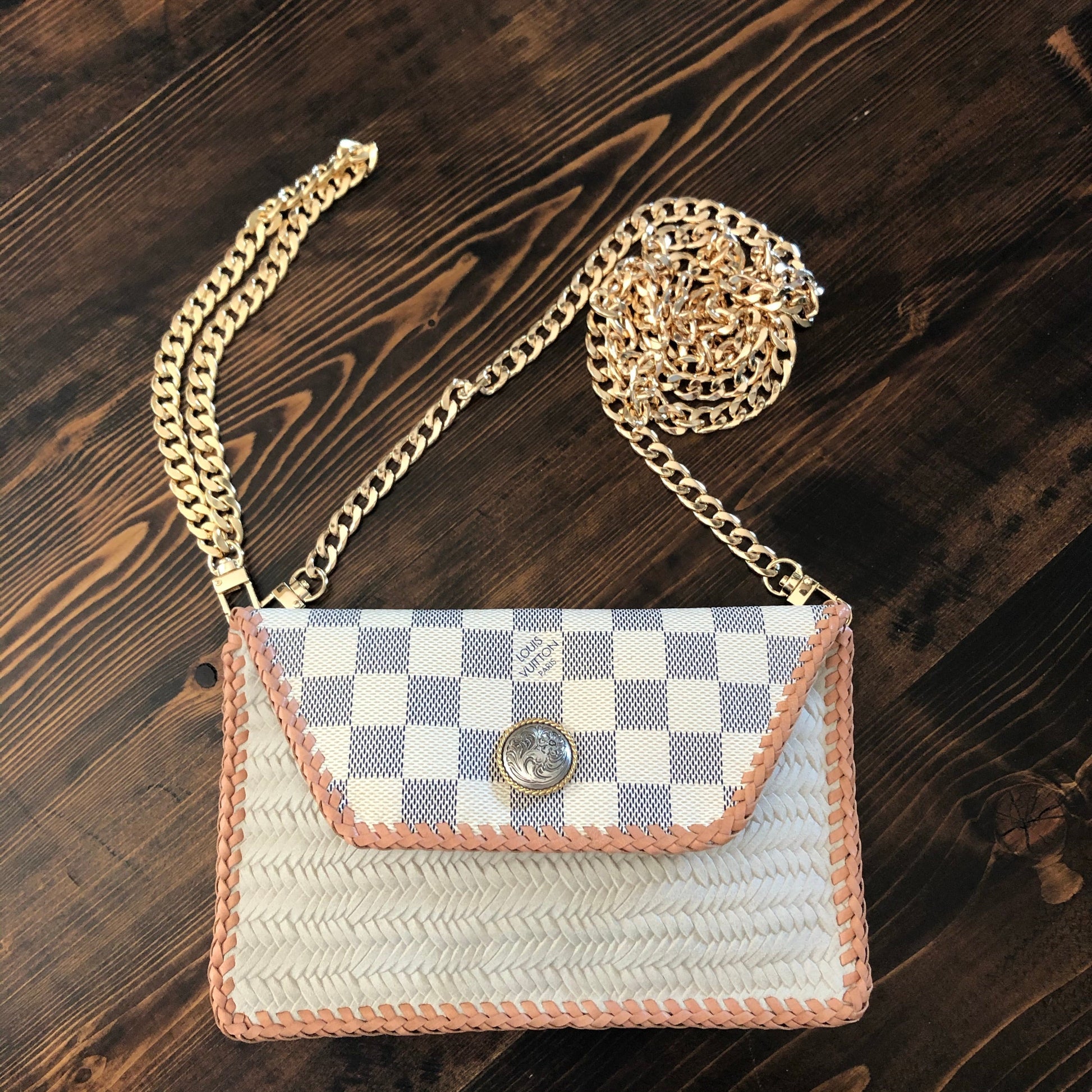 This cream Damier Azur bag is my dream bag, and it goes with everything! In fact, the first one I made I had to keep for myself! Damier Azur is a much more coveted pattern and costs more $$ to source! But, as always, it's created from an LV bag, and this one is a stunner!!!