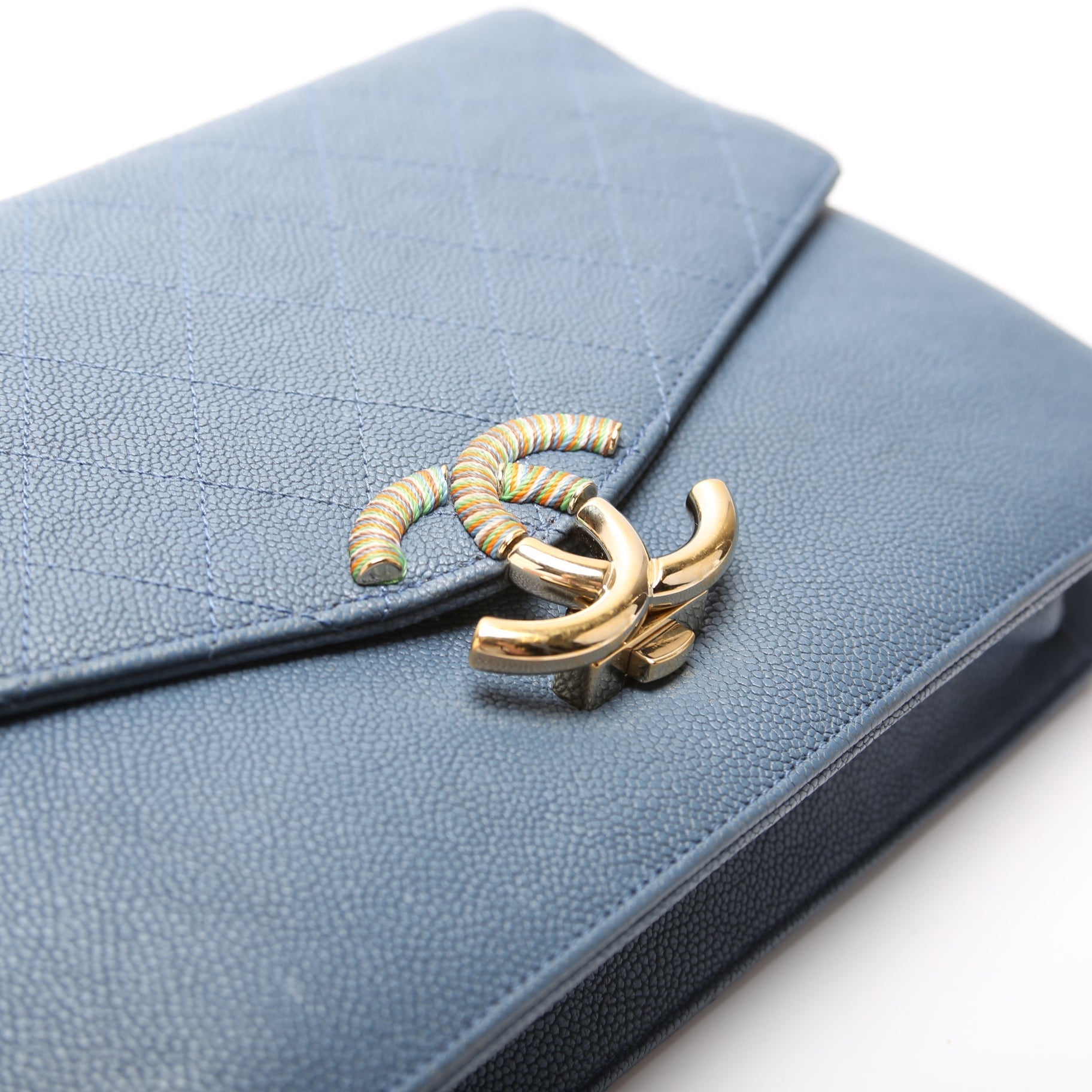 This Chanel Thread Around Chain Flap Bag Medium Caviar 23Mis eye catching bag.
