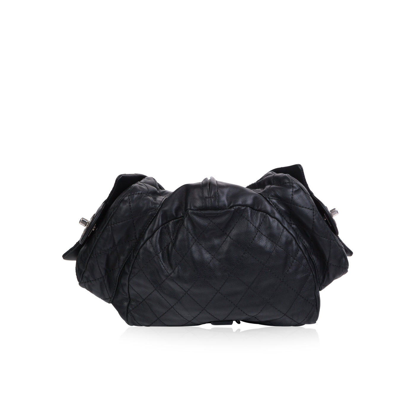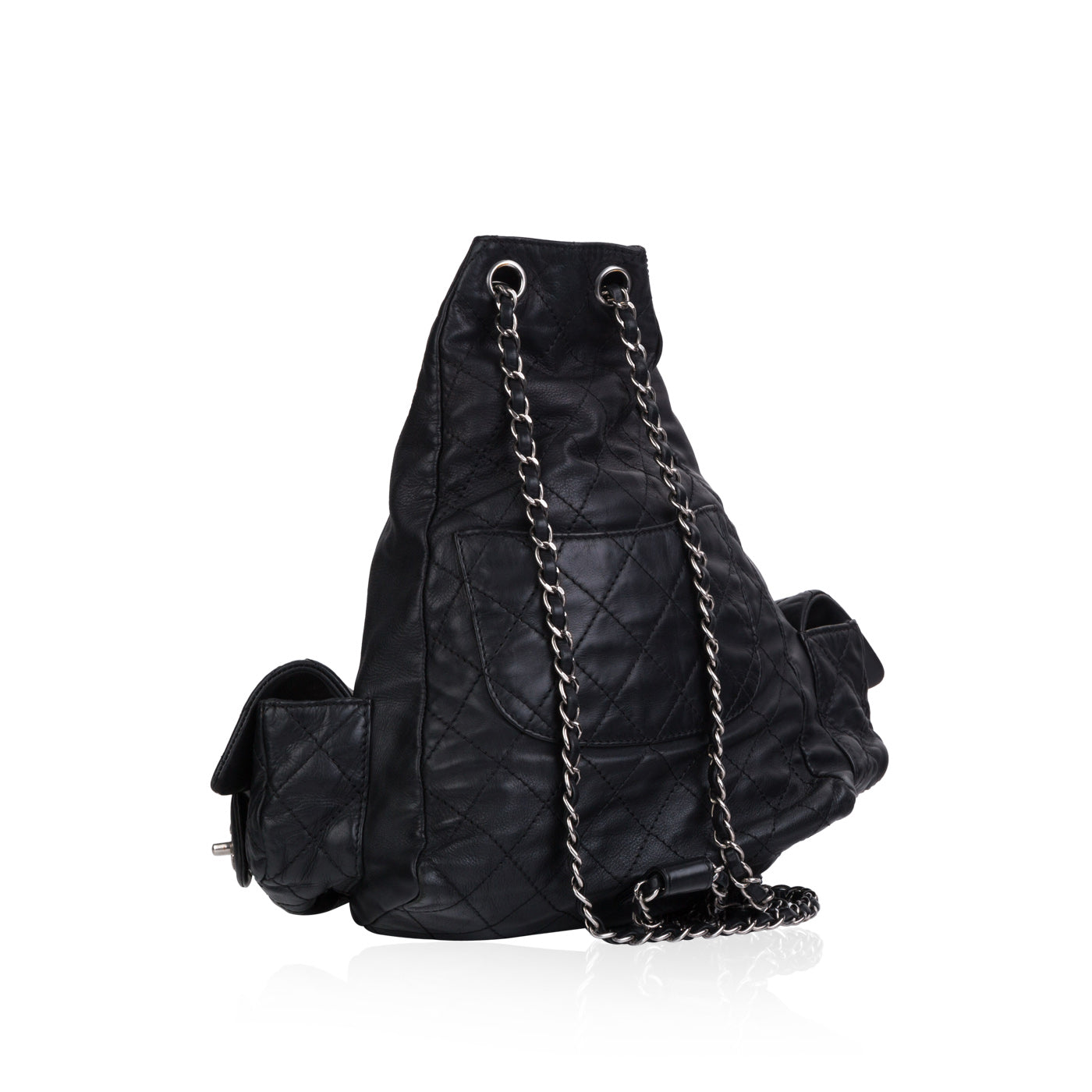 The Timeless Backpack is perfect for travelling. In fact, it comes with a special compass embellishment on the zip with the Chanel logo at the centre for you to navigate your way through life. The calfskin leather is ultra soft and smooth. It also comes with two exterior side pockets that are detailed with diamond shaped quilting - these side pockets are fastened with the classic Chanel twist lock system. As well as the vertical zip opening, the backpack also incorporates a leather and metal intertwined cord – another classic Chanel feature. The clinch cord opening releases to expose the black cotton interior. Explore with the Timeless Backpack with a pair of trainers, your sunglasses and your phone for map reading.