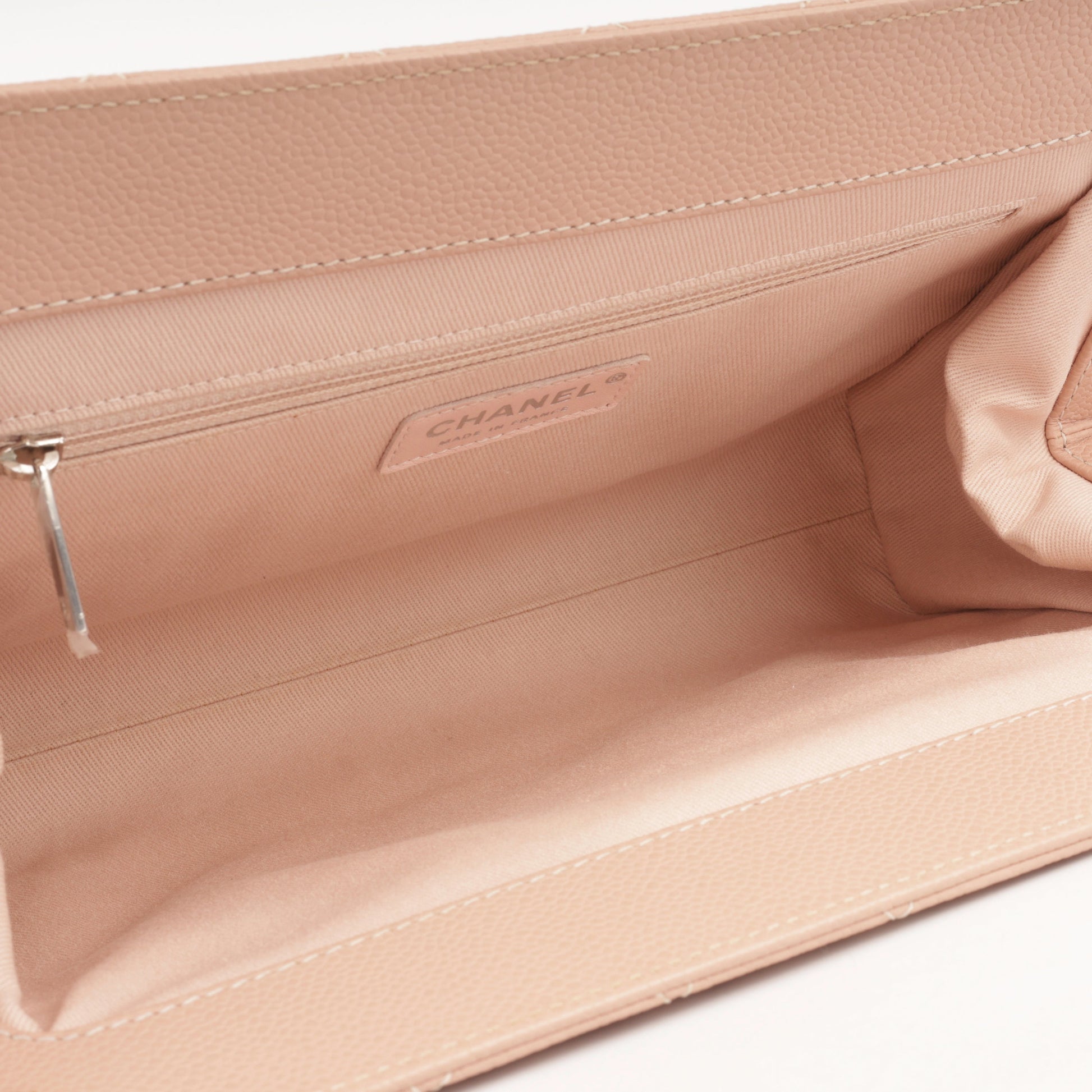 Experience elegance with the Chanel Timeless Clutch in pink. Made from durable, quilted pink caviar leather with contrasting white stitching, this clutch combines luxury and style.Perfect for day and night, the Timeless Clutch features a spacious interior for your essentials and the classic Chanel CC logo on the front flap.Whether for a glamorous evening or a stylish day out, the Chanel Timeless Clutch in pink is your perfect accessory for a touch of sophistication.