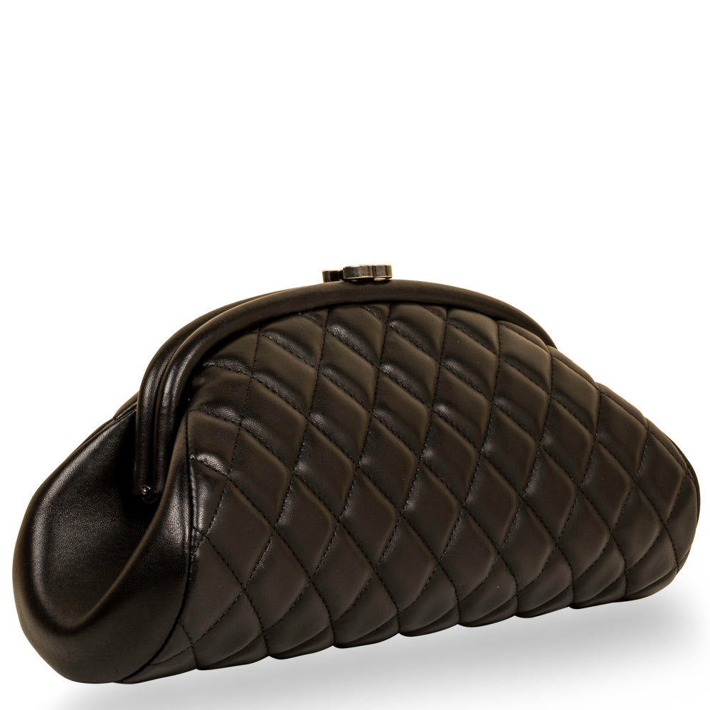 Carefully crafted from black quilted lambskin leather, this timeless clutch from Chanel is one you'll have forever. A classic evening bag you can wear with absolutely any smart to dressy look in your wardrobe, this Chanel clutch is your ultimate go-to for formal events. Apart from the brand's signature CC logo clasp at the top of the bag, this piece depicts no other brand indication. Exuding a true "if you know, you know" aesthetic, this stunning clutch is understated, glamorous and the true definition of luxurious. A bag that will stay in style and in your wardrobe for life, this Chanel quilted clutch is a true must-have.