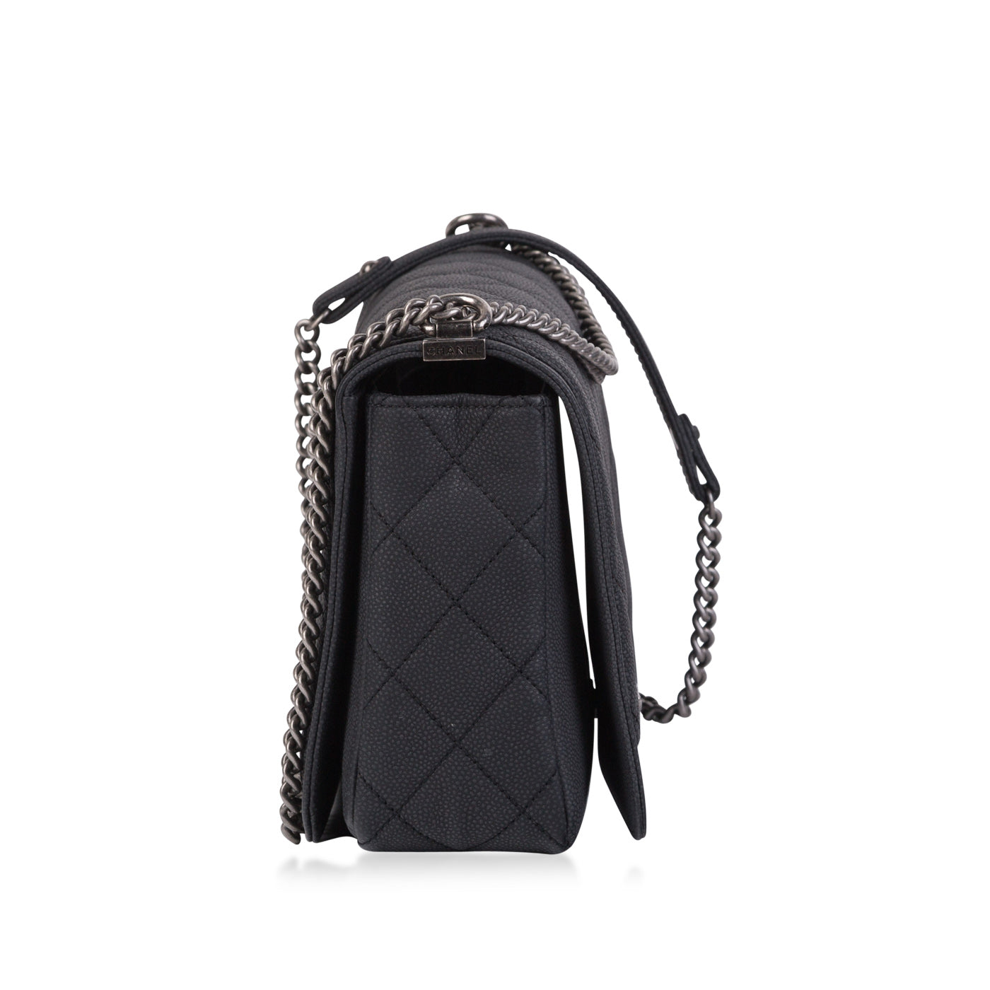 A Chanel bag - the bag of all bags and every woman's dream right? This gorgeous piece is carefully crafted in a matte pebbled leather, and is the perfect option for any woman with a love for luxury. With its charcoal hue, ruthenium hardware, and simple yet sophisticated appearance, this bag offers the best of both worlds by complimenting any outfit from day-to-night. Featuring a spacious interior compartment, a large, inside back pocket, and three additional interior pockets, you can carry all your every day essentials in style. The elegance of a Chanel bag is timeless, so you can confidently know that no matter how many years go by, your classic Chanel will always remain fashionable and classic.
