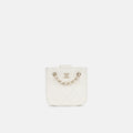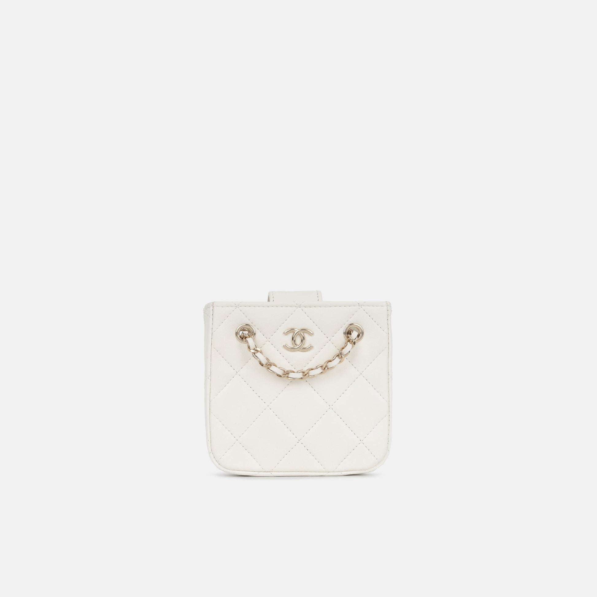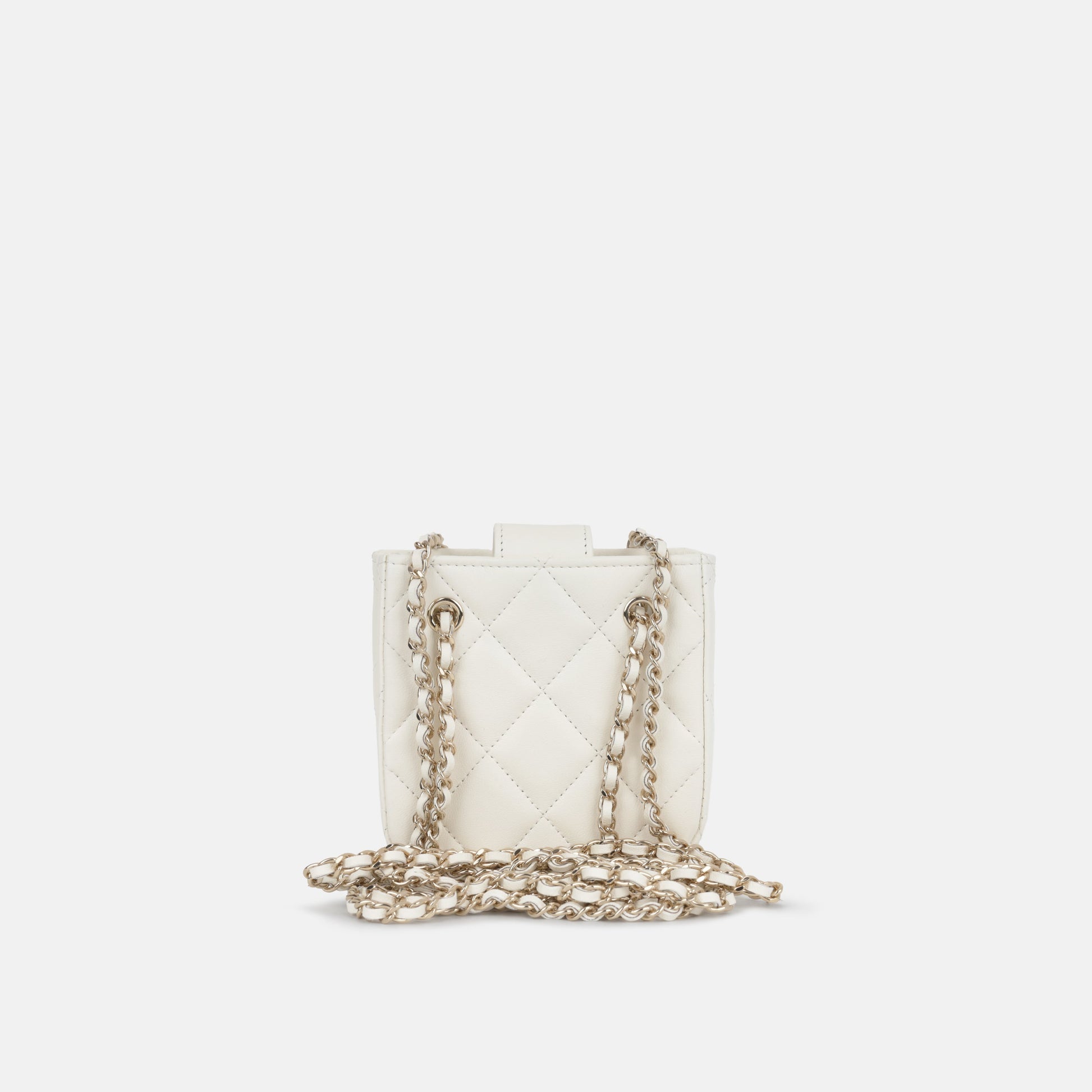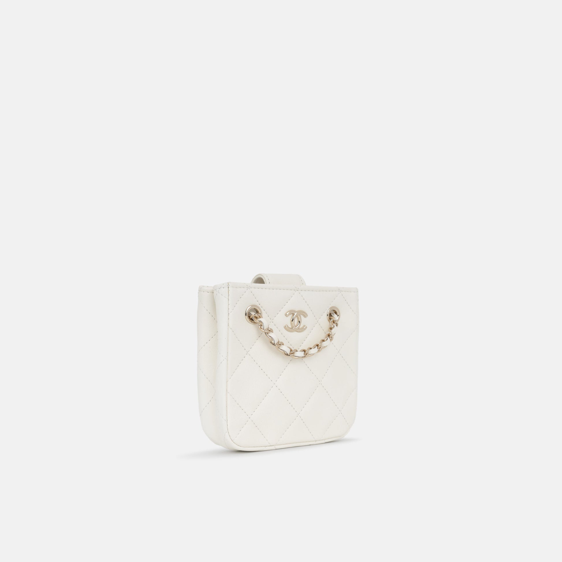 Crafted from white lambskin is the epitome of timeless elegance and practicality. Crafted from luxurious lambskin leather, this compact clutch is the perfect balance of chic and functional, making it an excellent addition to any wardrobe. The Chanel Tiny Square Clutch on Chain is the perfect accessory for those seeking a blend of luxury and functionality, whether for day-to-day wear or a night out.