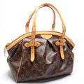 This Louis Vuitton Tivoli GMis eye catching bag. The exterior is in the classic Monogram coated canvas.