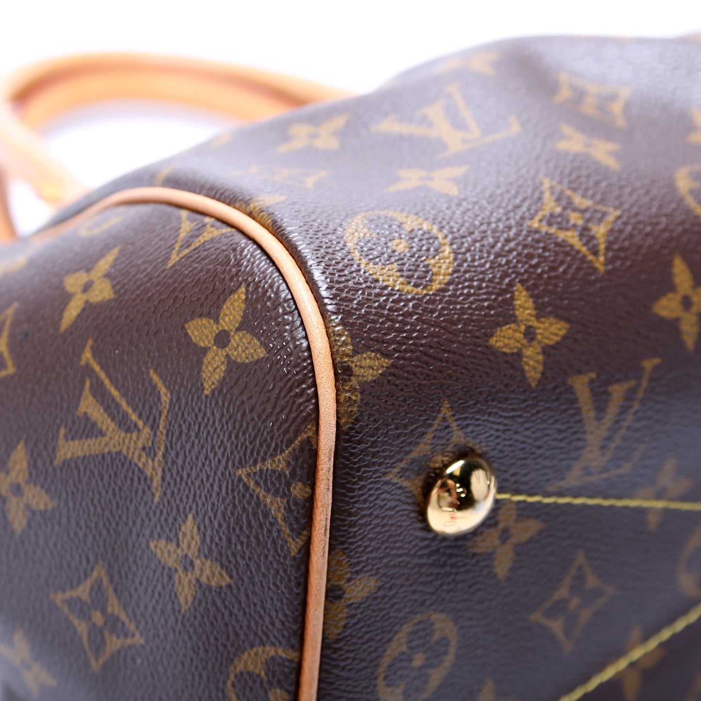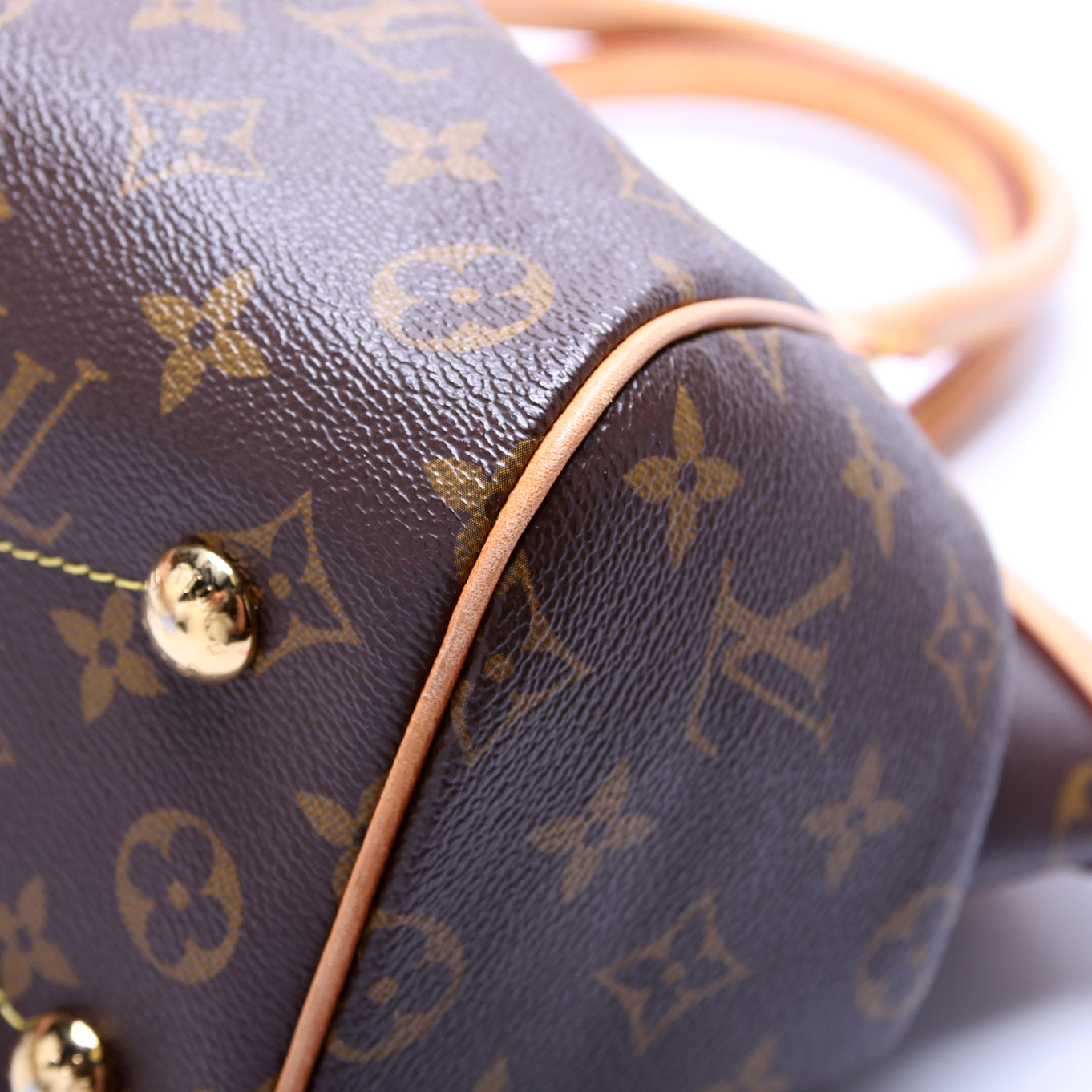This Louis Vuitton Tivoli PMis eye catching bag. The exterior is in the classic Louis Vuitton Monogram coated canvas.