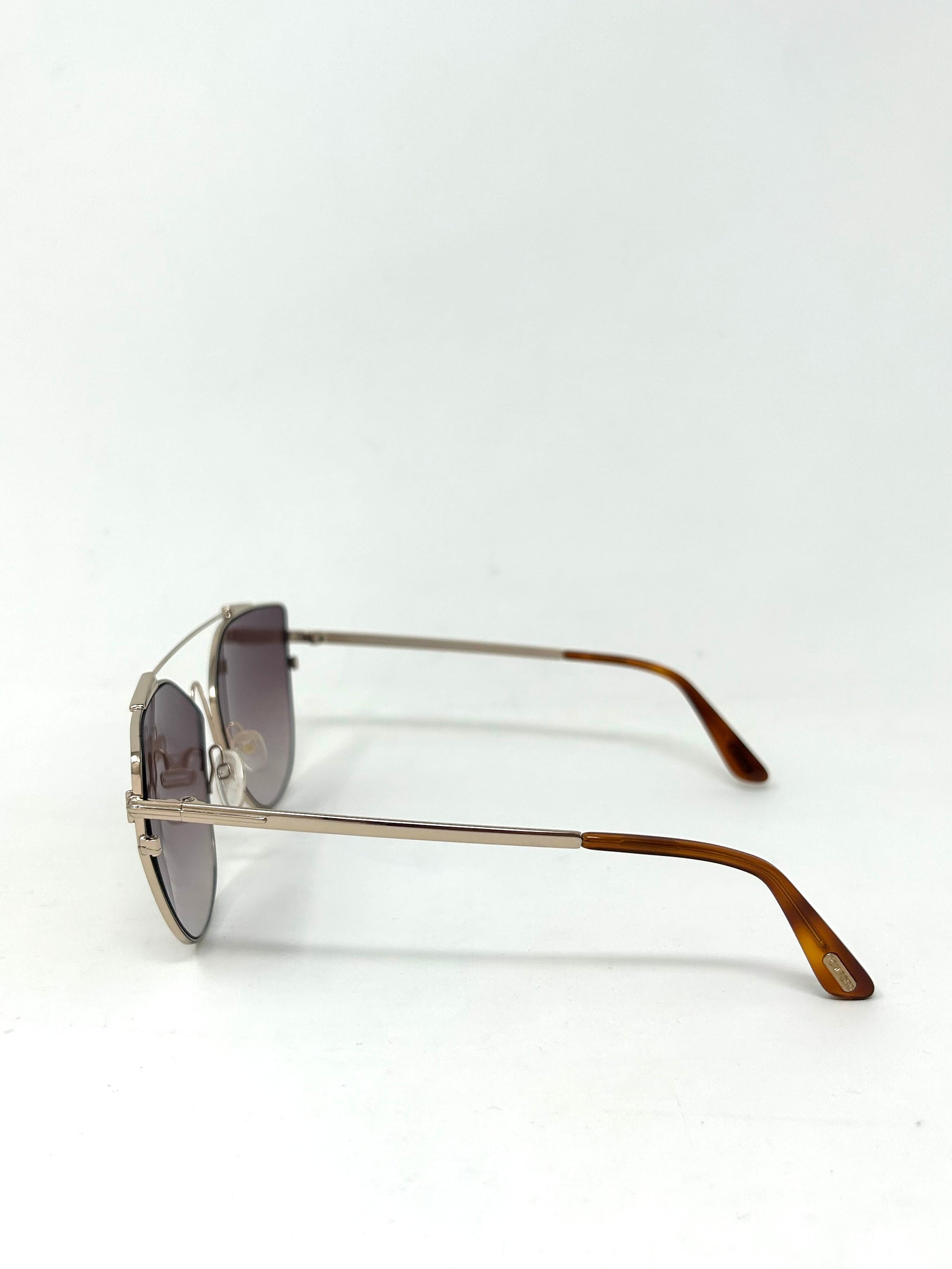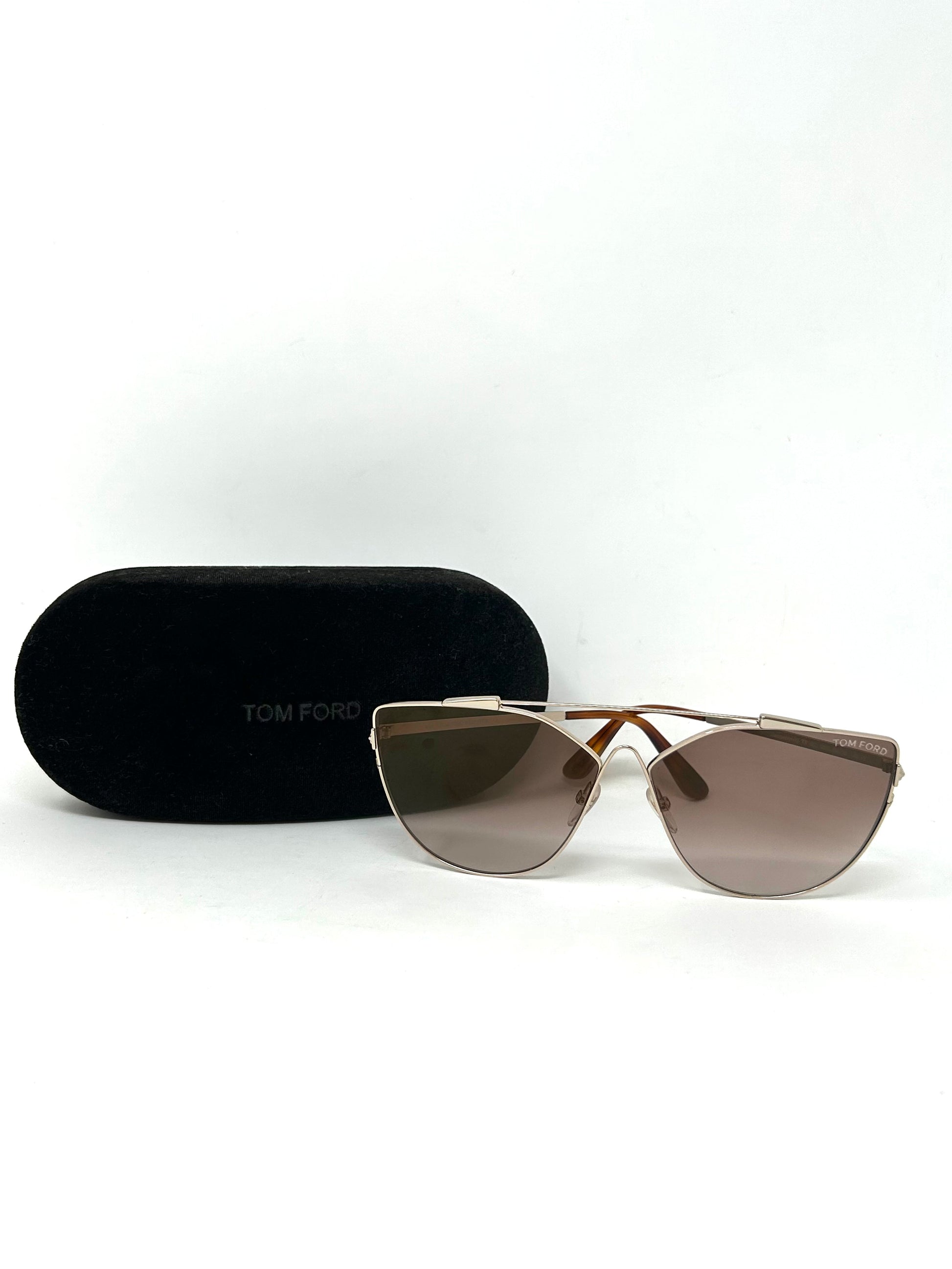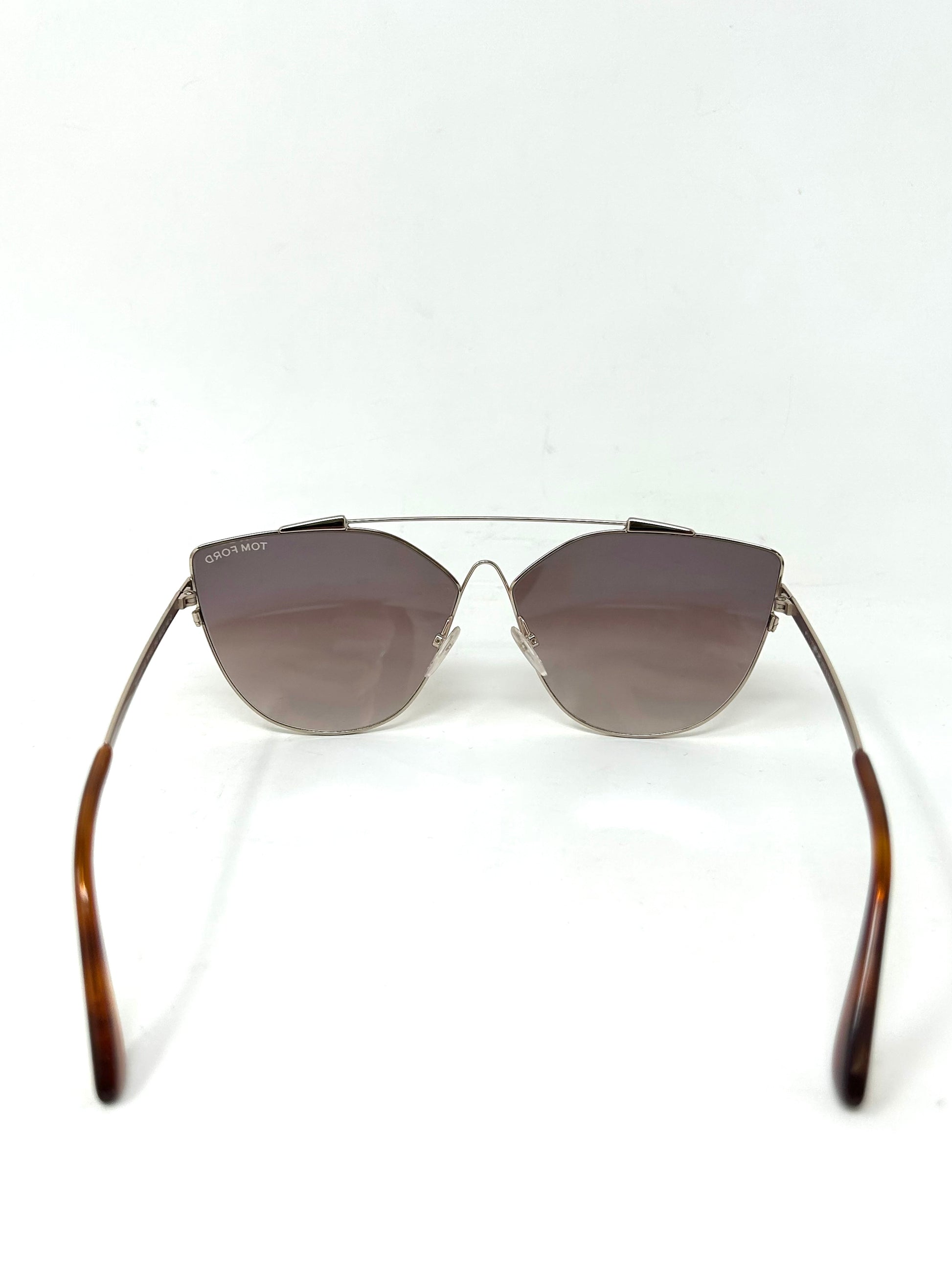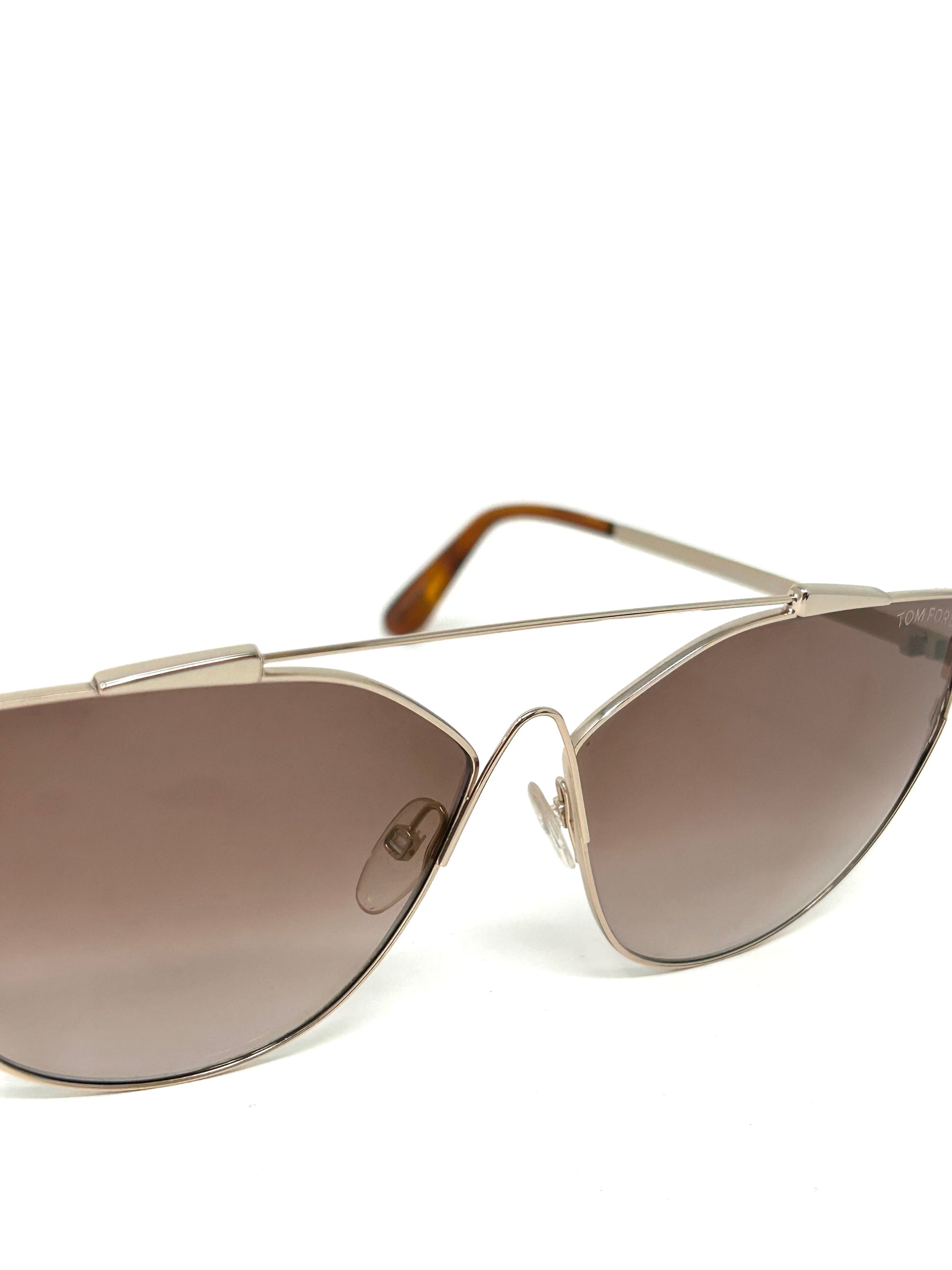 - Shiny metal cat-eye style Tom Ford sunglasses with a top bridge detail