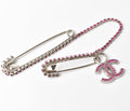 Chanel Brooch Coco Mark Rhinestone Silver Magenta