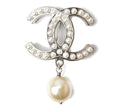 Item name : Chanel Brooch with Rhinestones and Faux Pearls, Silver