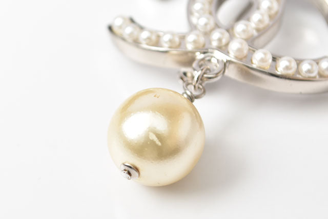 Chanel Brooch with Rhinestones and Faux Pearls, Silver