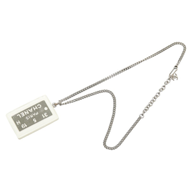 Item name : Chanel Cambon Plate Necklace White Silver Plastic Plated