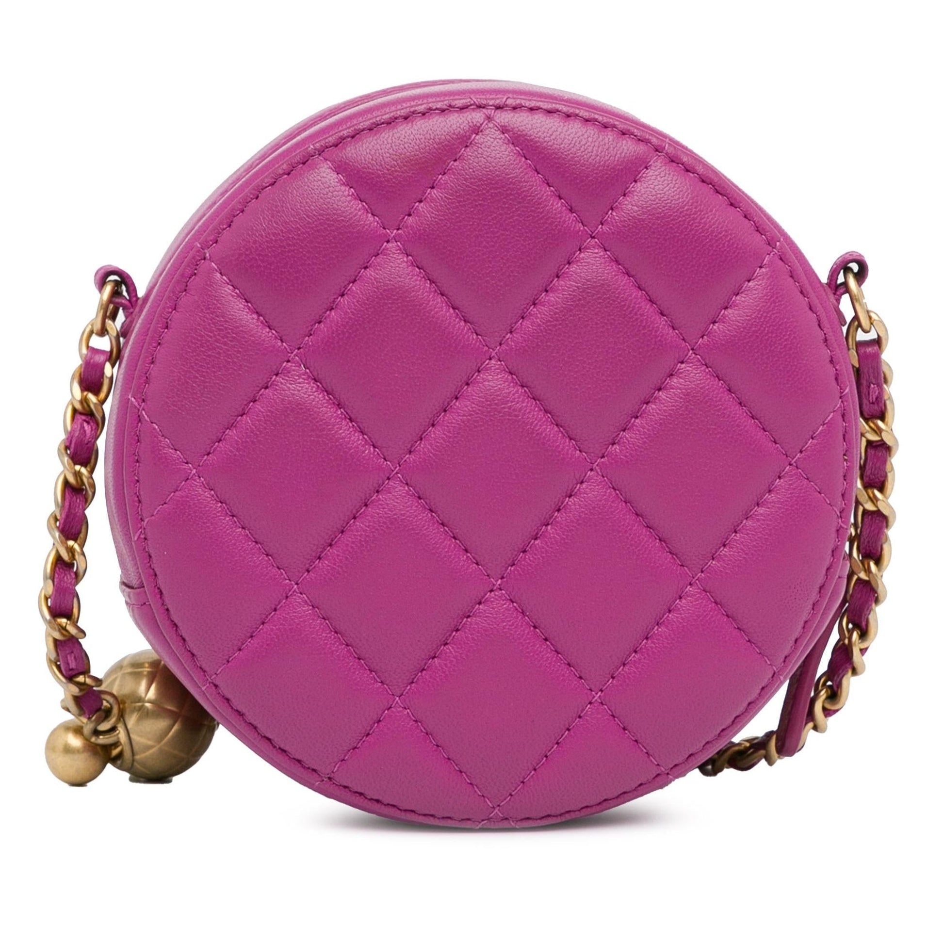 Chanel CC Quilted Lambskin Pearl Crush Round Clutch with Chain (SHG-y8BBxN)