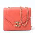 Chanel Chevron Leather Chain Shoulder Bag Red