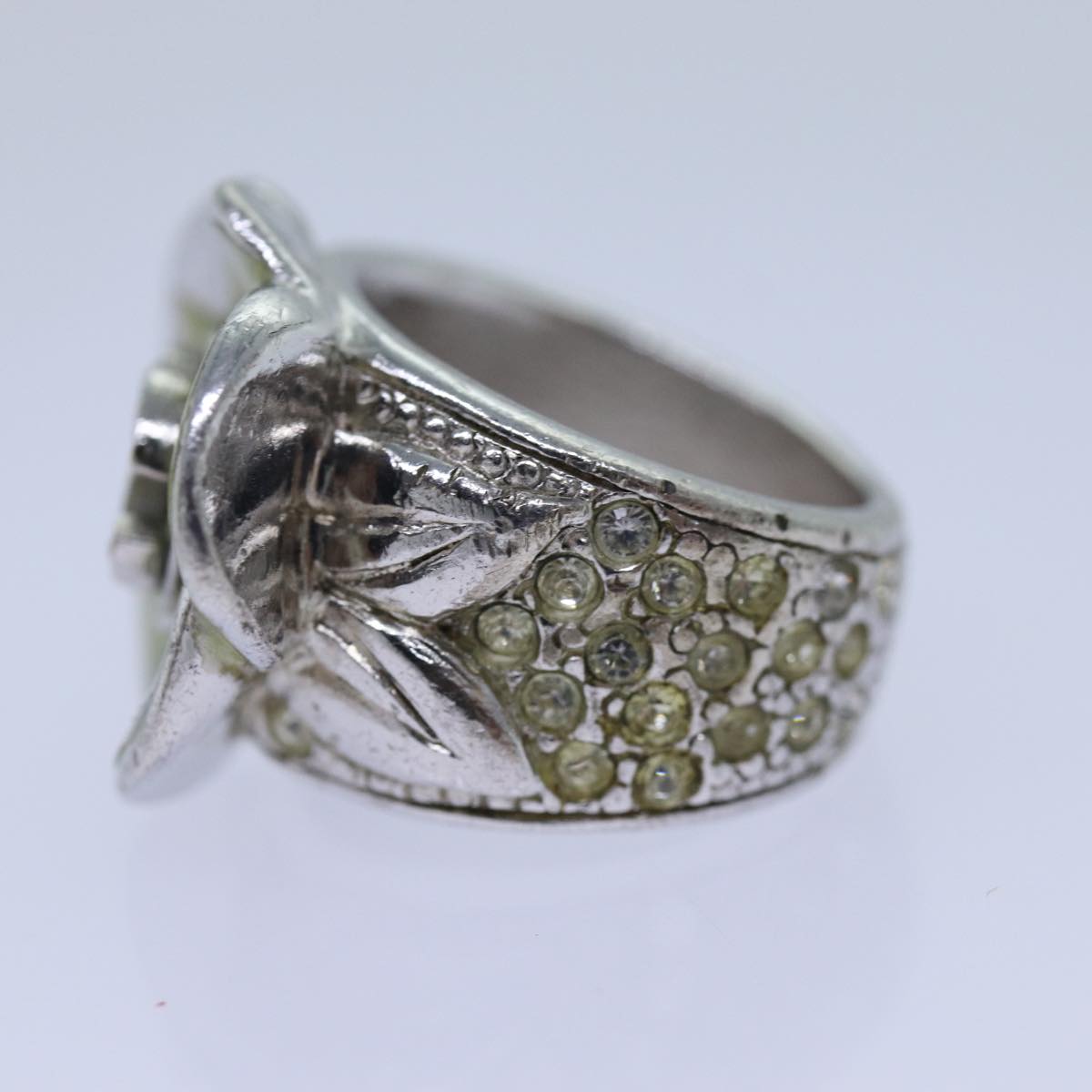 CHANEL COCO Mark Ring metal Silver CC Auth bs13494