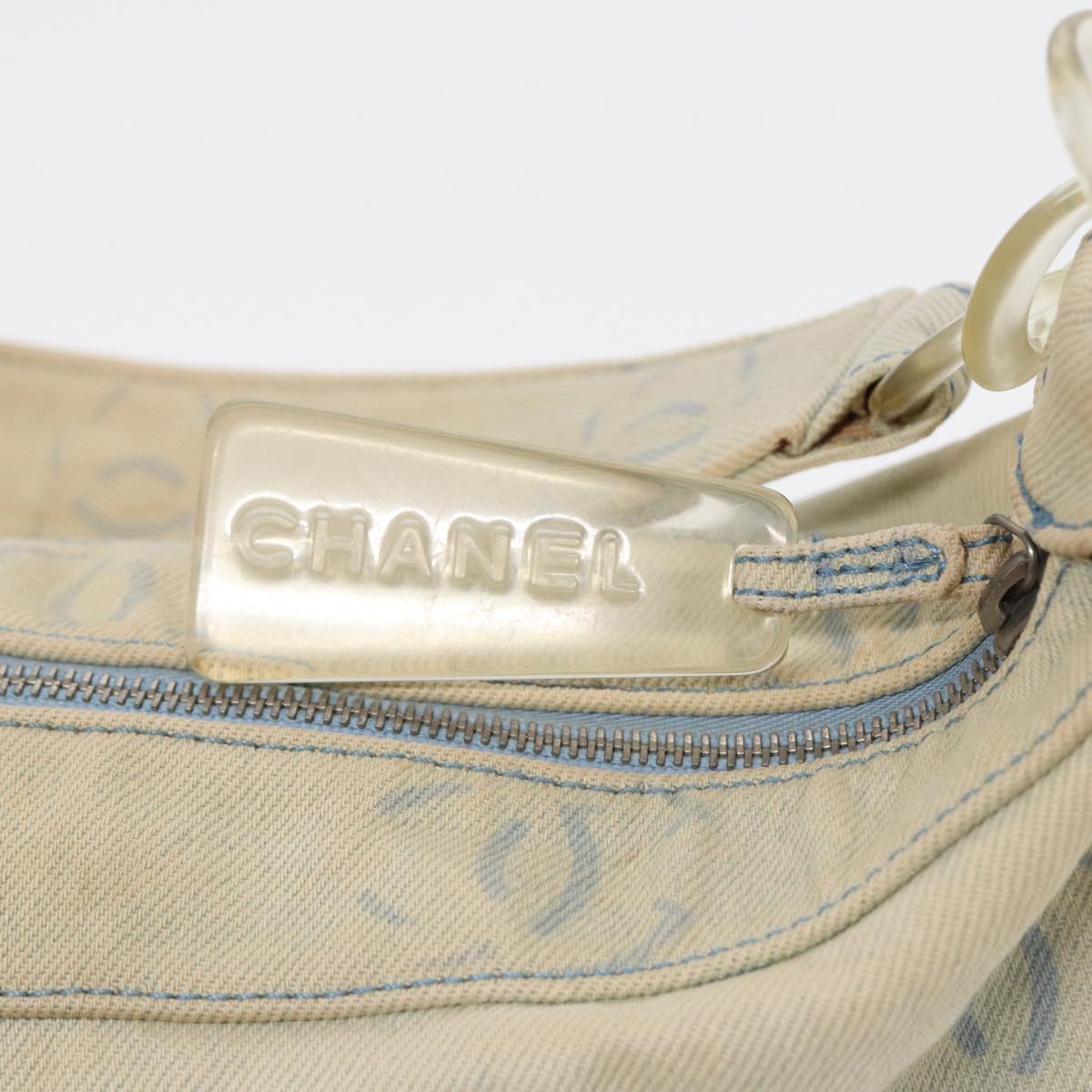 CHANEL COCO Mark Shoulder Bag Canvas Blue CC Auth yk14079