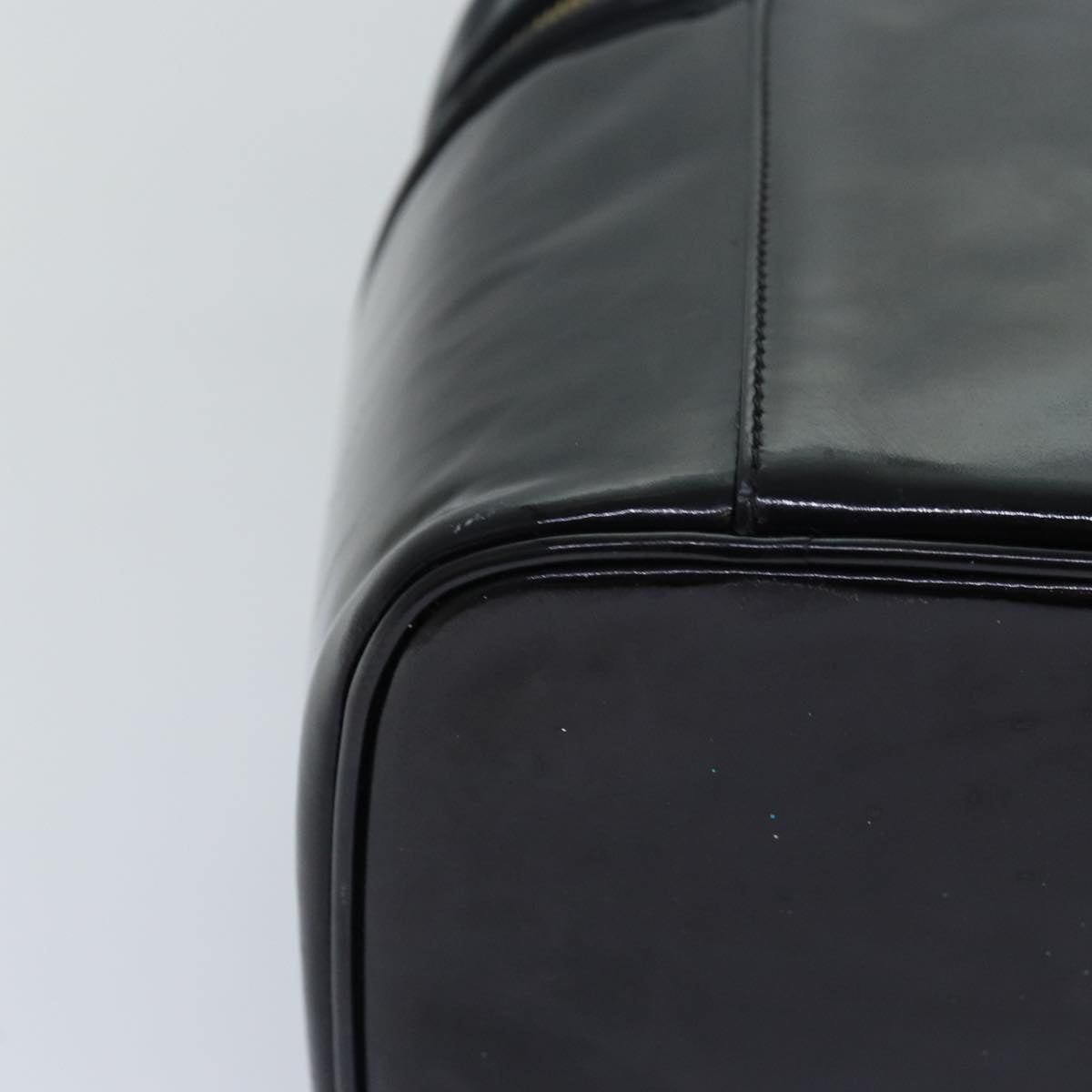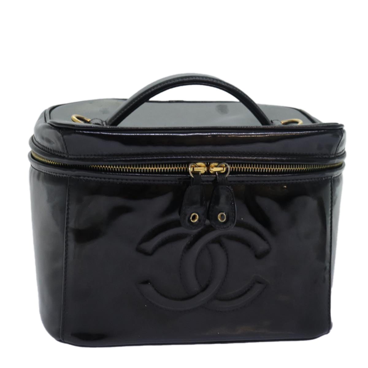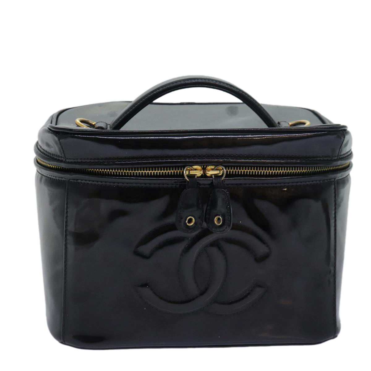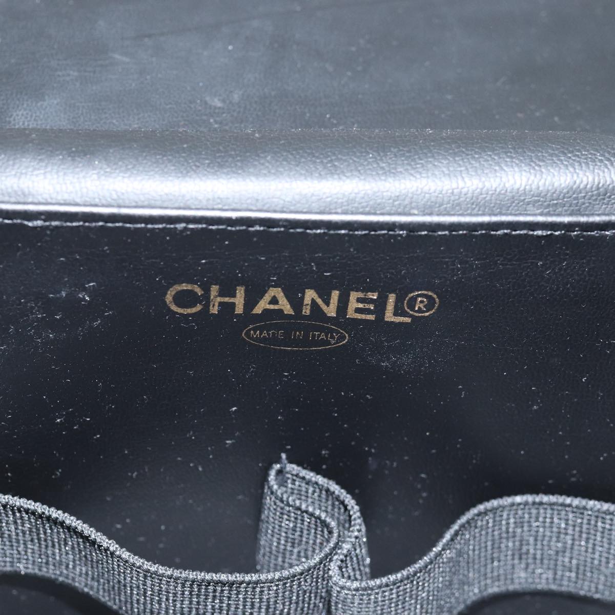 CHANEL COCO Mark Vanity Cosmetic Pouch Enamel Black CC Auth 79536