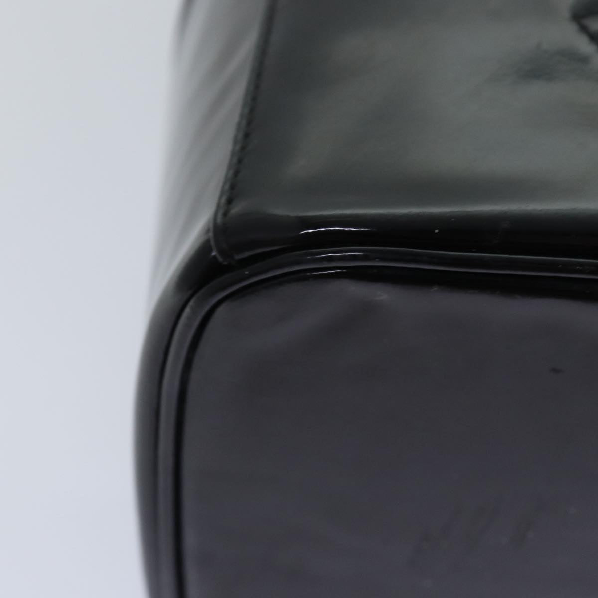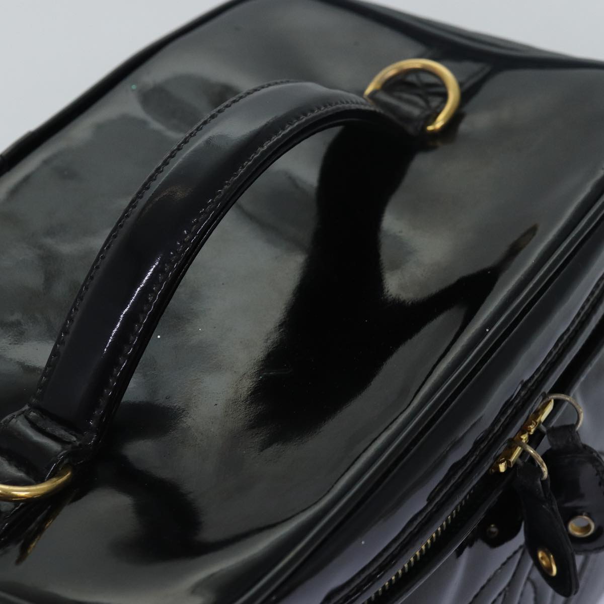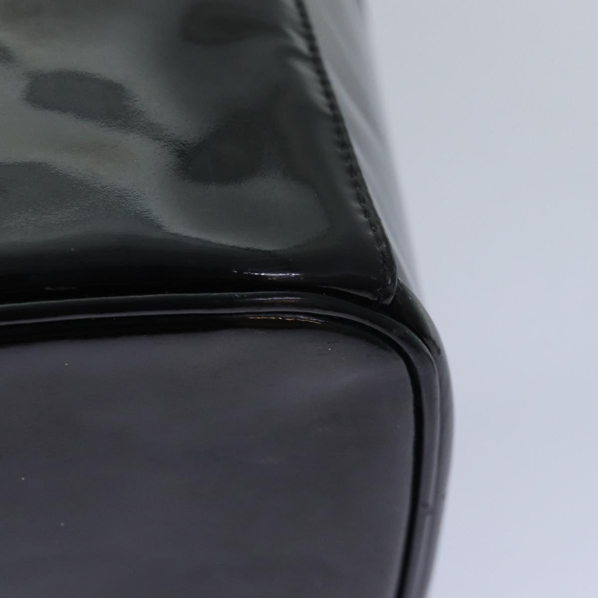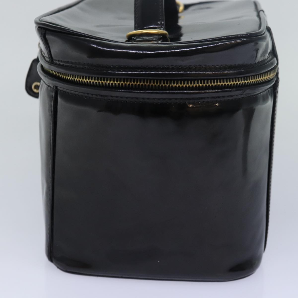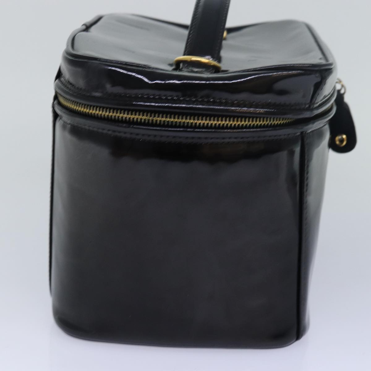 CHANEL COCO Mark Vanity Cosmetic Pouch Enamel Black CC Auth 79536
