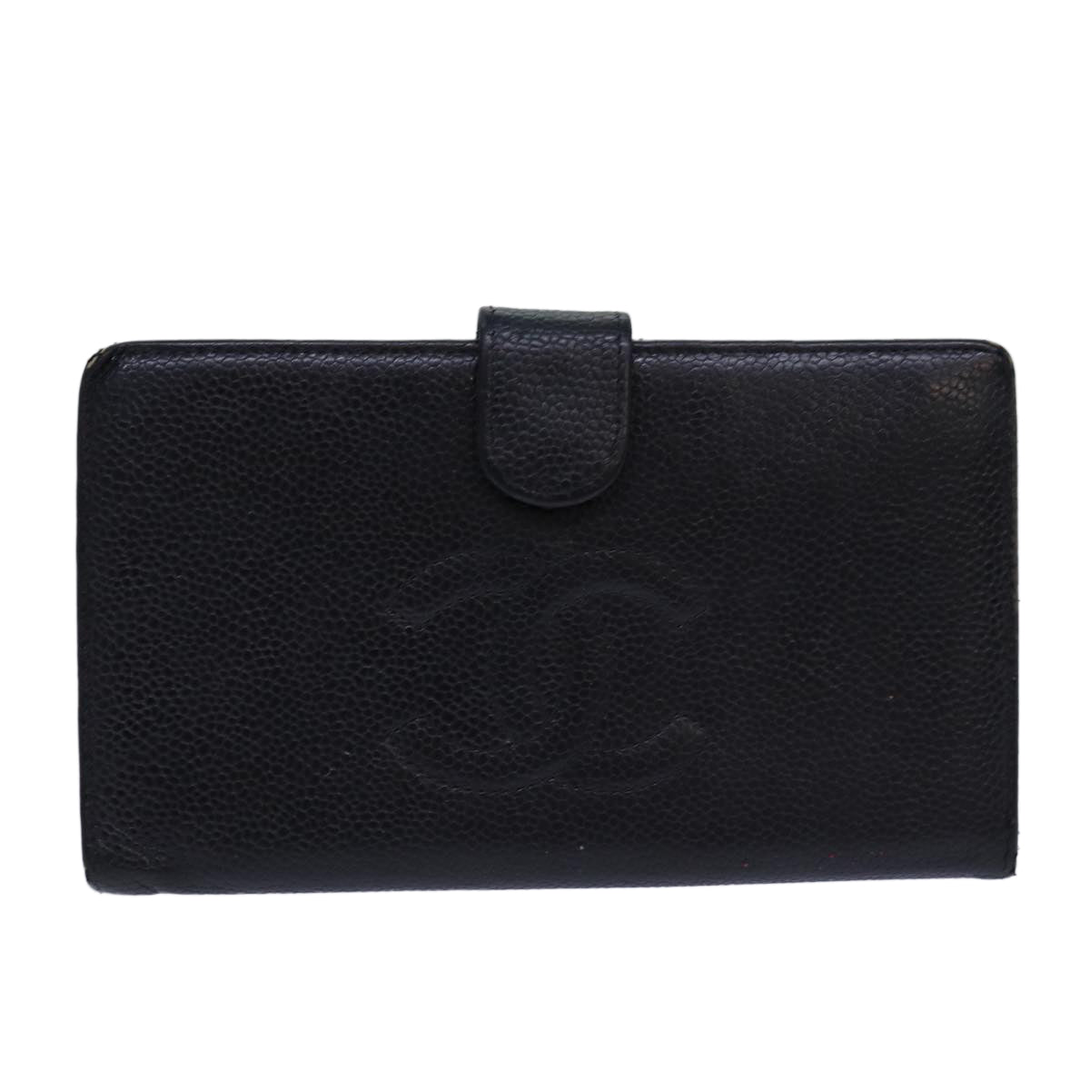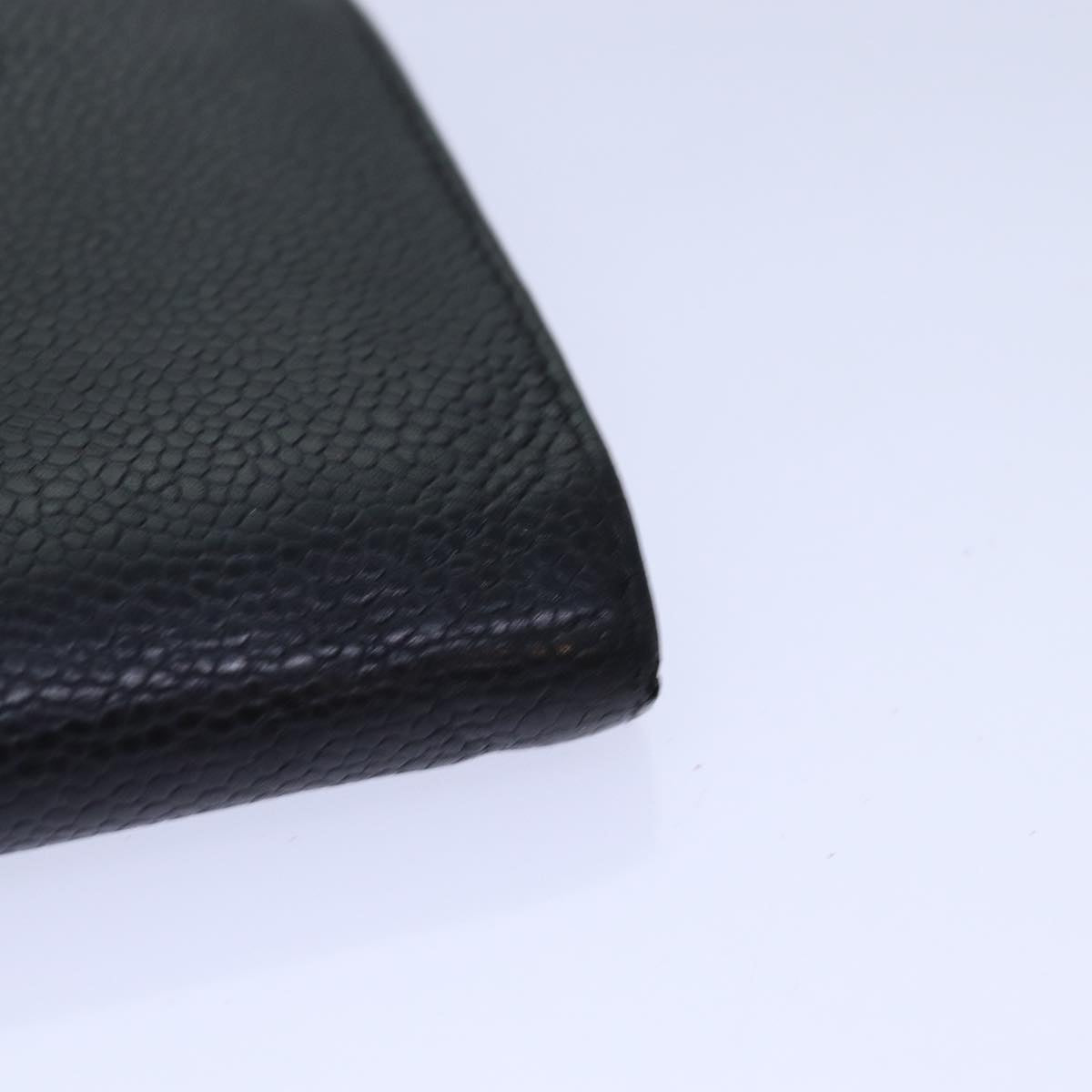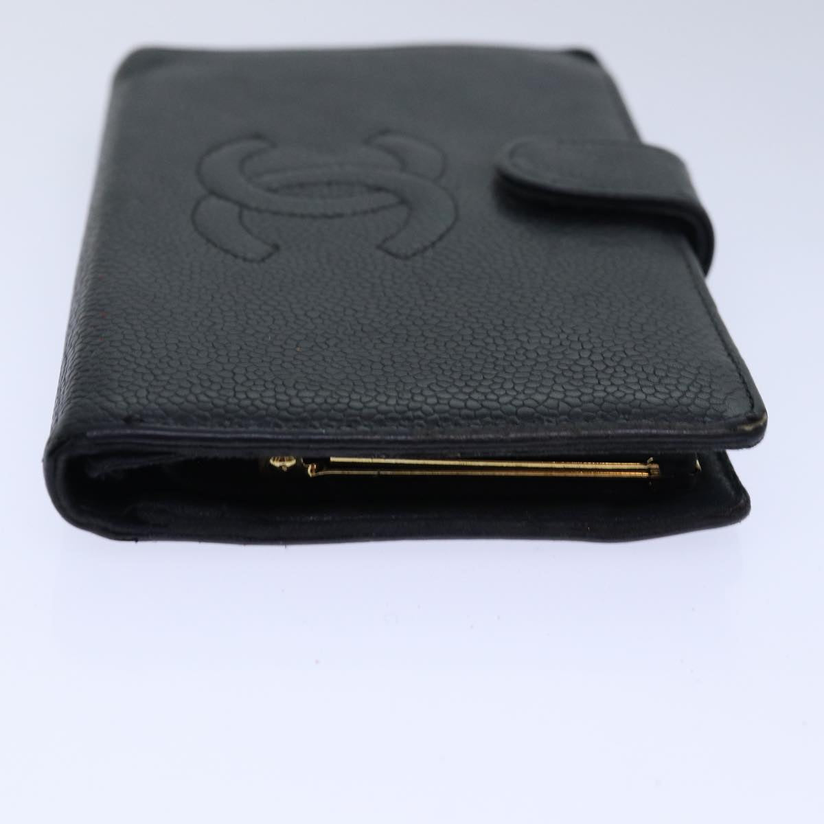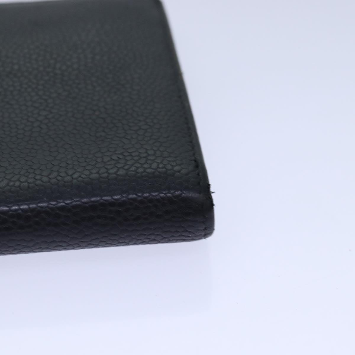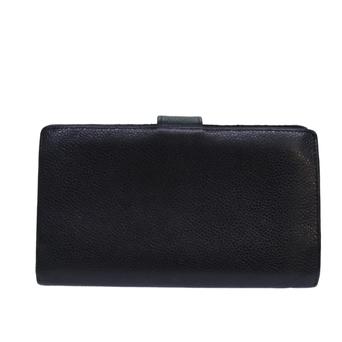 CHANEL COCO Mark Wallet Caviar Skin Black Gold CC Auth bs16761