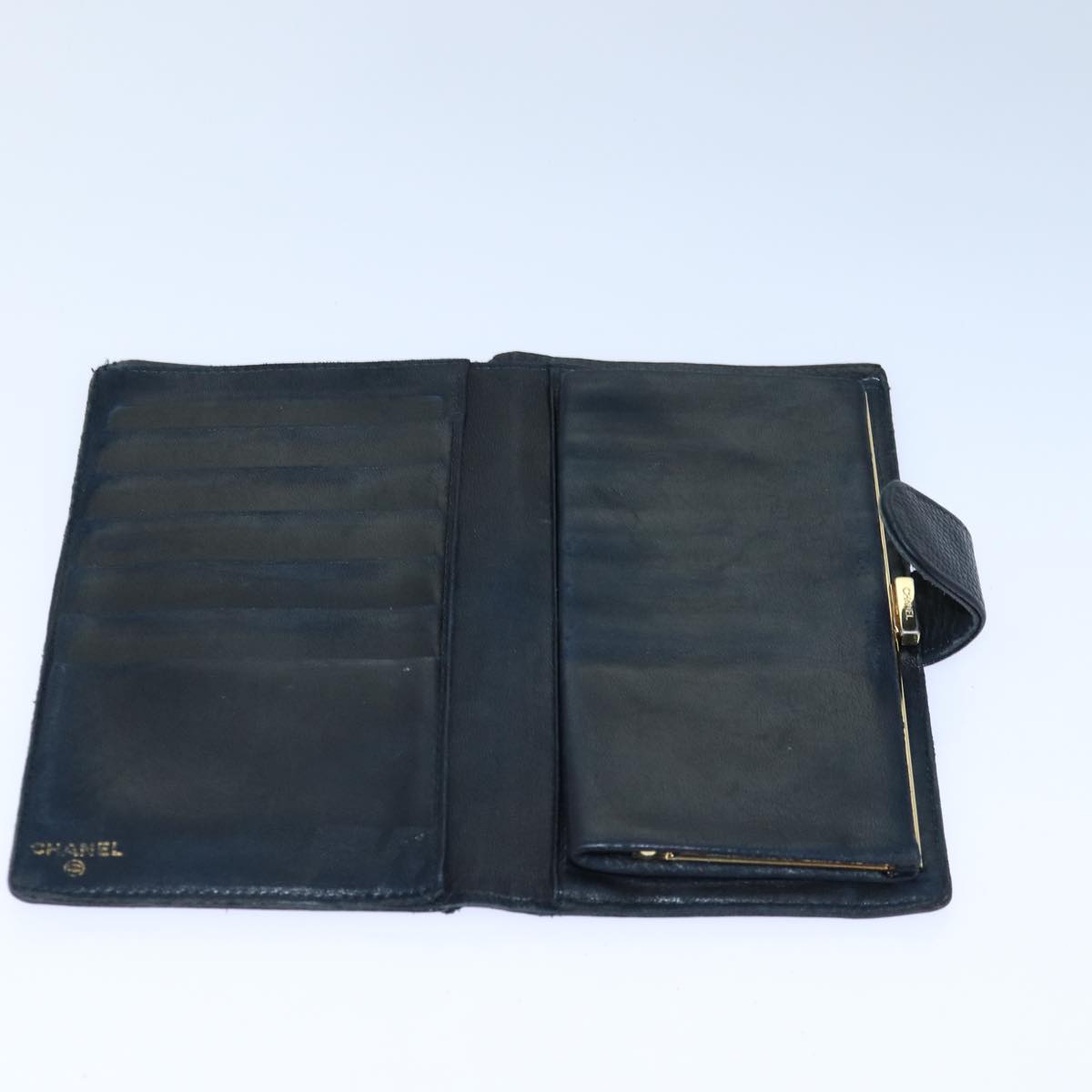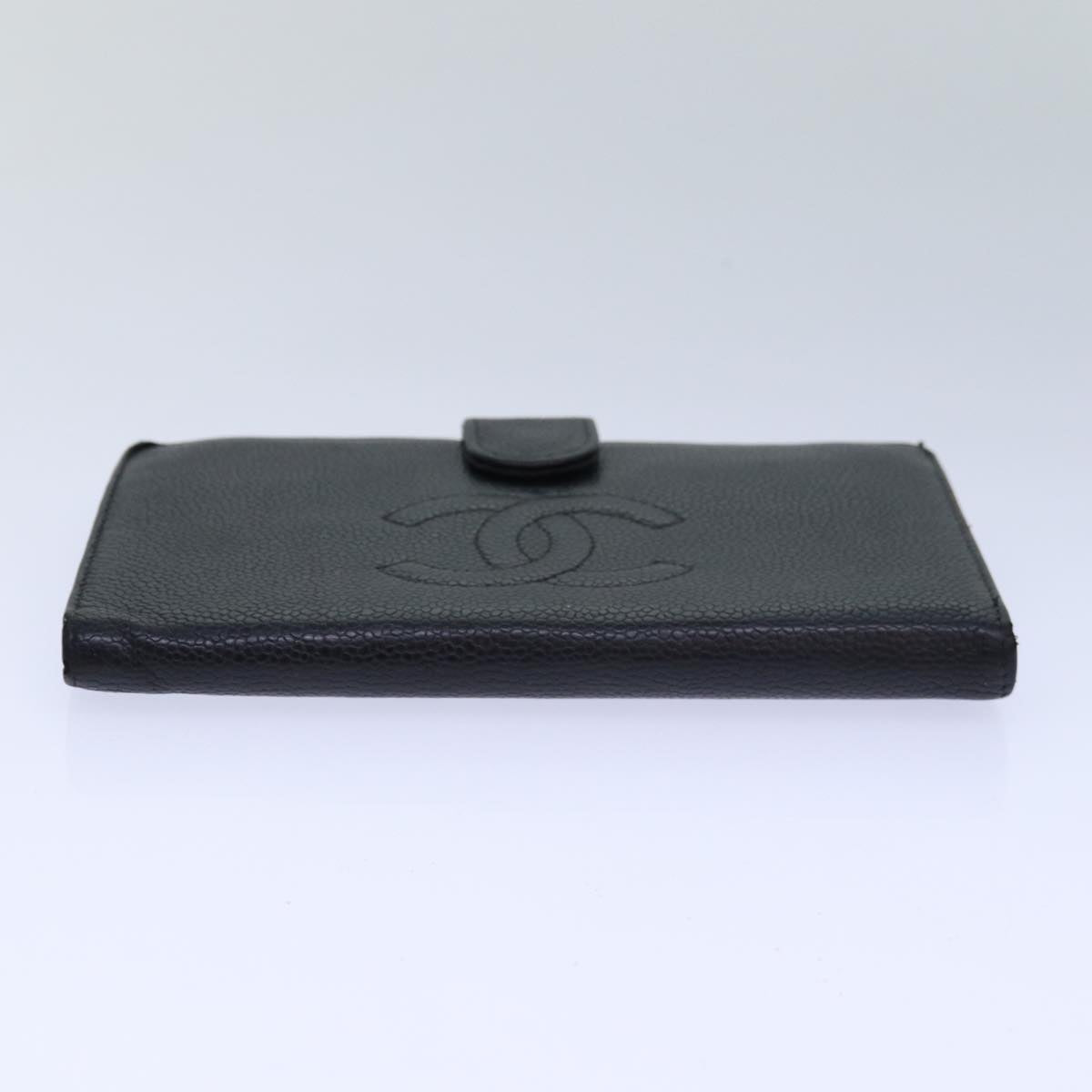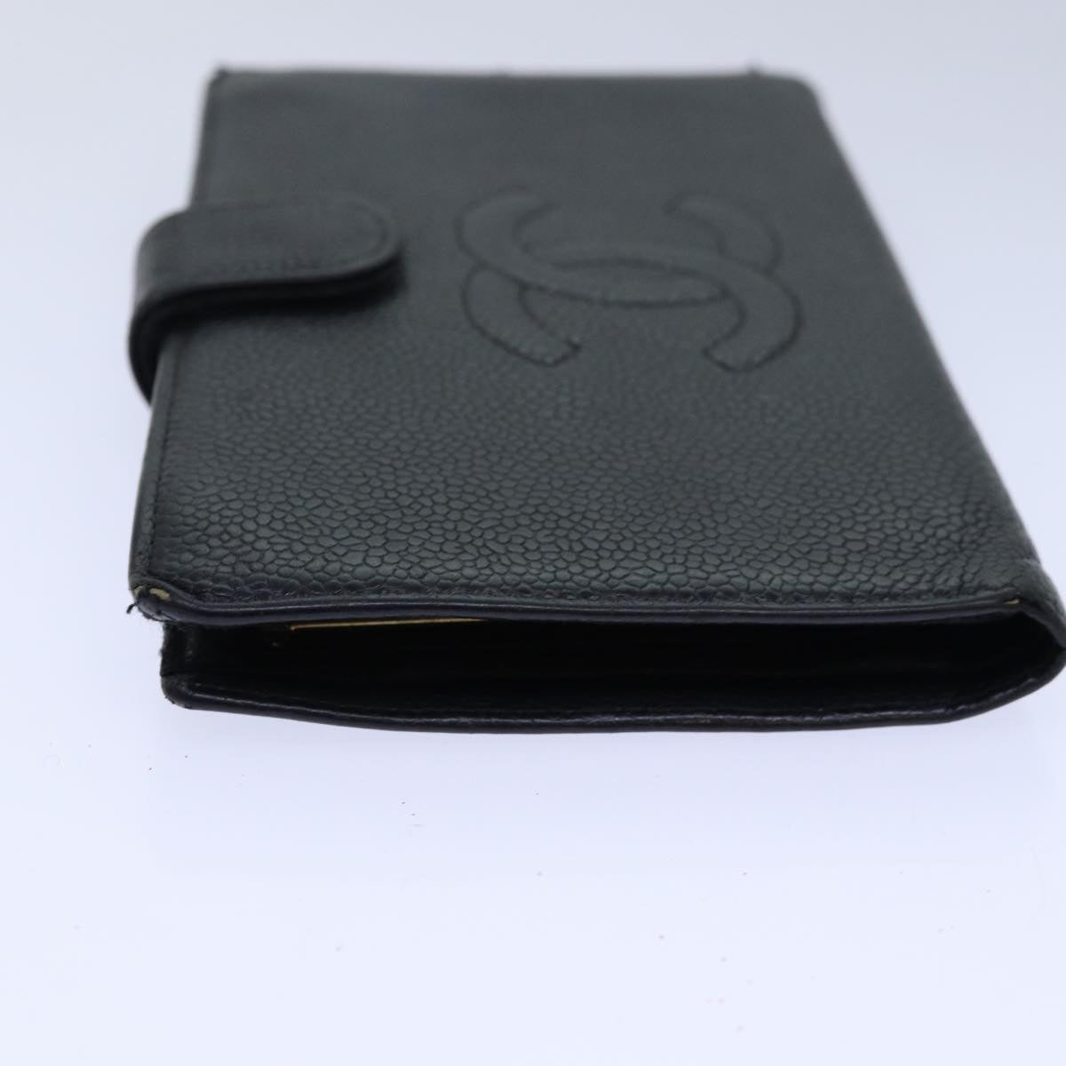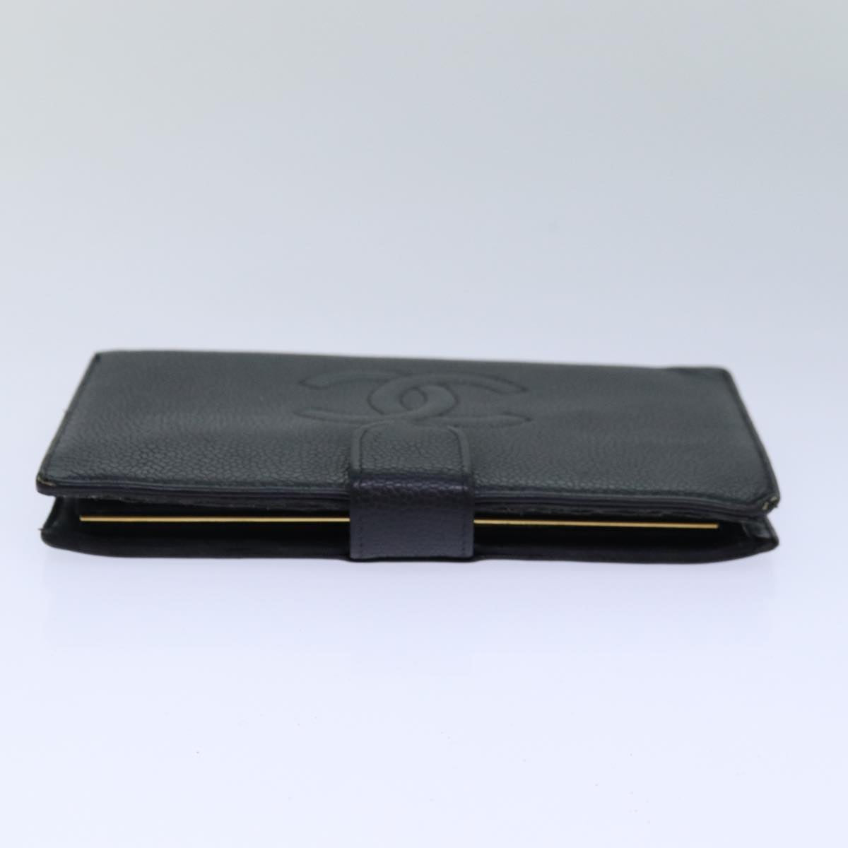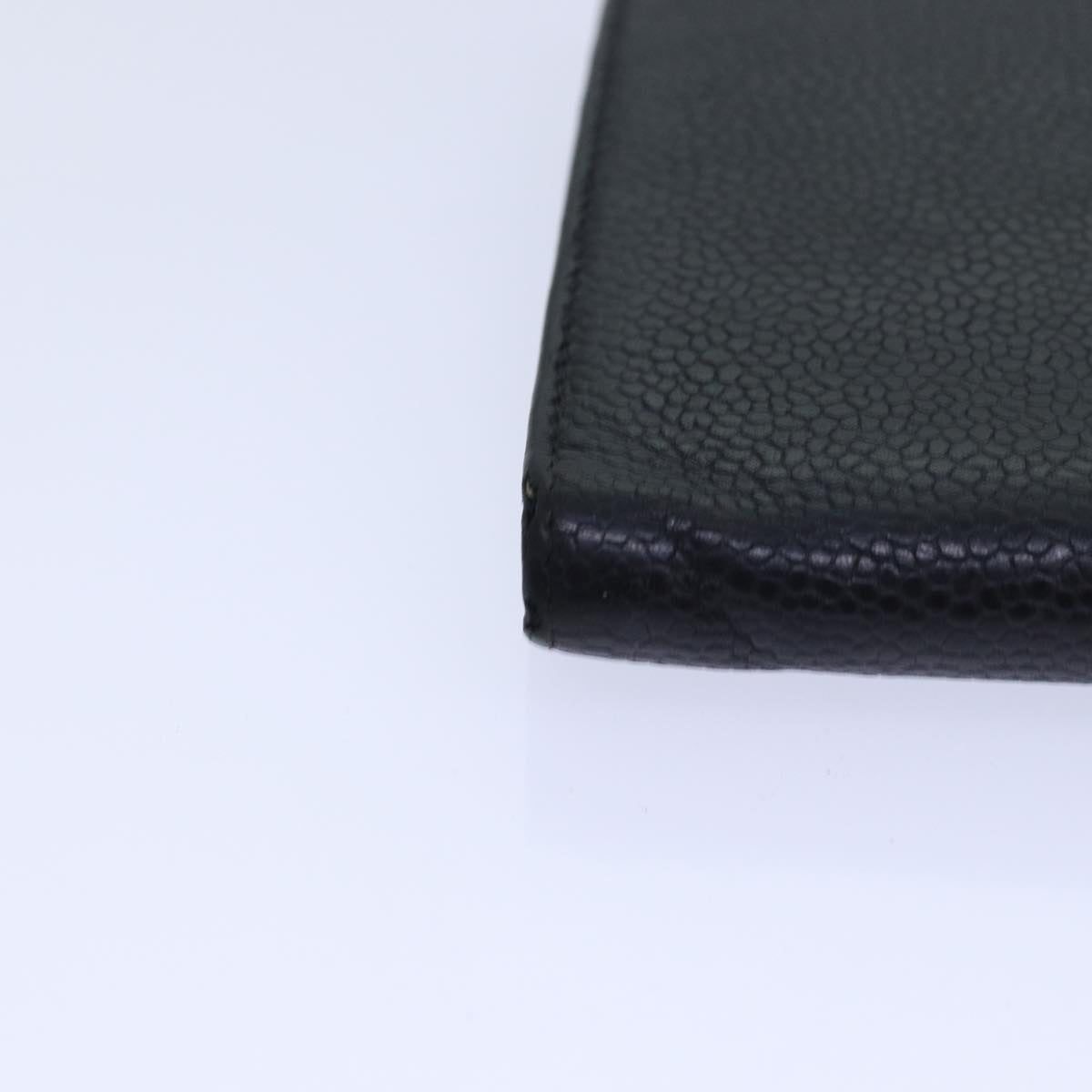 CHANEL COCO Mark Wallet Caviar Skin Black Gold CC Auth bs16761