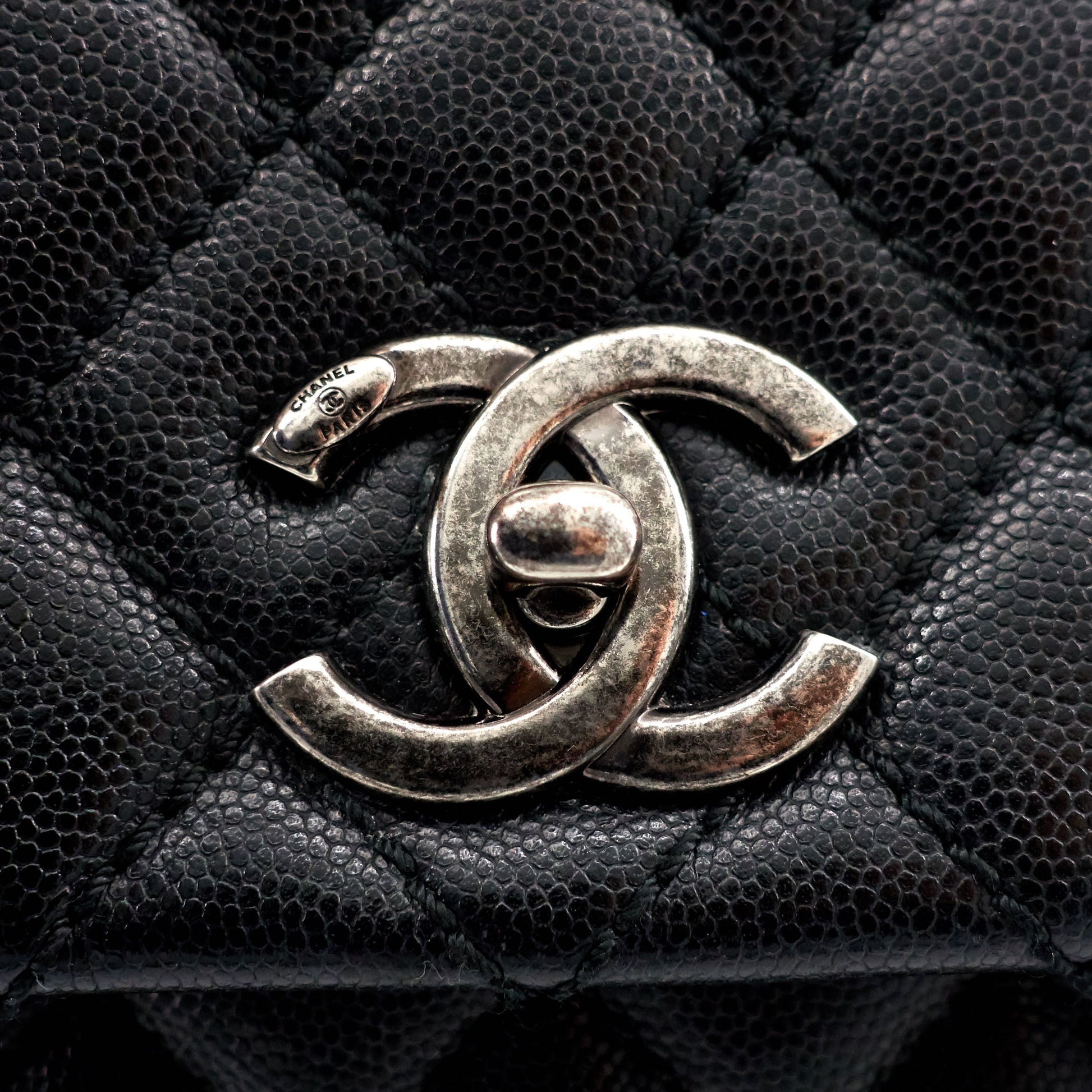 CHANEL Coco Top Handle Medium Caviar Leather Bag