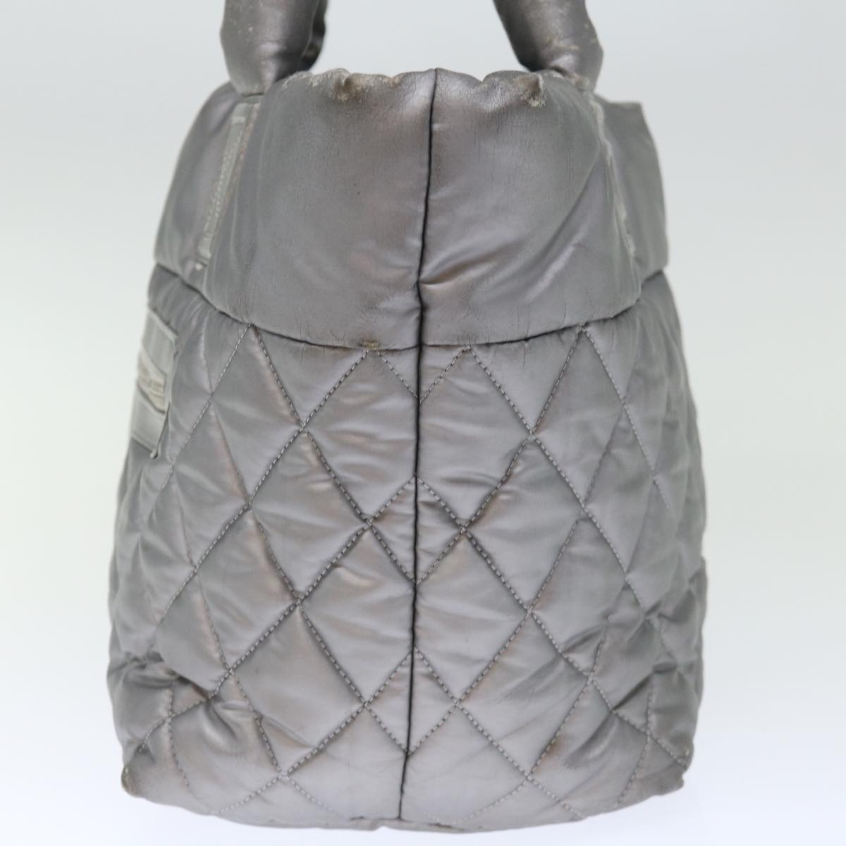 CHANEL Cococoon Hand Bag Nylon Silver CC Auth 71571